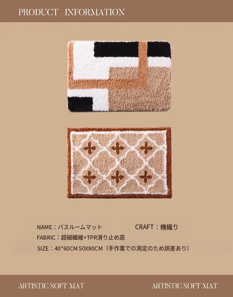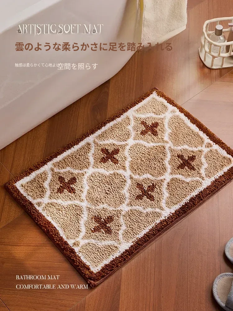 吸水性抜群!滑り止め付きバスルームマット - 2026年新作!高級感溢れるトイレ用ドアマットで、清潔で安全な空間を演出。家庭用にもぴったり!