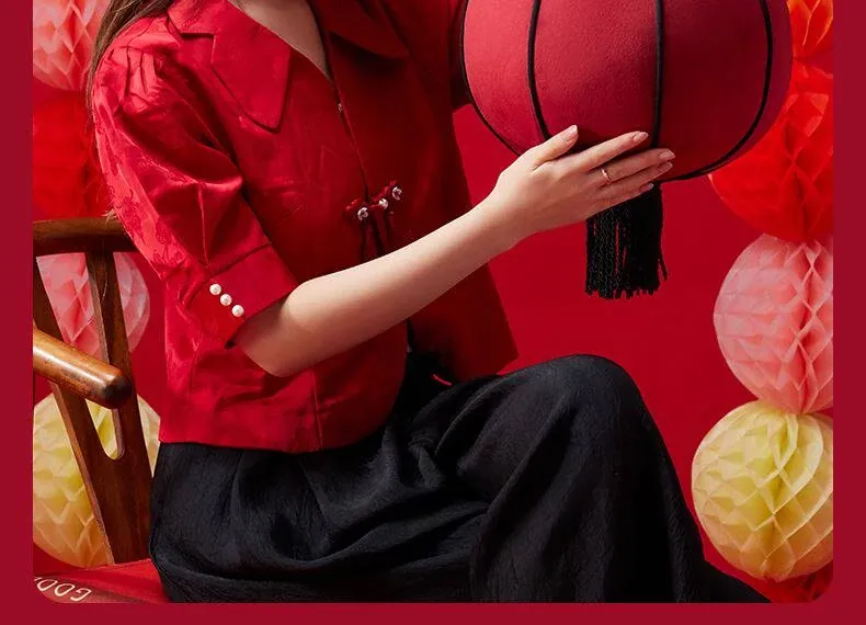 2026年新作!高級感溢れる新年元宵用赤色国潮ランタン - 結婚式や祝い事にぴったりなインテリア、リビングやソファに華やかさをプラス!