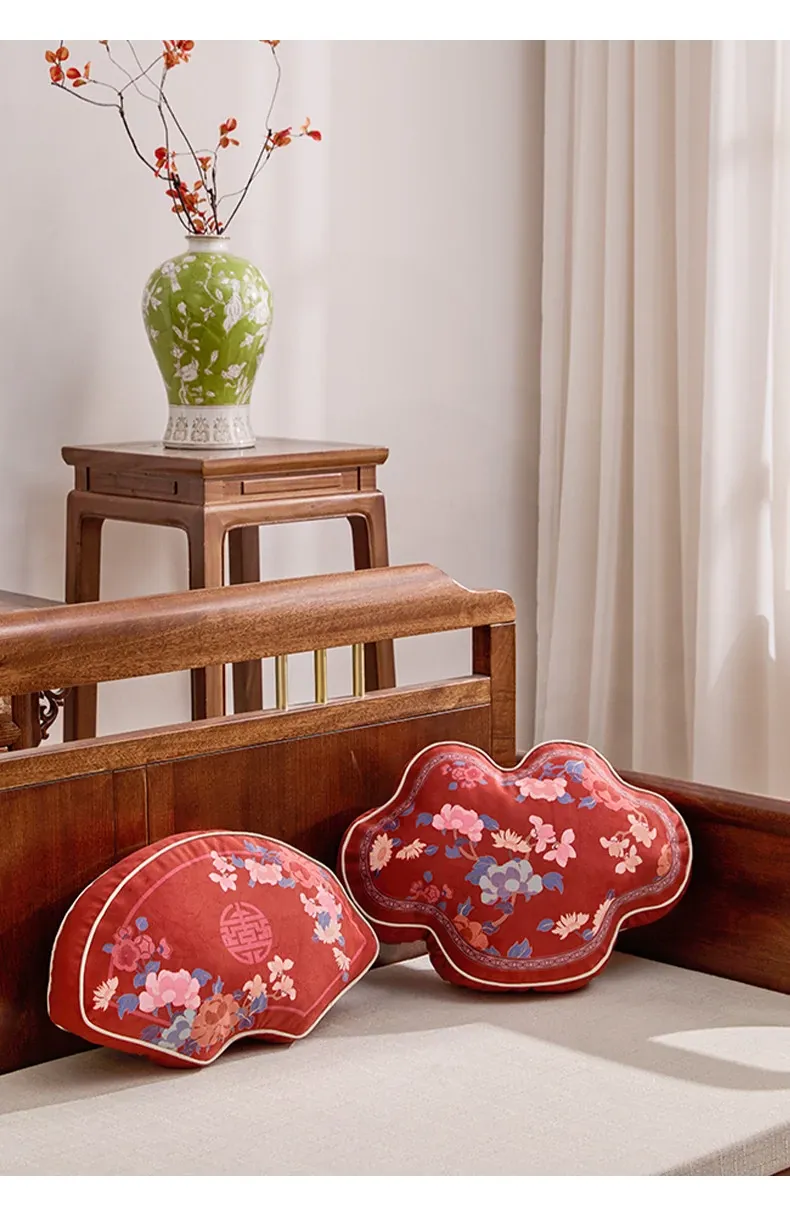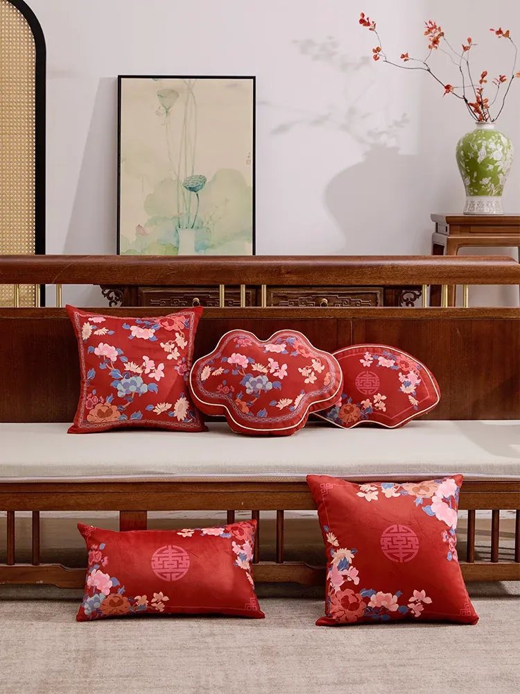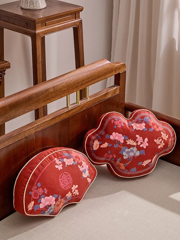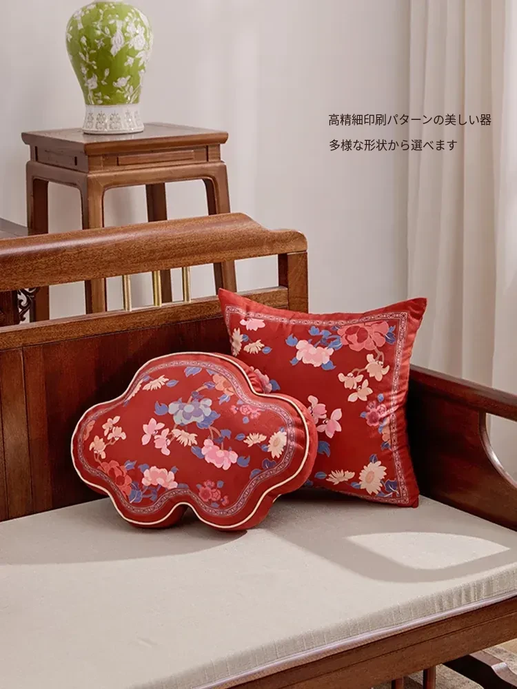 2026年新作!ユニークな形のリビングソファクッション。新中式デザインの赤いクッション、ラグジュアリー感漂うおしゃれな腰枕で、喜びを引き立てる華やかなインテリアに最適です!