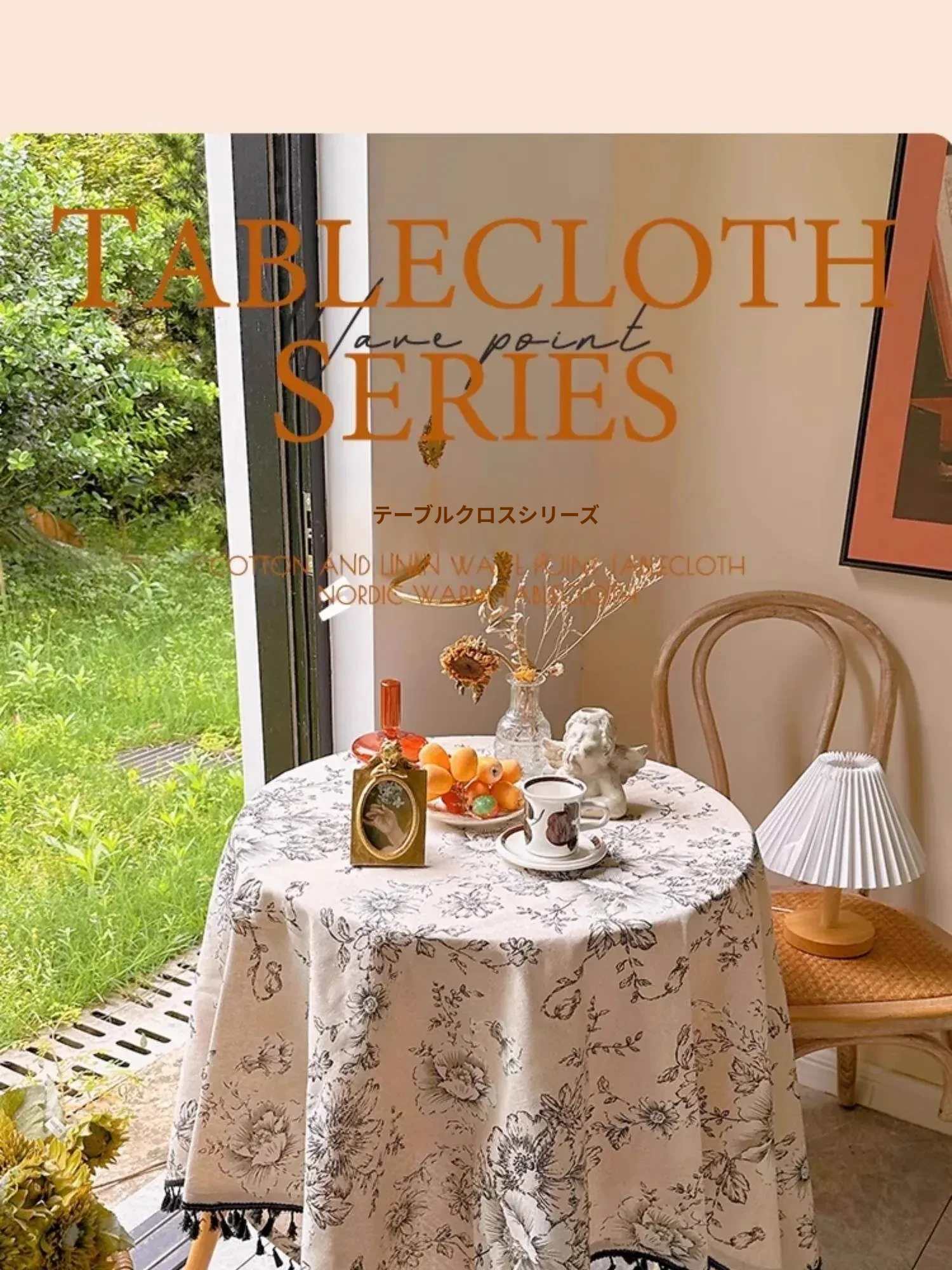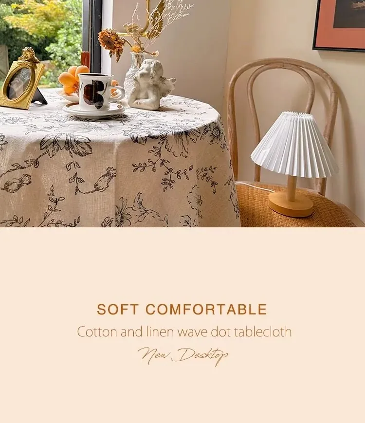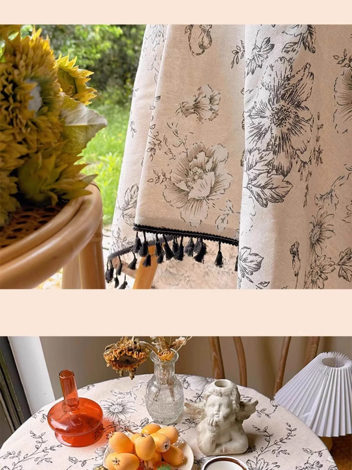アメリカンカントリー風フラワープリントテーブルクロス|麻感素材で高級感漂うフレンチスタイル|長方形・丸型対応|おしゃれなティーテーブルにぴったりなフリンジ付き!