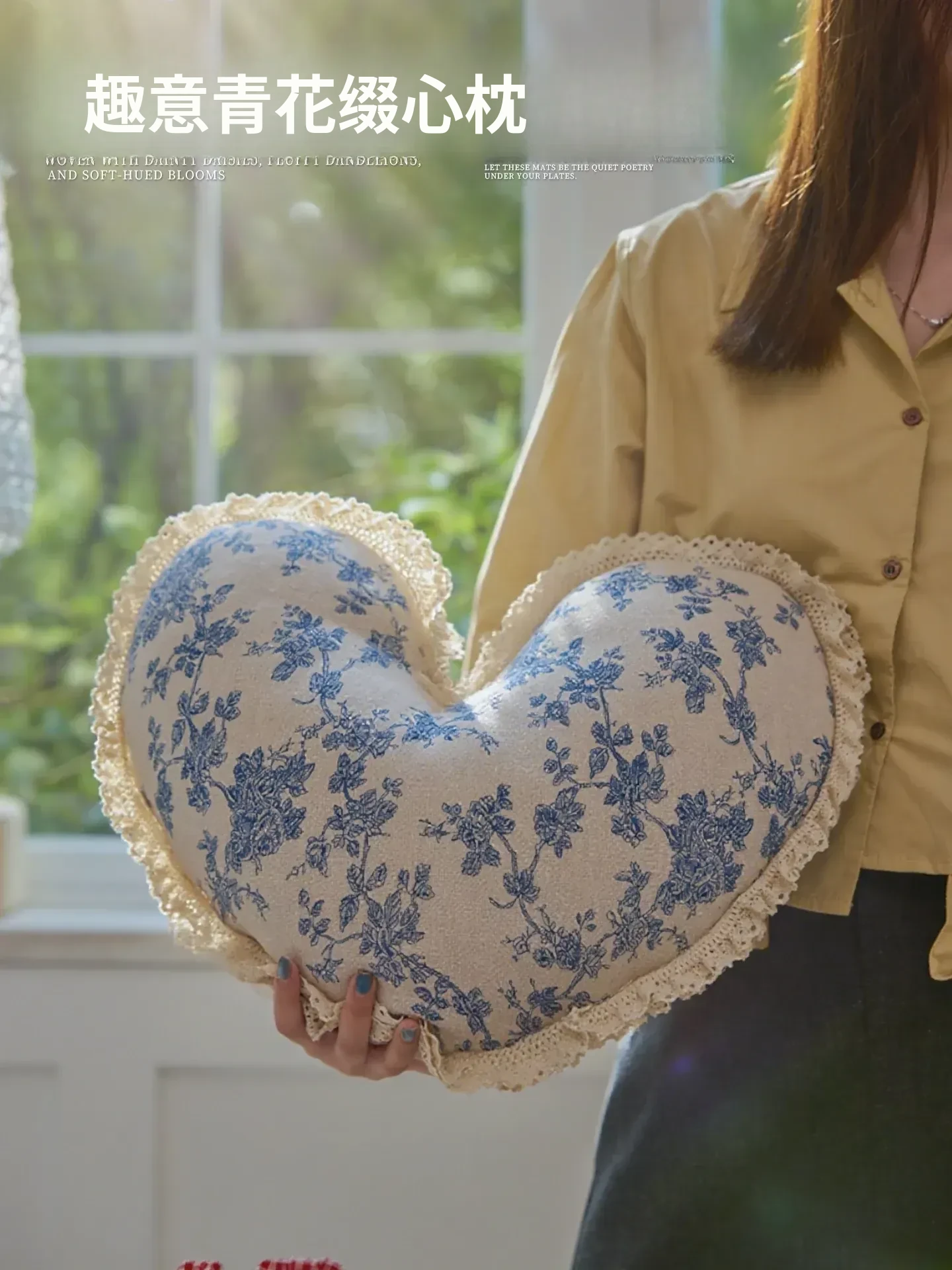 青花缀心クッションカバー【40*35cm】