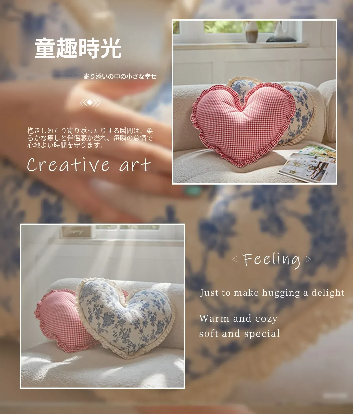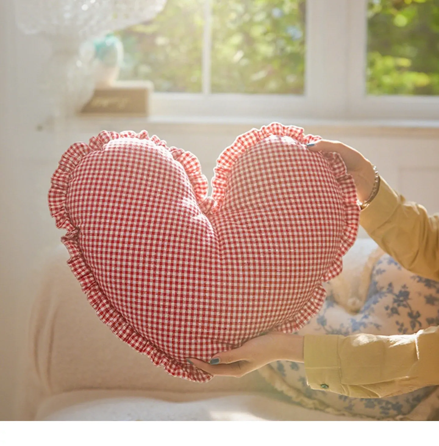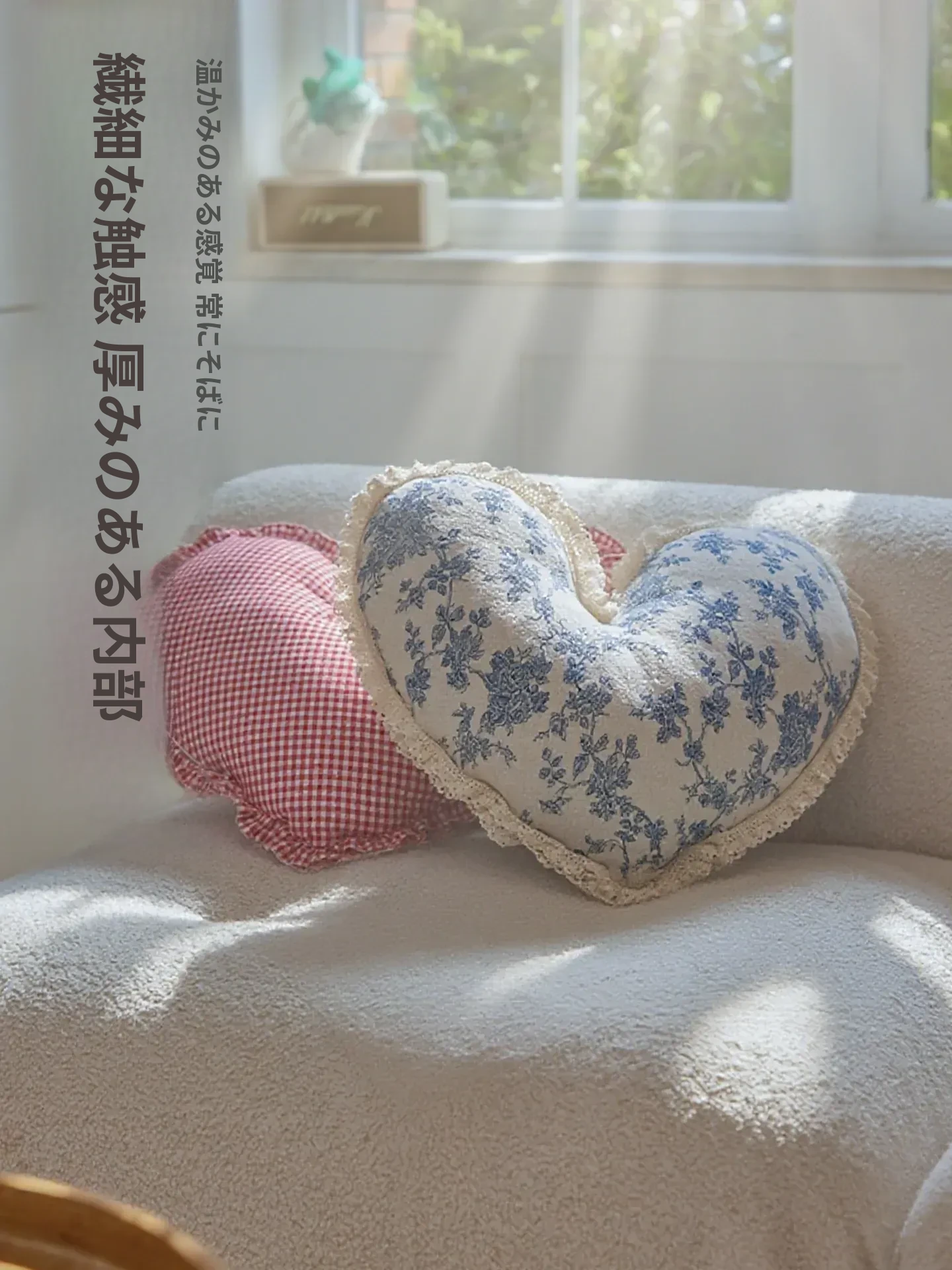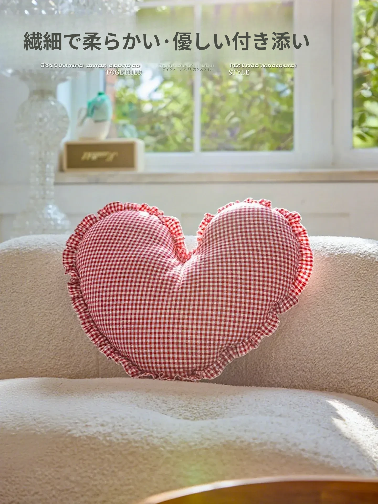 アメリカンスタイルのハート型クッション|リッチな高級感でリビングや寝室にぴったり|ソファやベッドのアクセントに最適なファブリッククッション|愛の形をあなたの空間に!