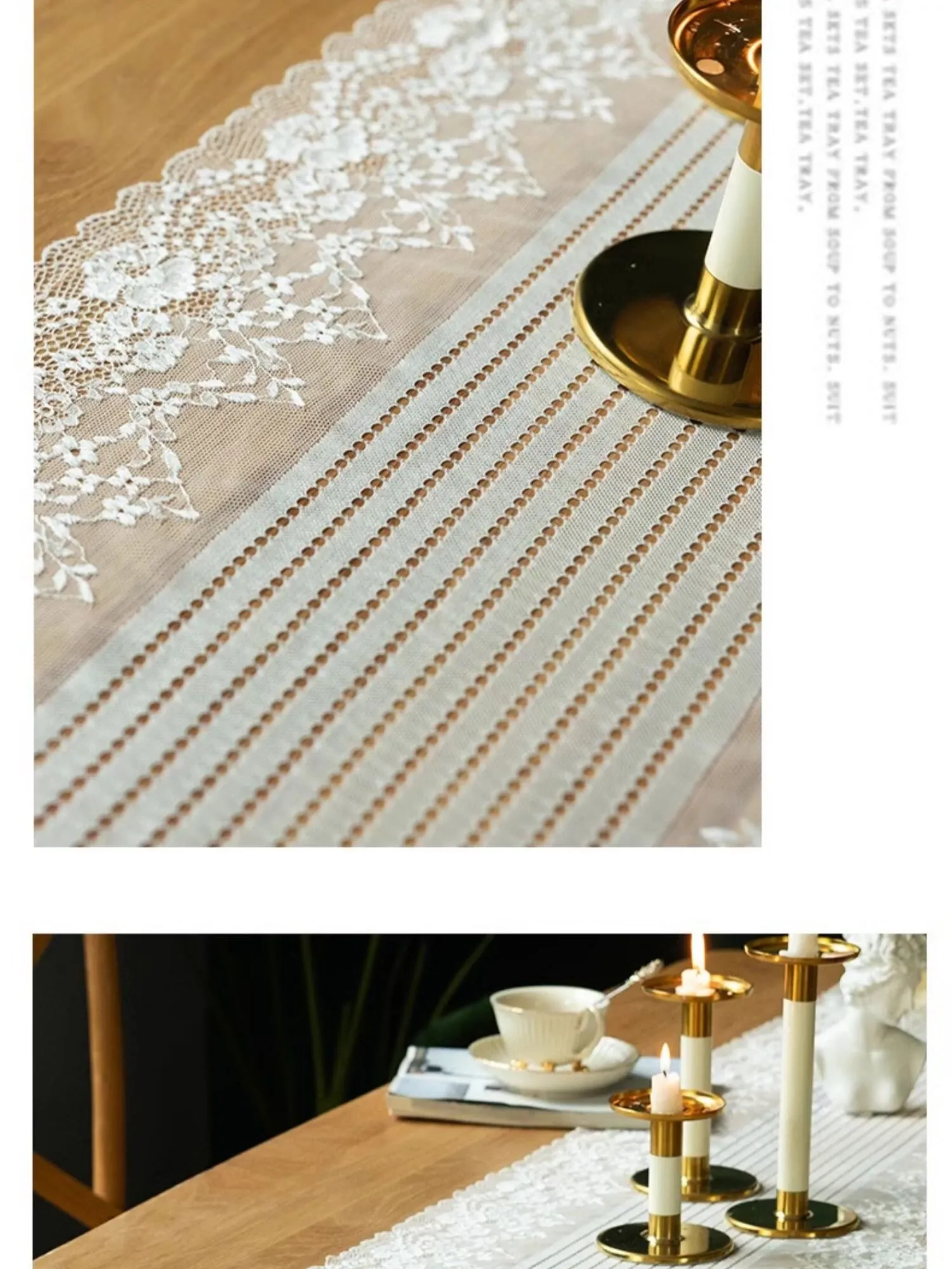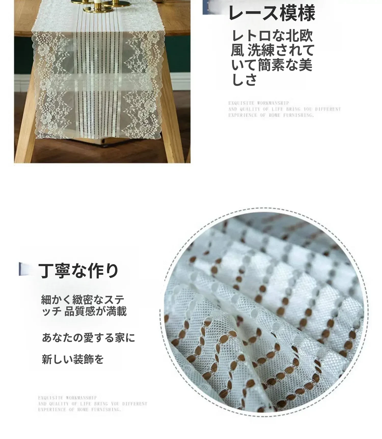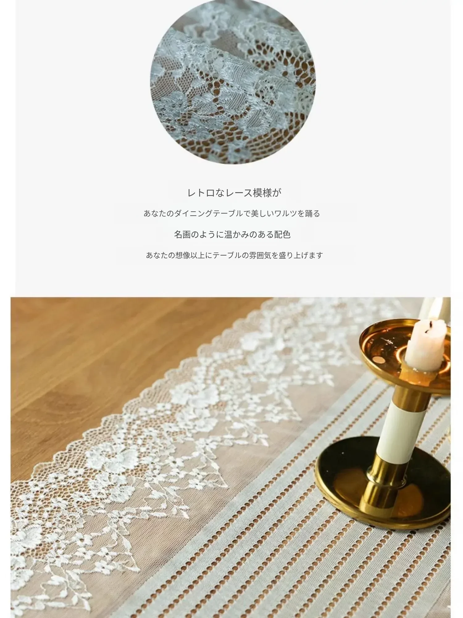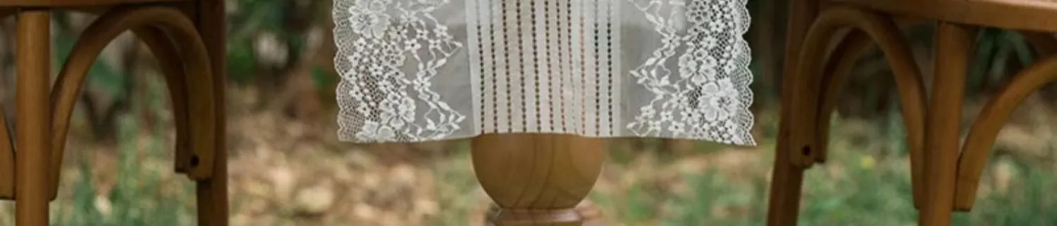 アメリカンホワイトレーステーブルランナー - 森の雰囲気を演出する長方形デコレーションカバー!アウトドアや庭での使用に最適、花壇の撮影小道具としても活躍します。おしゃれで魅力的な空間を作り出しましょう!