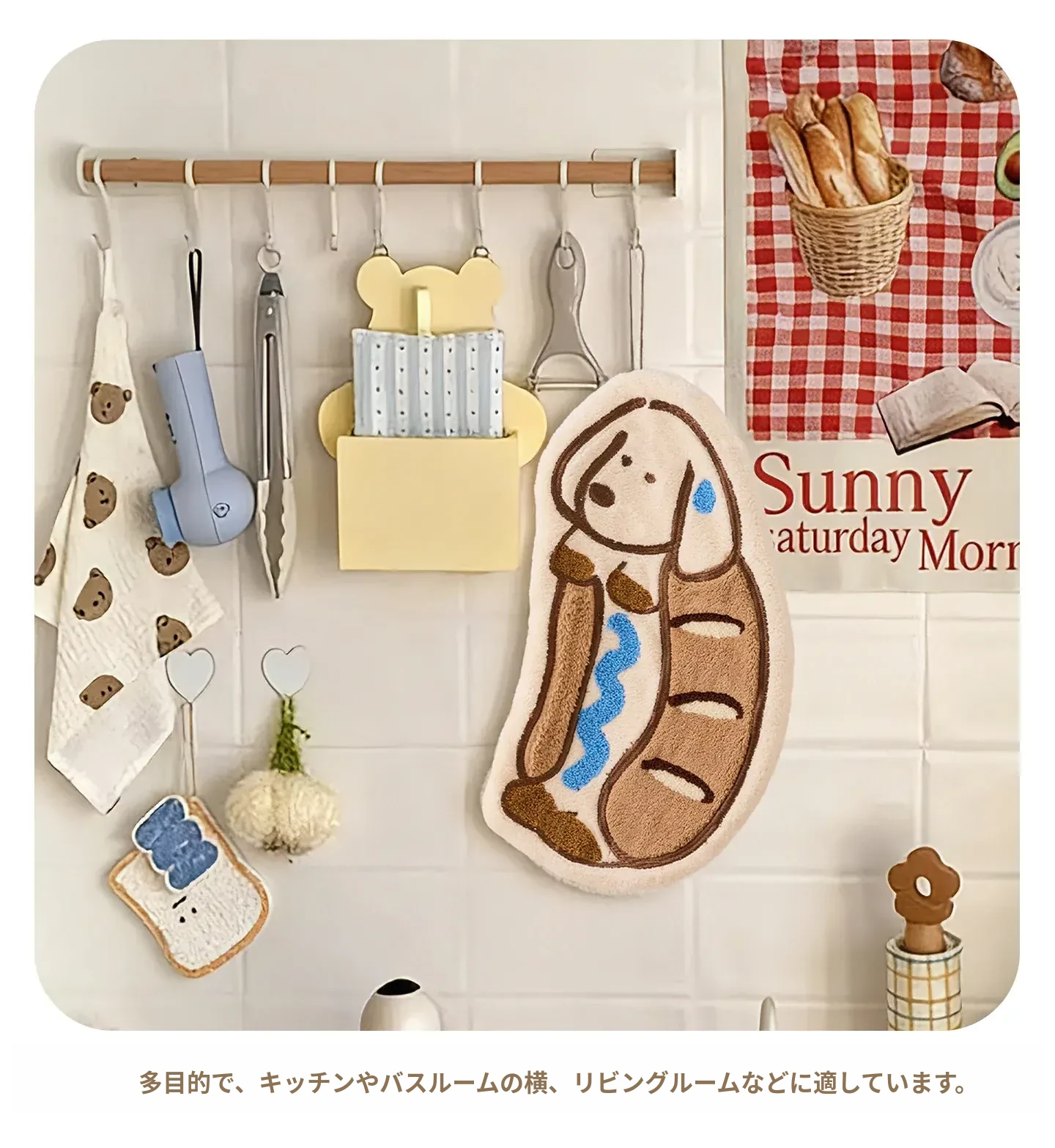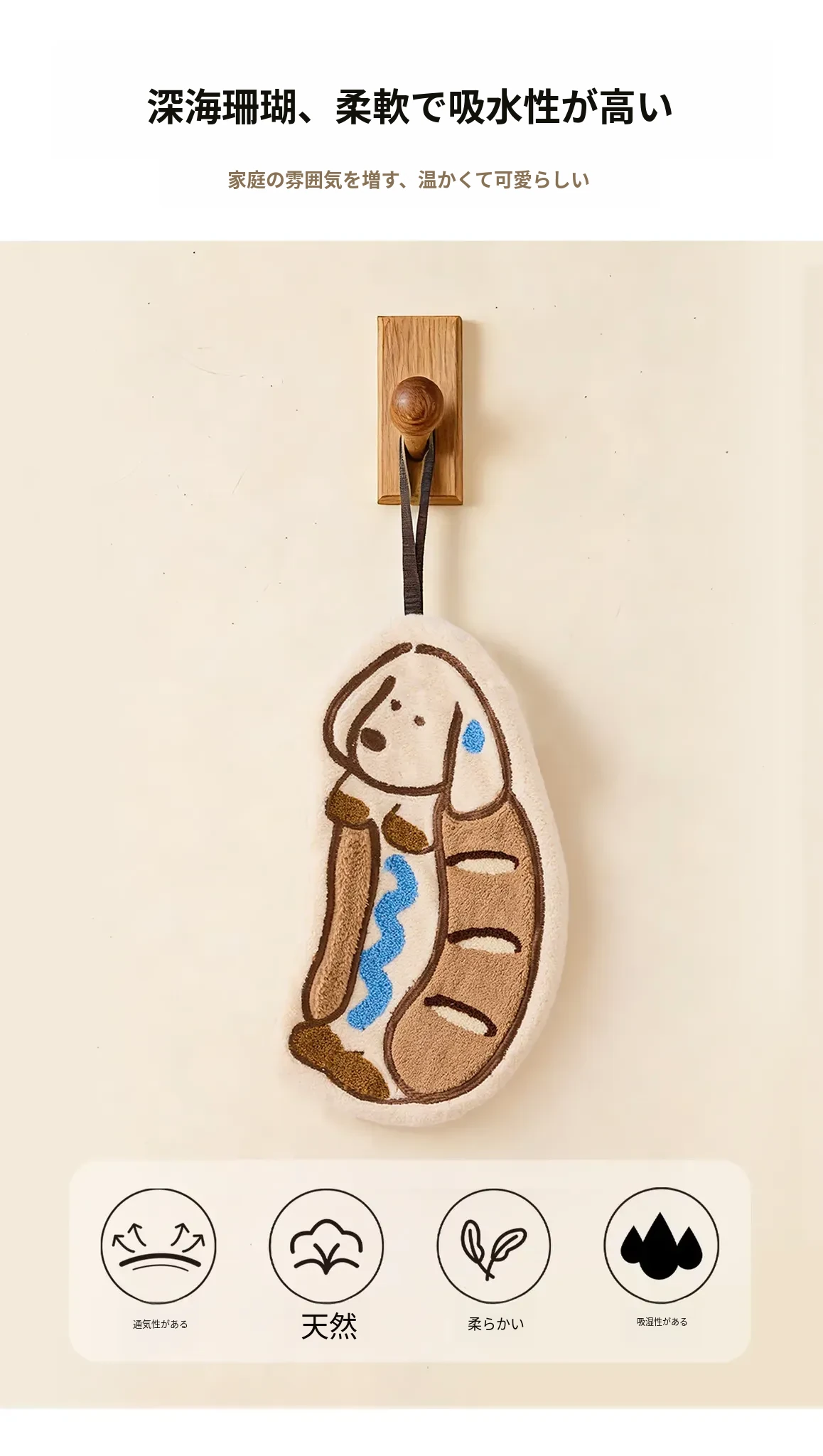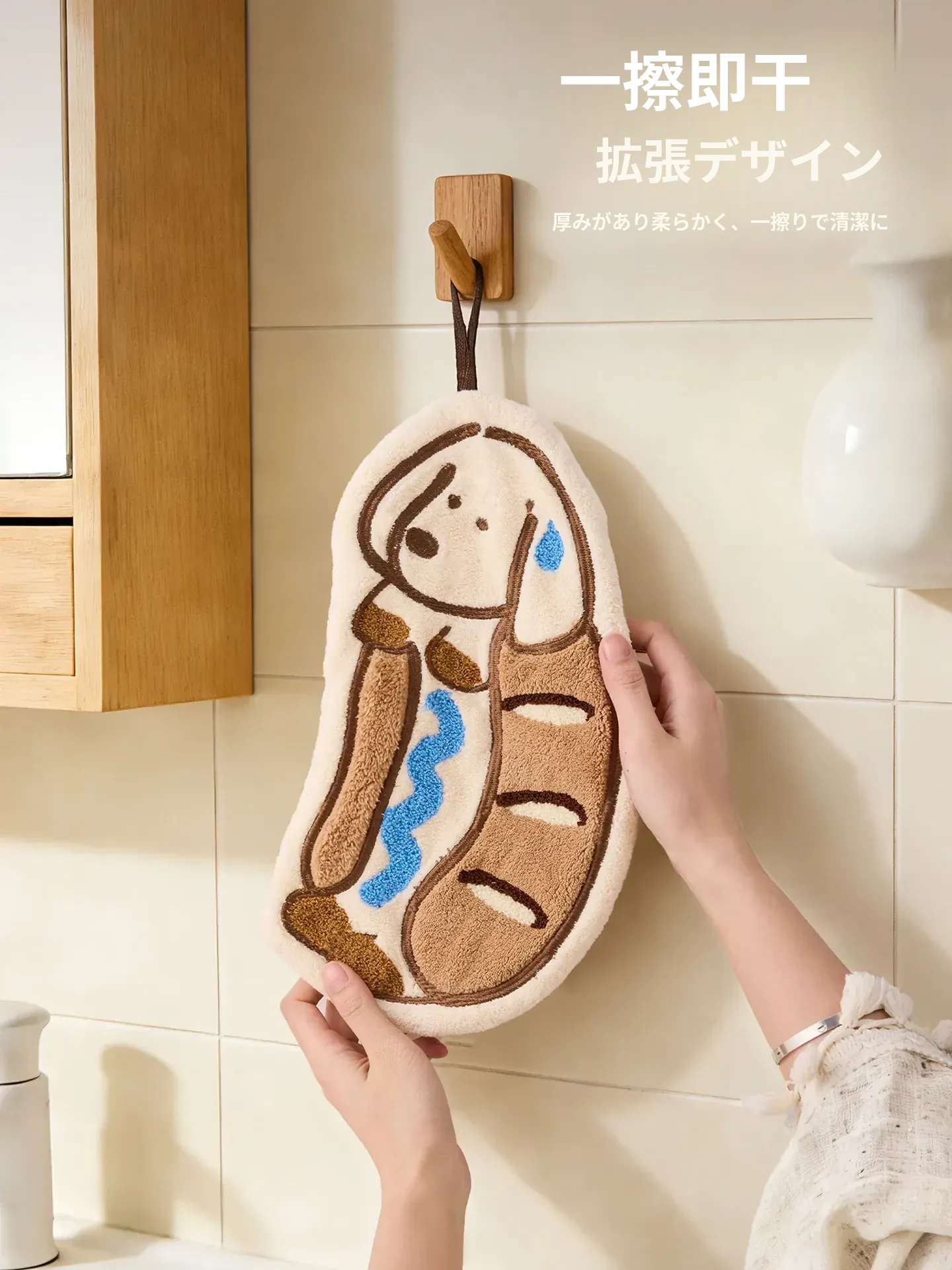 かわいいカートゥーンデザインの厚手超吸水キッチンタオル!ハンギングタイプで便利なトイレ用手拭き、刺繍入りの小さなハンカチ。おしゃれで実用的なアイテムで、毎日の生活をもっと楽しく!