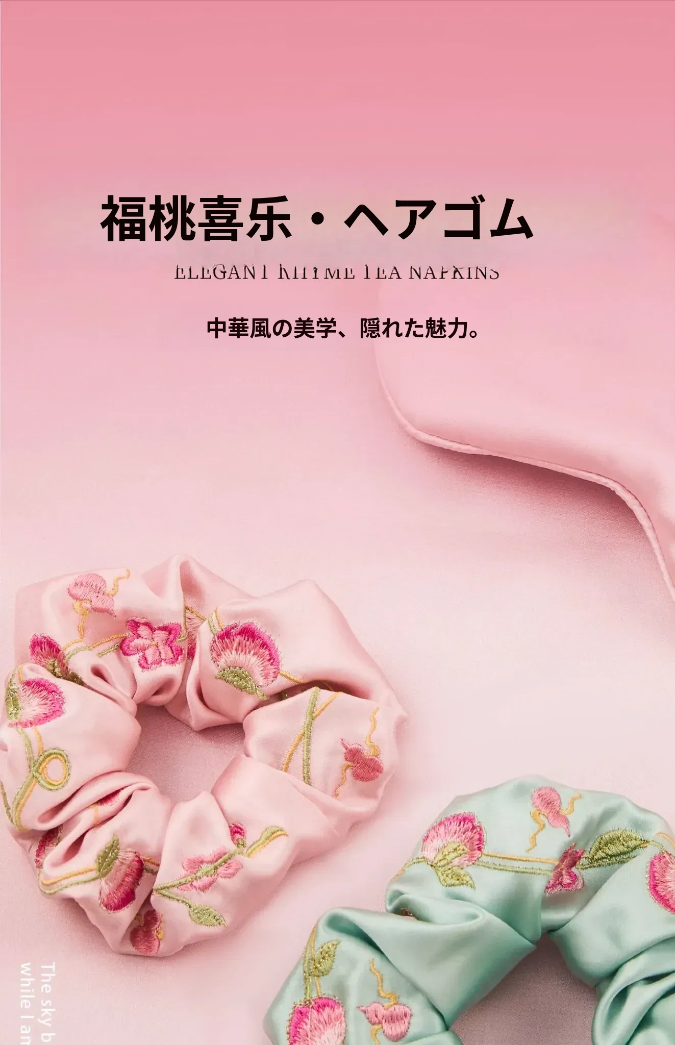 福桃喜楽-緋色サテンヘアアクセサリー