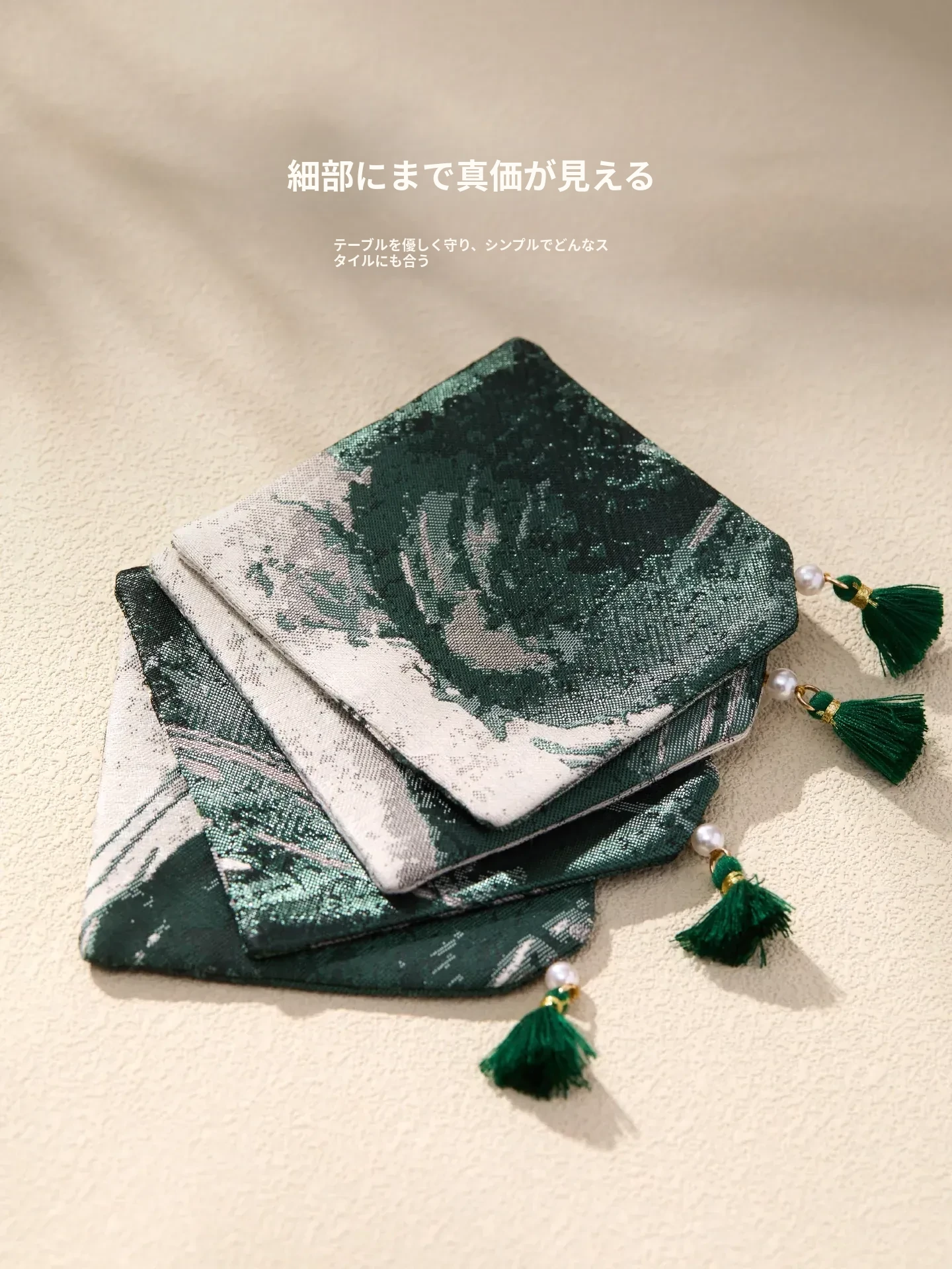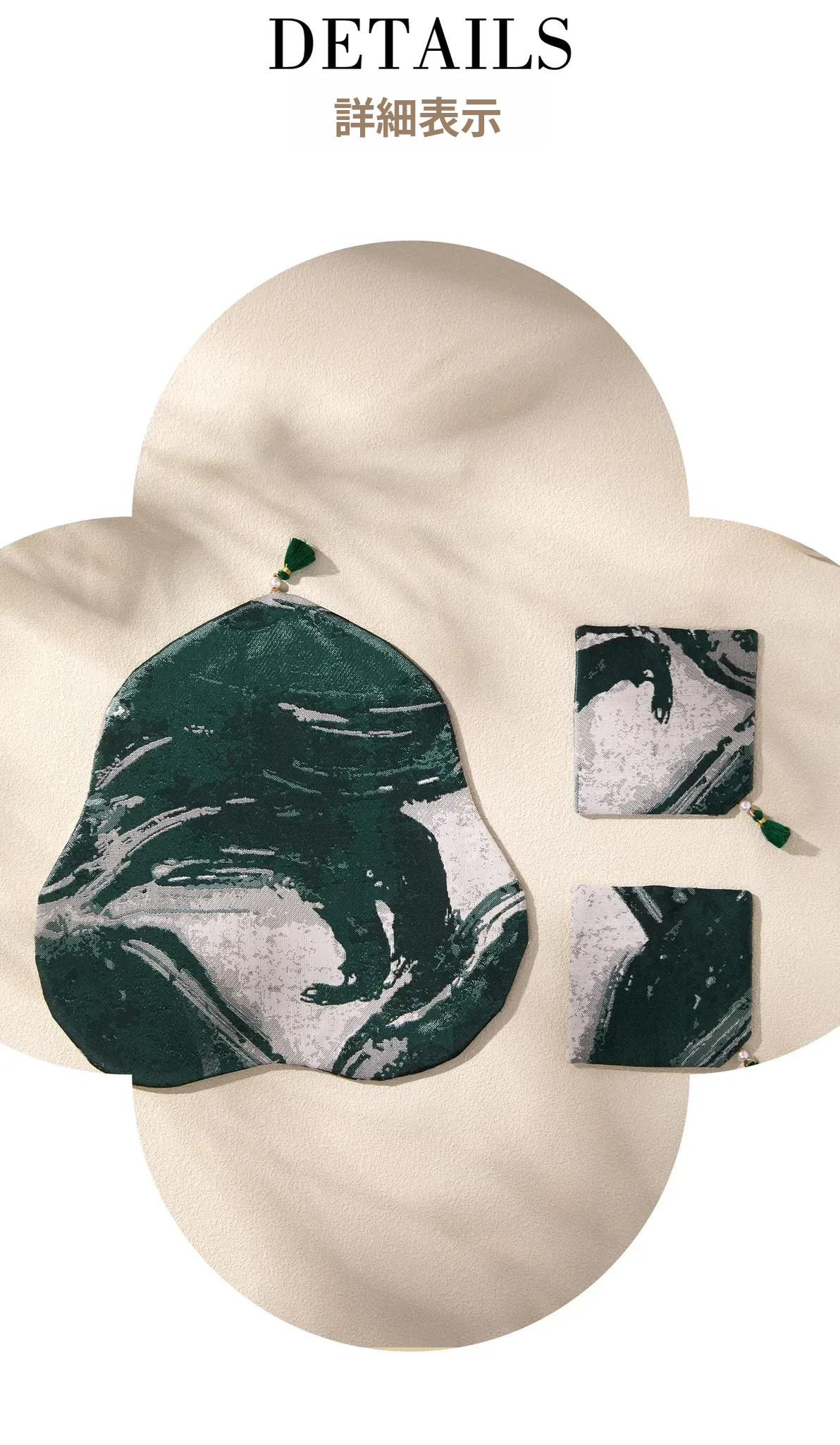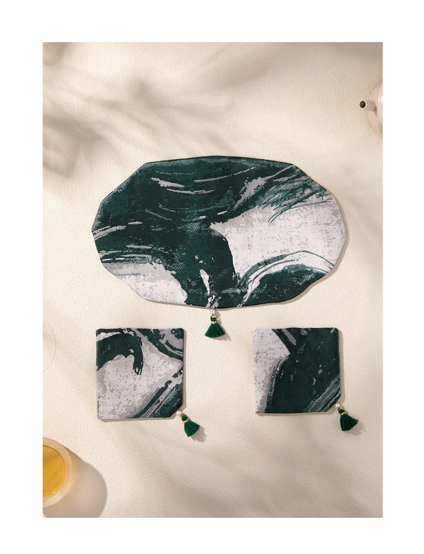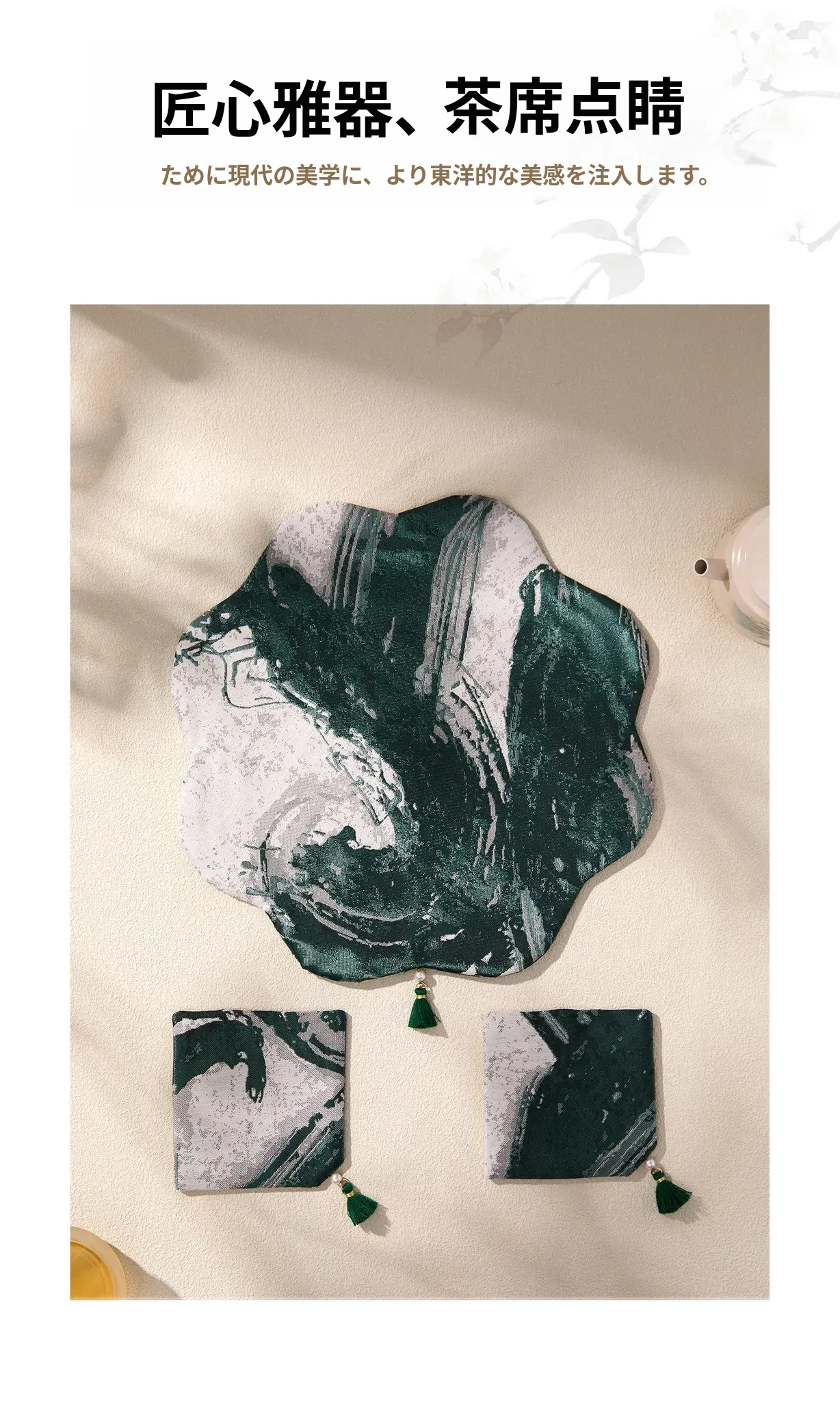 緑砚墨揚花型茶席セット【25*25cm+9*9cm2個】
