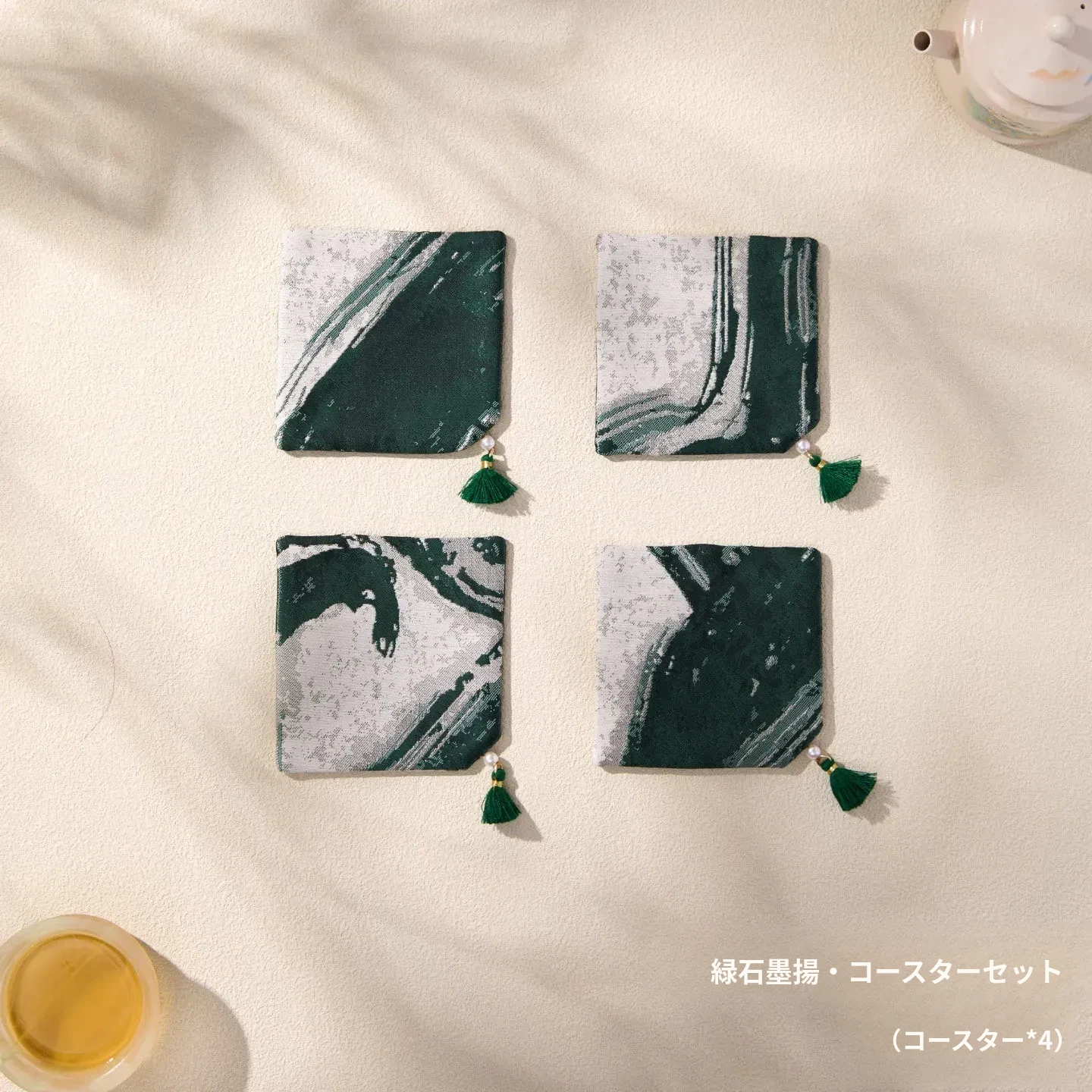緑砚墨揚コースターセット【9*9cm4個】