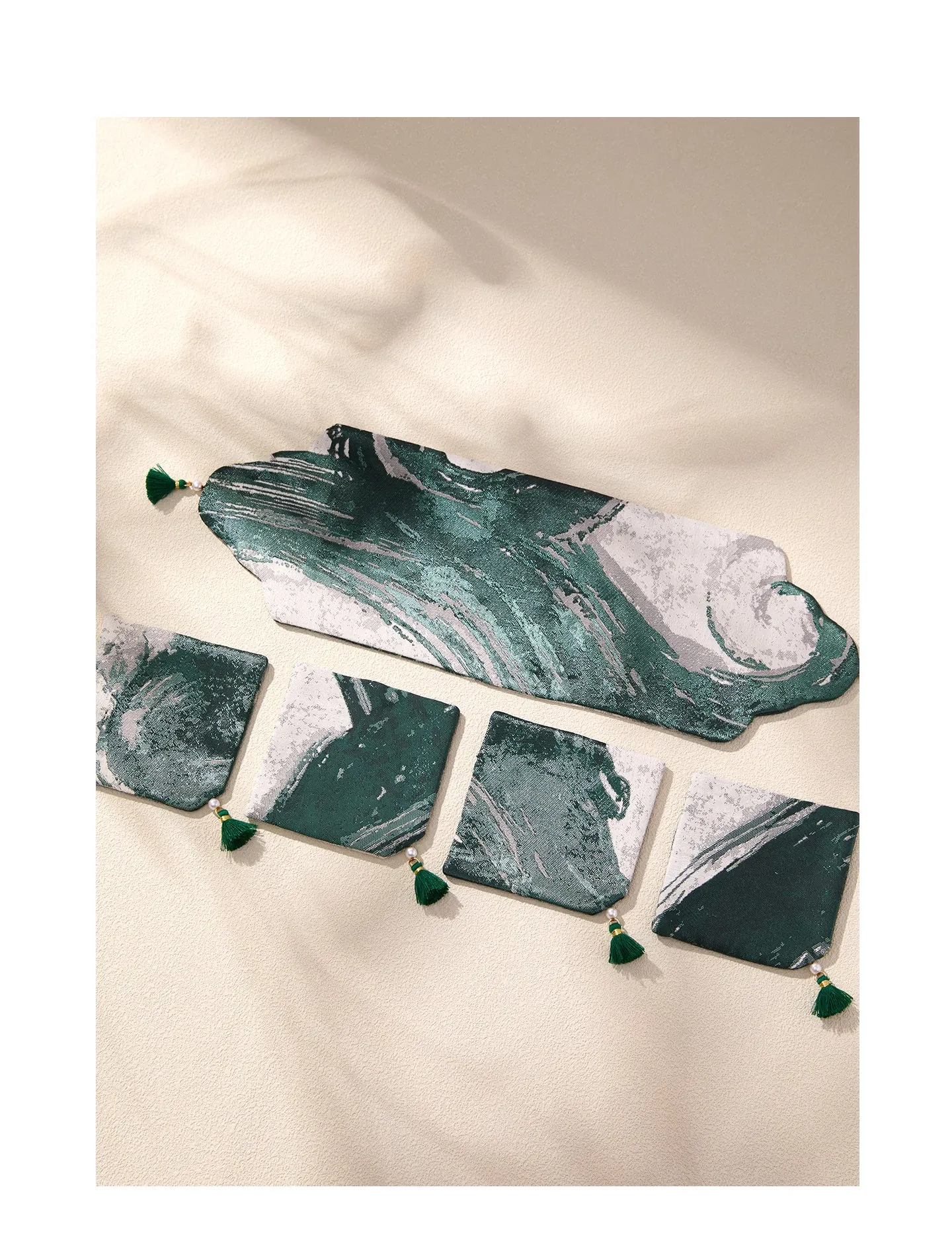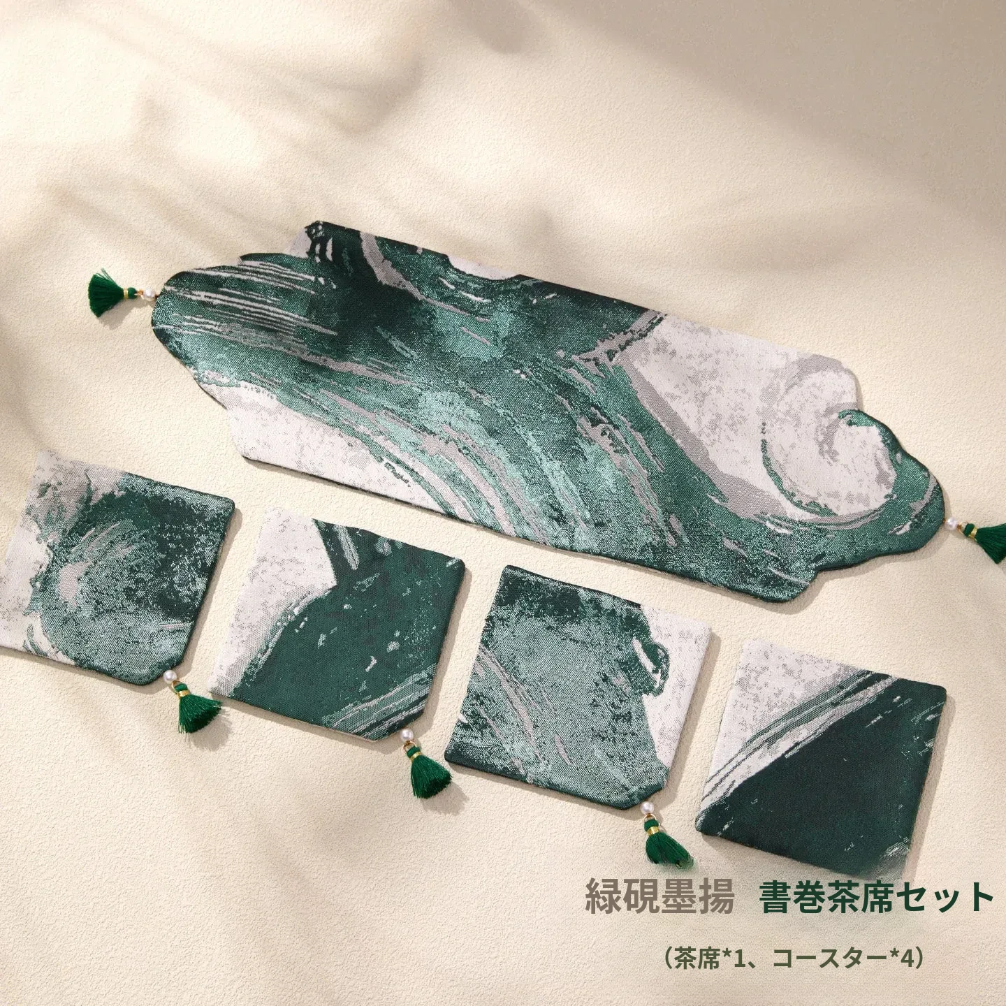 緑砚墨揚書巻茶席セット【35*11.5cm+9*9cm4個】