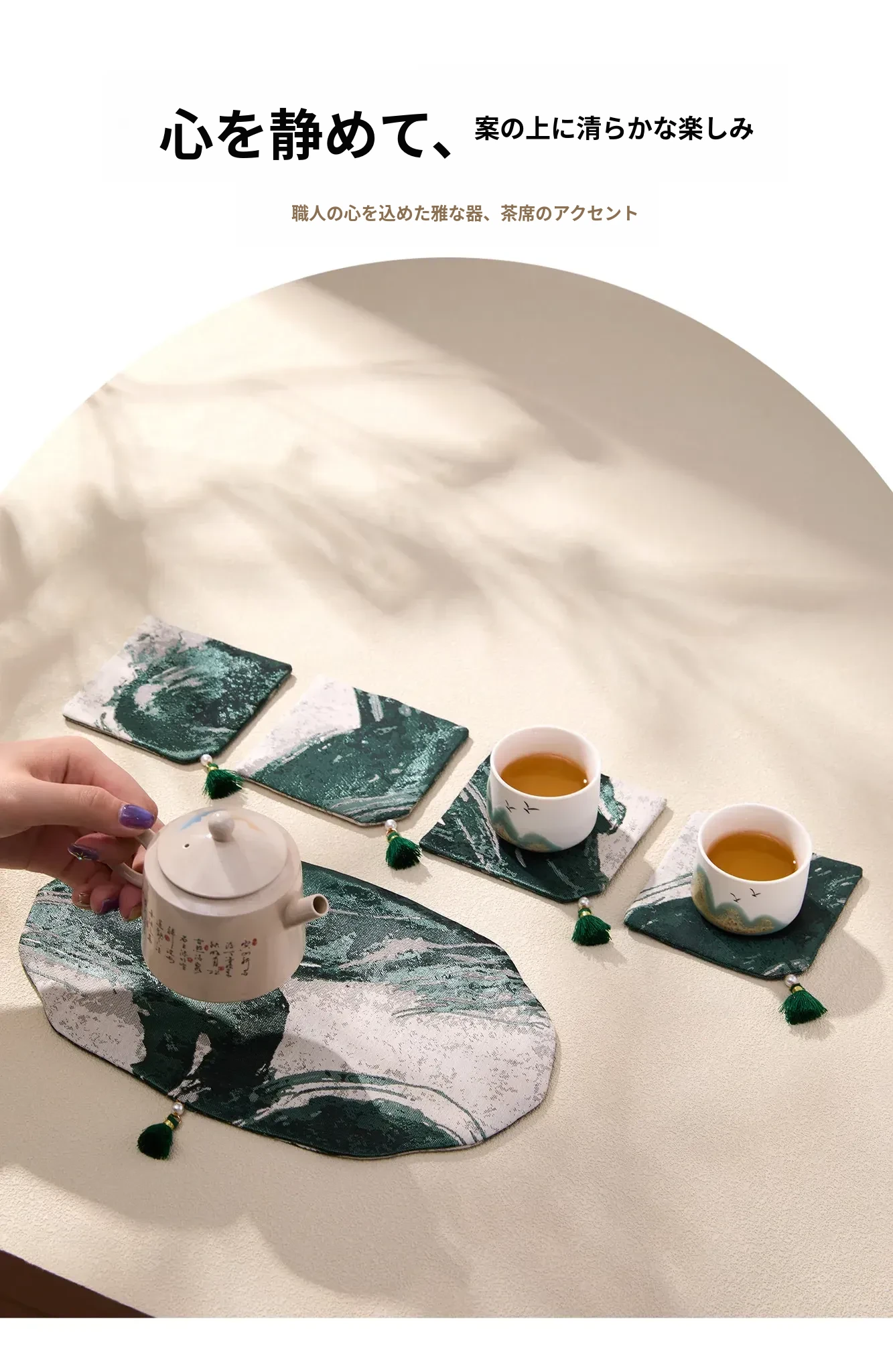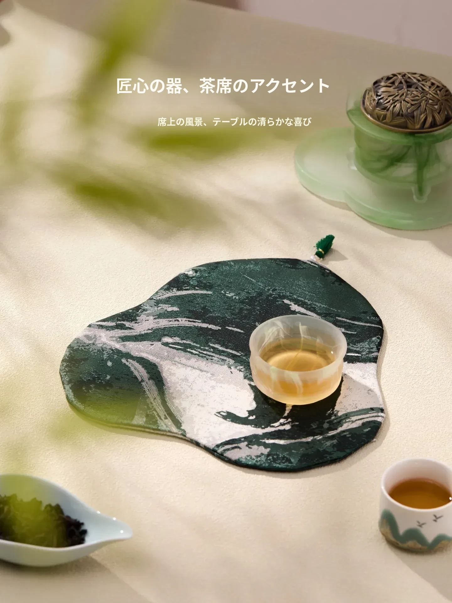 緑砚墨揚蓮瓣茶席セット1【26*16cm+9*9cm2個】