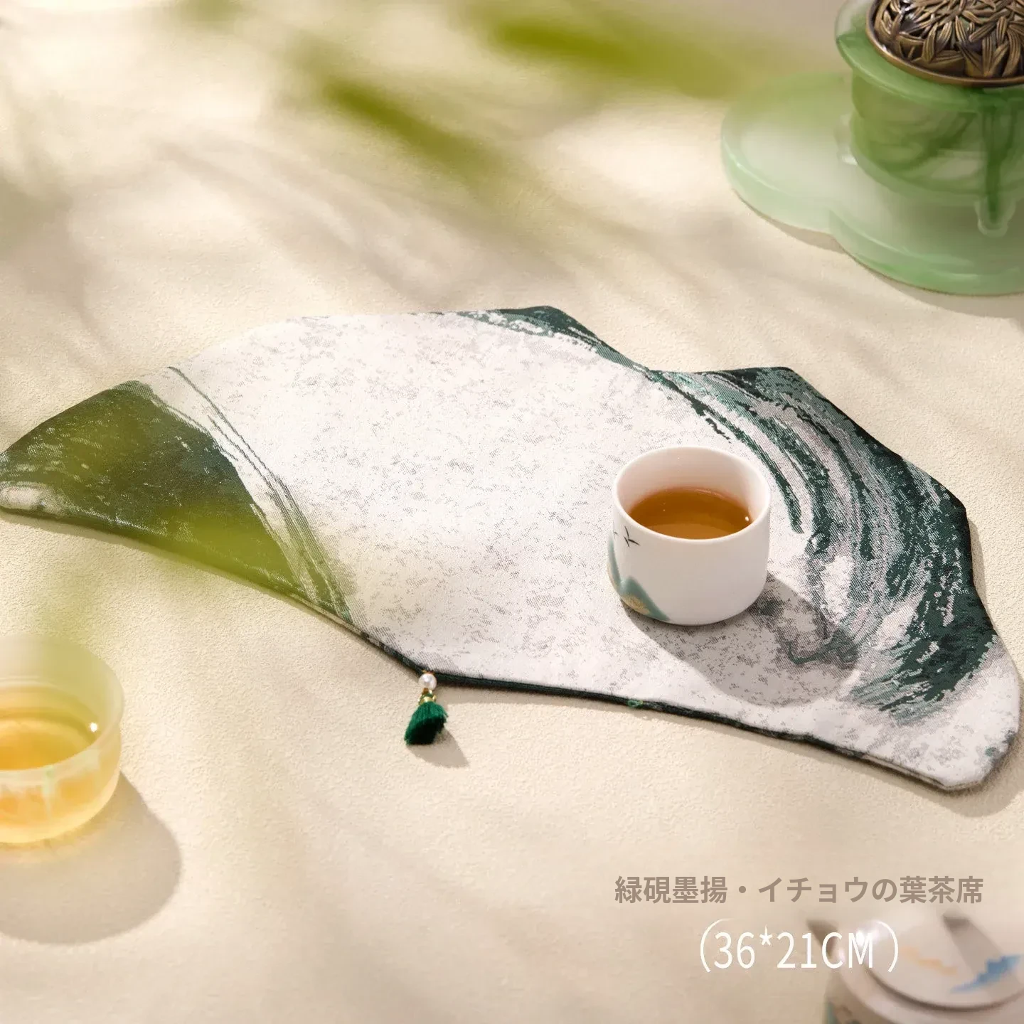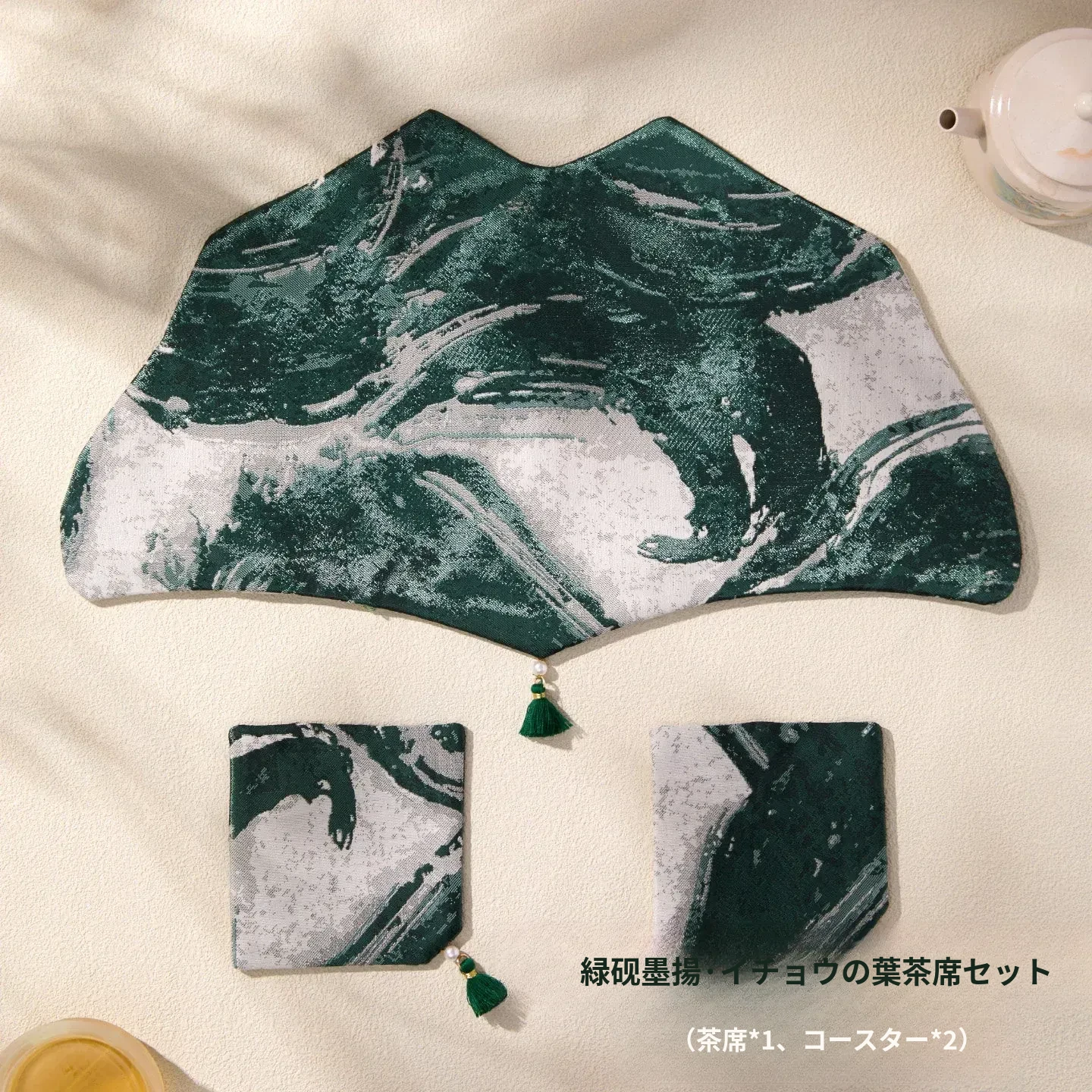 緑砚墨揚銀杏葉茶席セット【36*21cm+9*9cm2個】