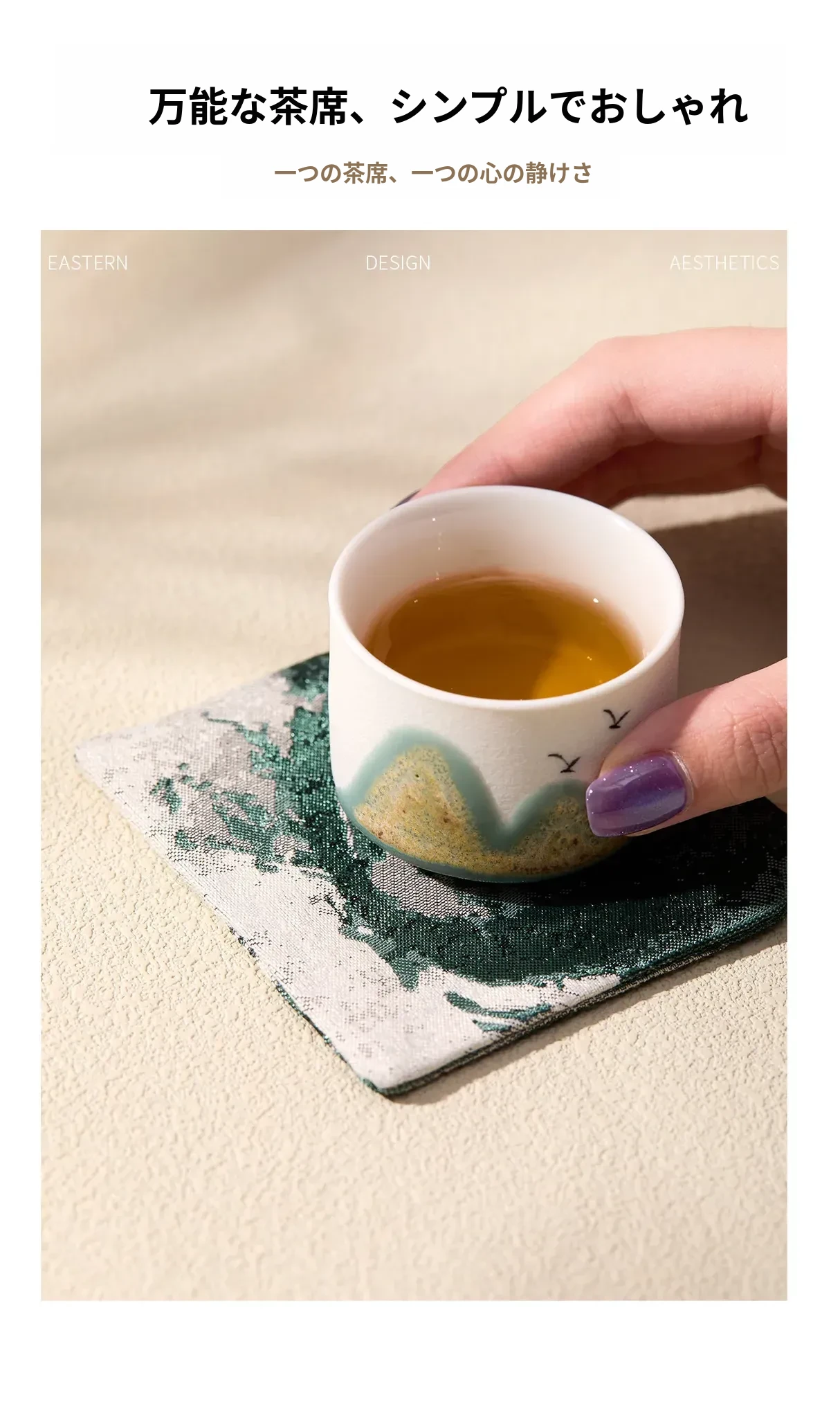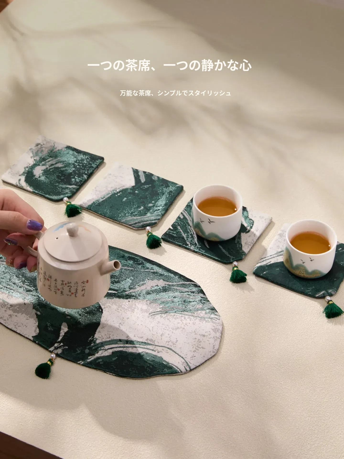 新中式古風茶席セット|防水茶卓用マット&お洒落な茶器|優雅なティータイムを演出する茶巾&カップマット付き!あなたの茶のひとときを特別に彩ります。