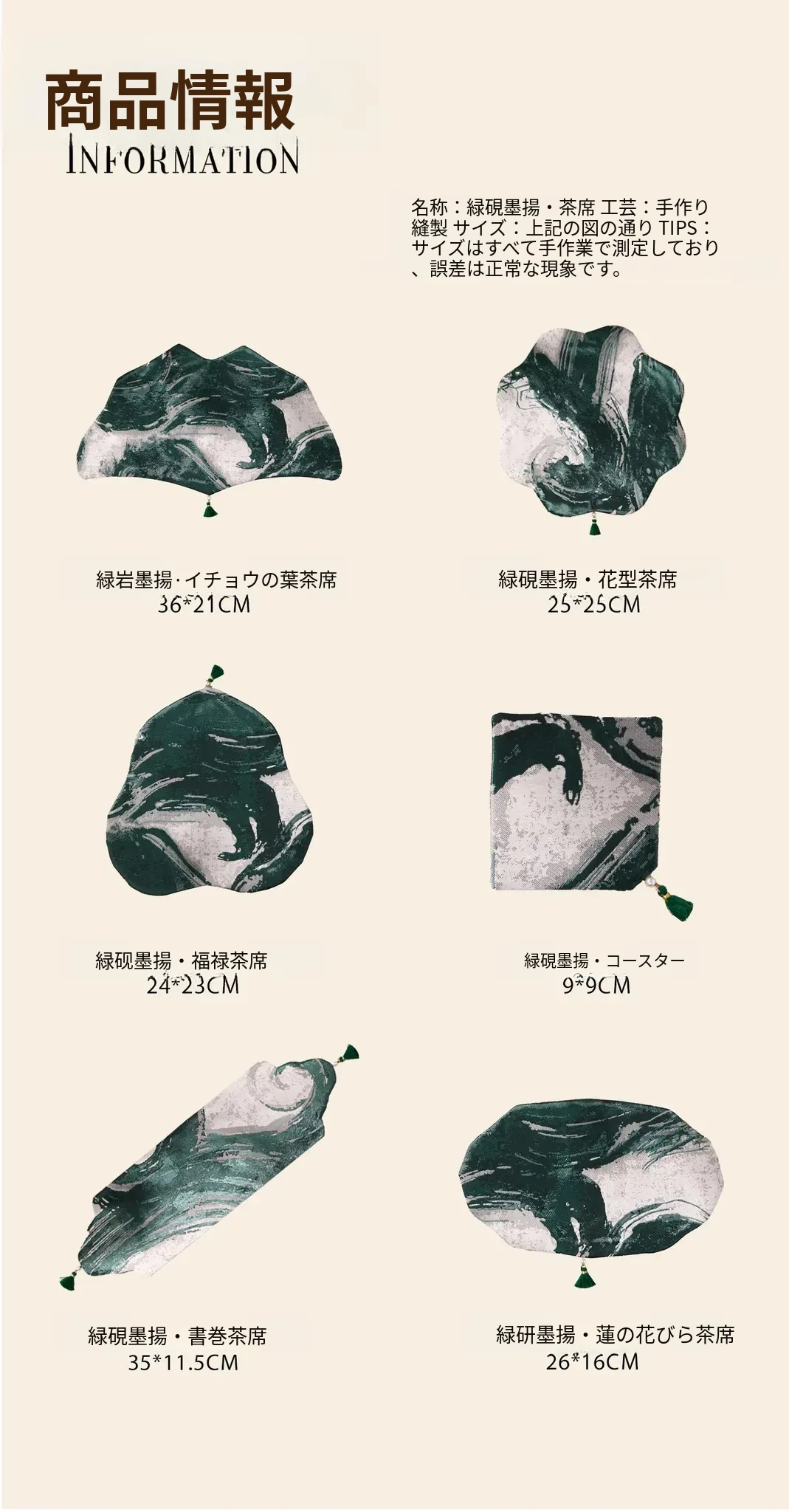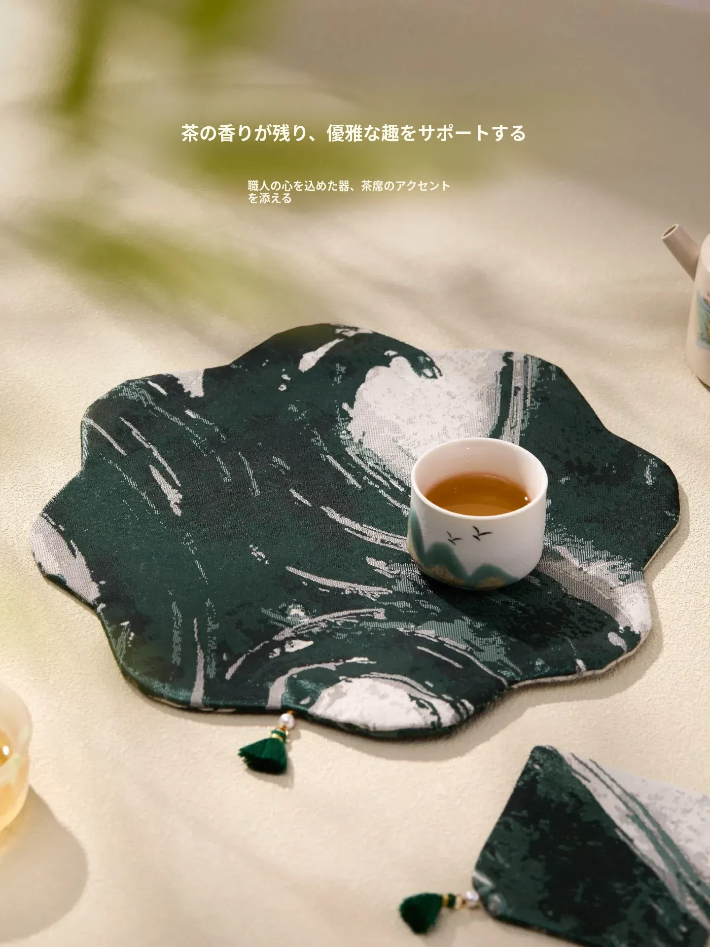 緑砚墨揚花型茶席【25*25cm】