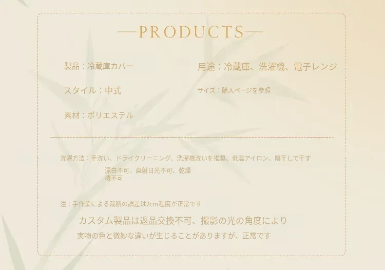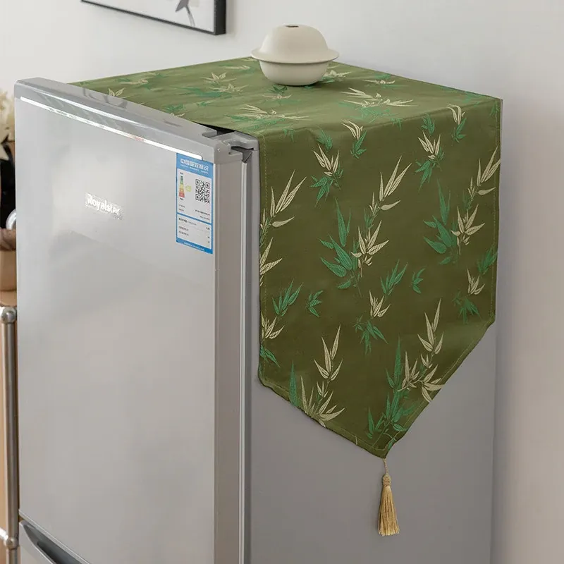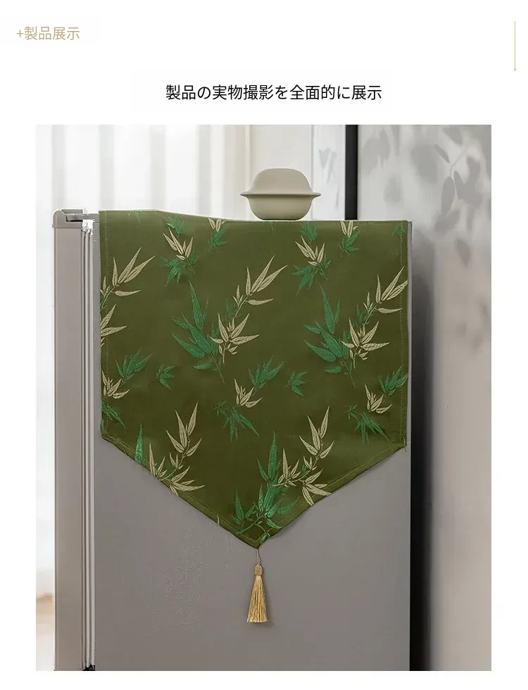 新中式スタイルの雰囲気を引き立てる!竹のデザインが美しい冷蔵庫用防塵カバー、十字扉の冷凍庫にもぴったりな長方形カバーで、あなたのキッチンをおしゃれに演出します。