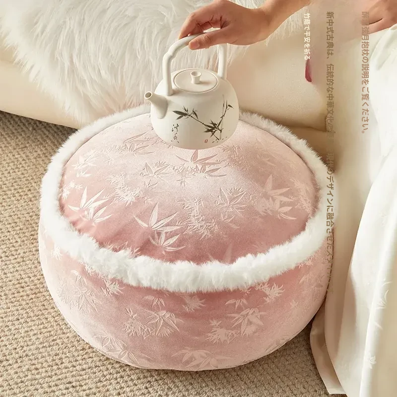 新中式中国風のピンク色クッション!フランススタイルのリビングやバルコニーに最適なデザイン。冬の瞑想にもぴったりな高級な低いスツールで、快適な座り心地を実現します。あなたの空間を華やかに彩るアイテムです!
