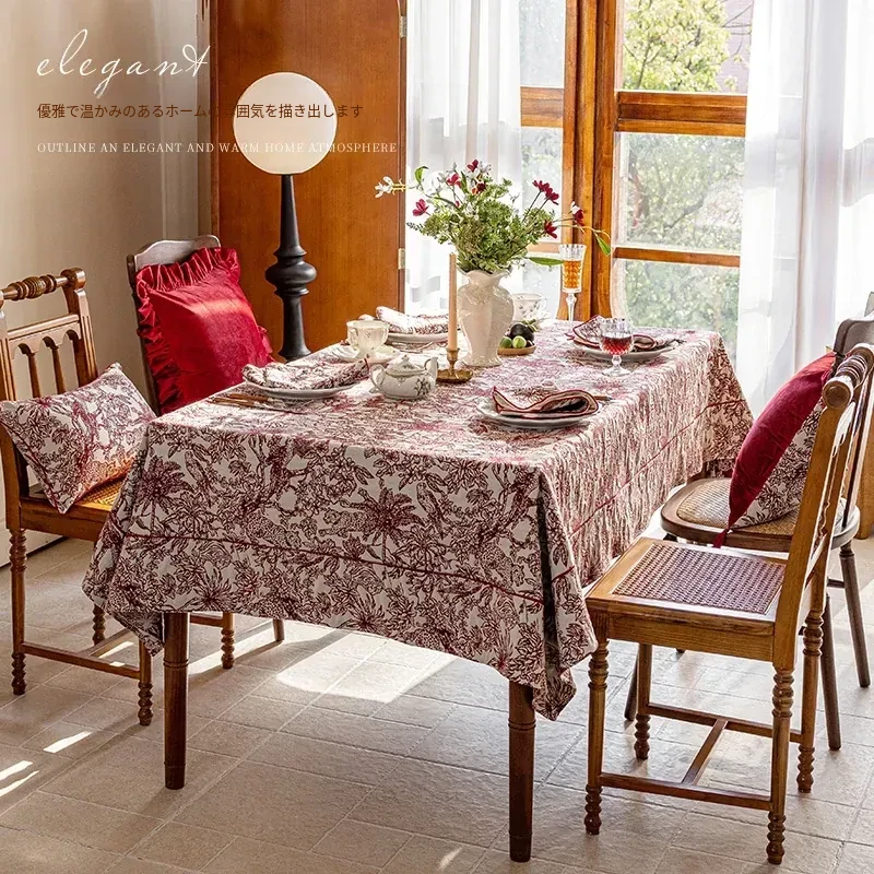 新中式の新年雰囲気を演出する高級感あふれるレトロな長方形テーブルクロス!軽やかでおしゃれなデザイン、ダスト防止機能付きで、あなたの茶卓を華やかに彩ります。