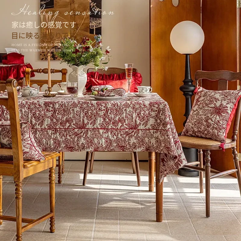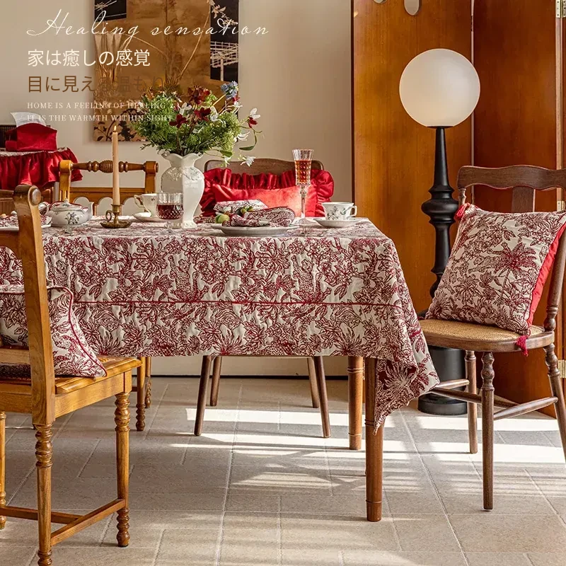 フレンチジャングルレッドテーブルクロスパイピングタイプ