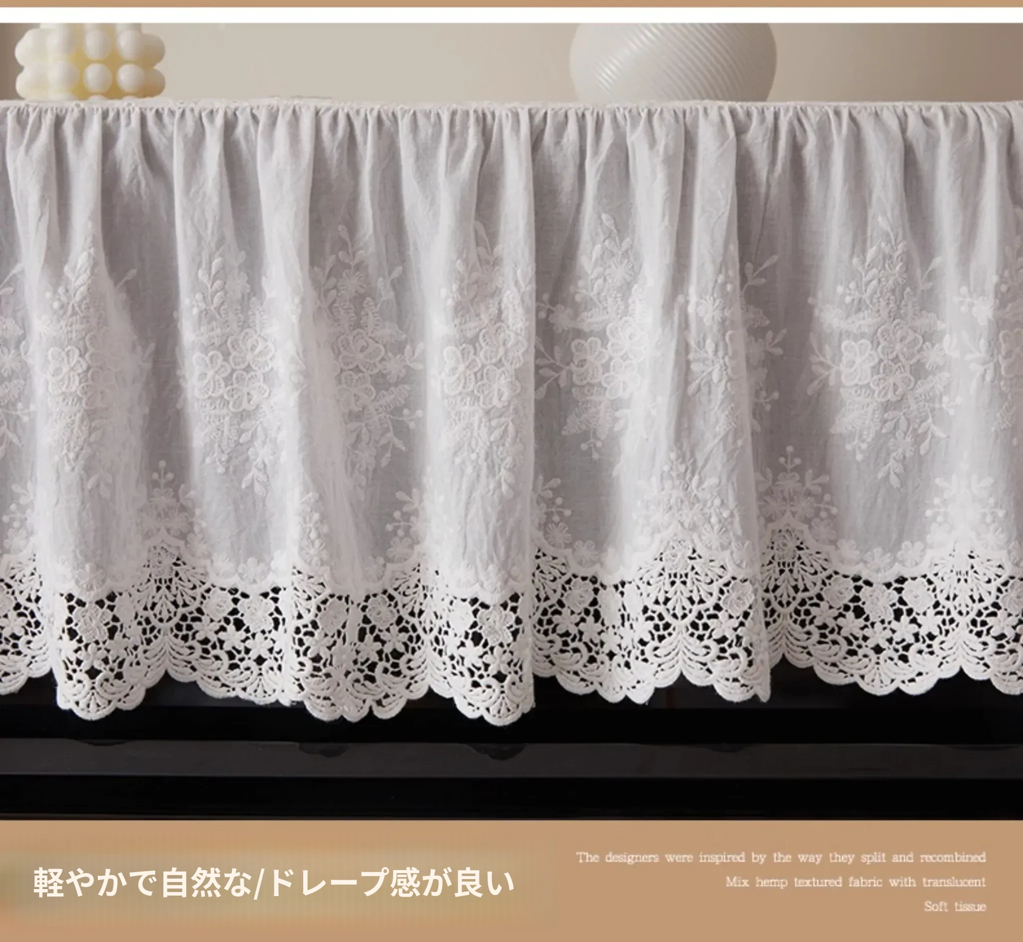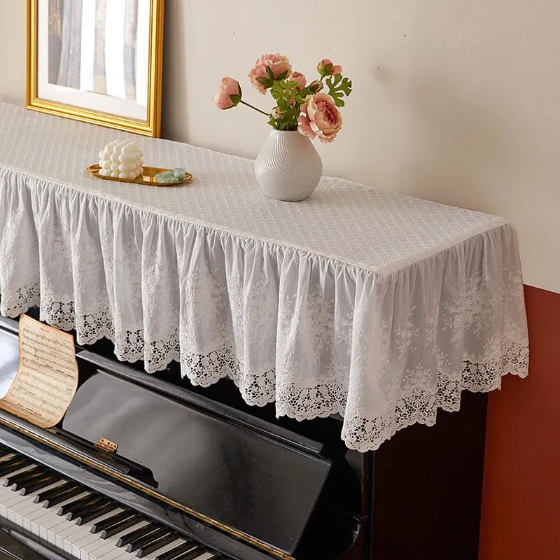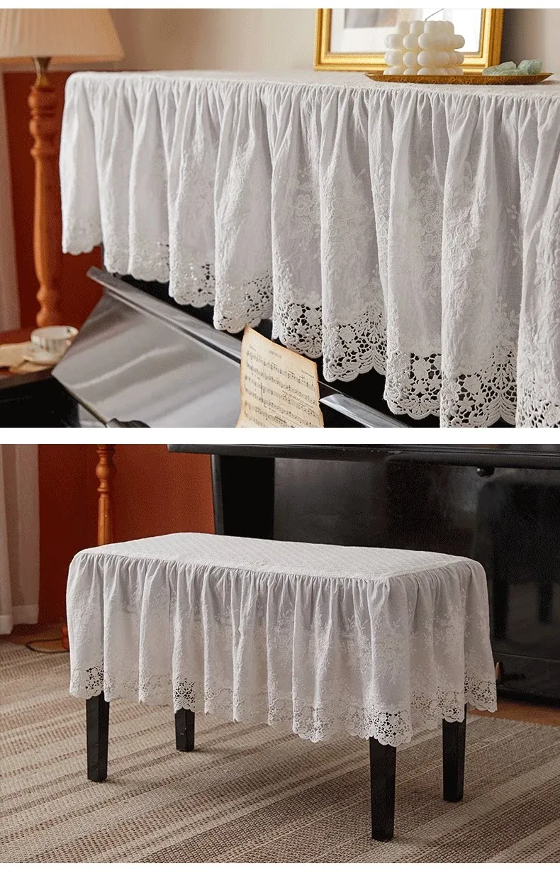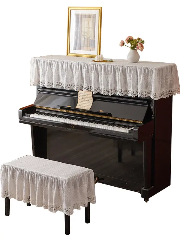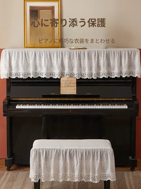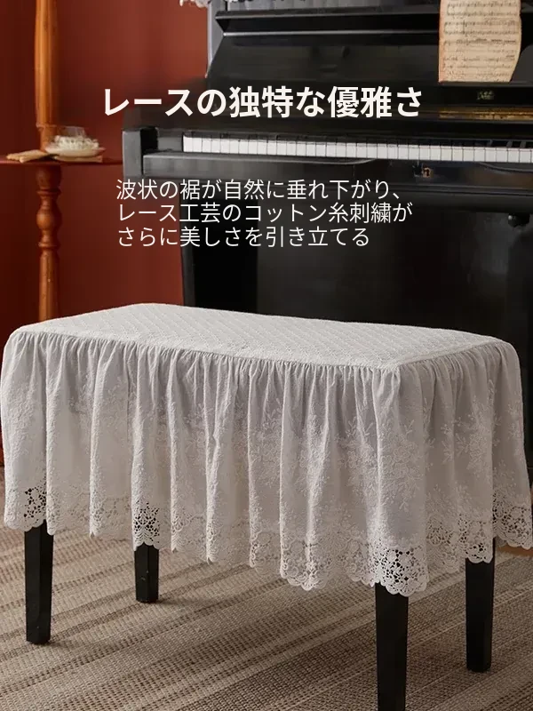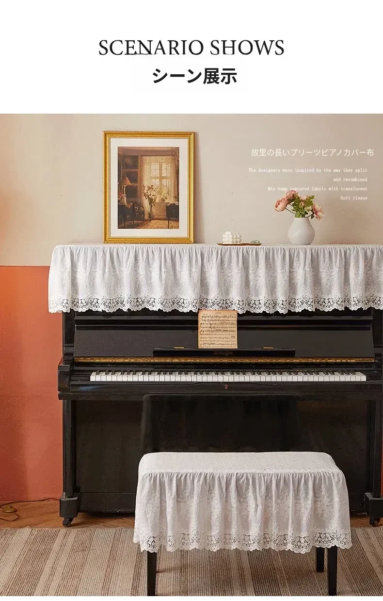 フランス風のラグジュアリーなレースピアノ防塵カバー|モダンでシンプルなデザインの高級感あふれる電子ピアノ用フルカバー|おしゃれな椅子カバー付きで、インテリアを格上げします!