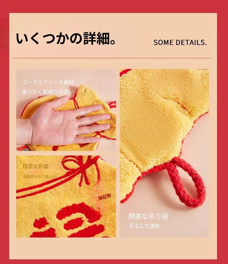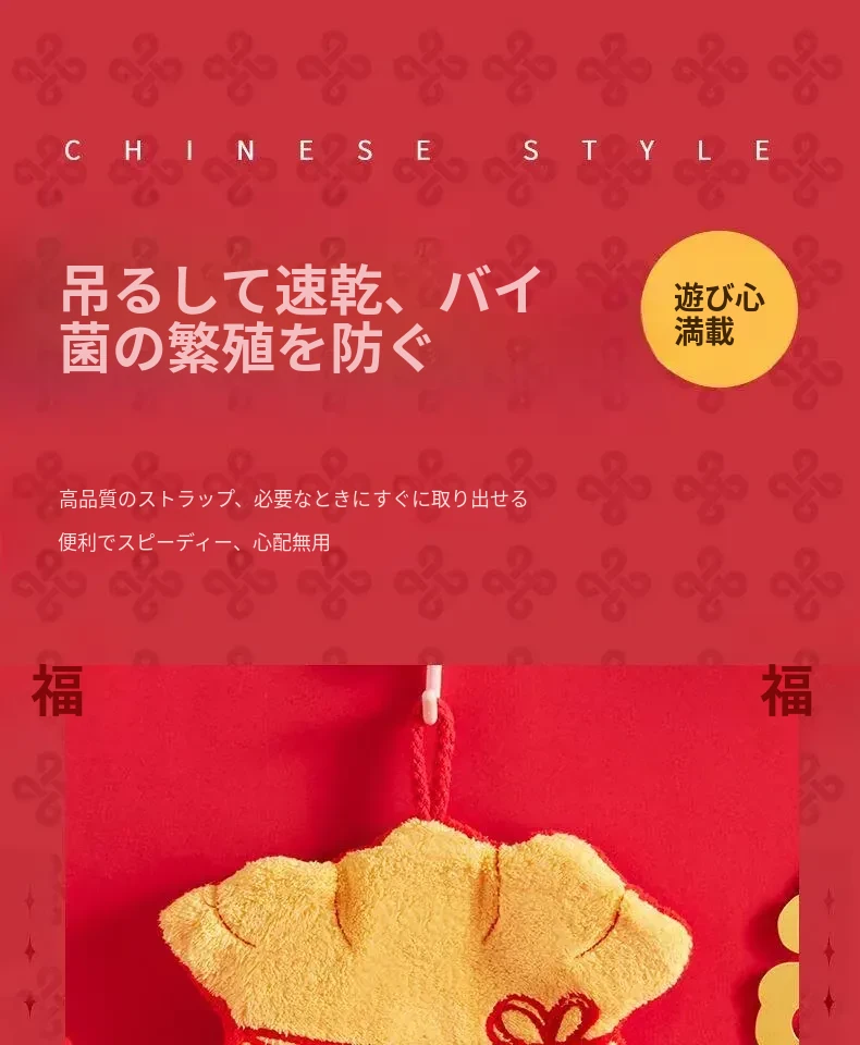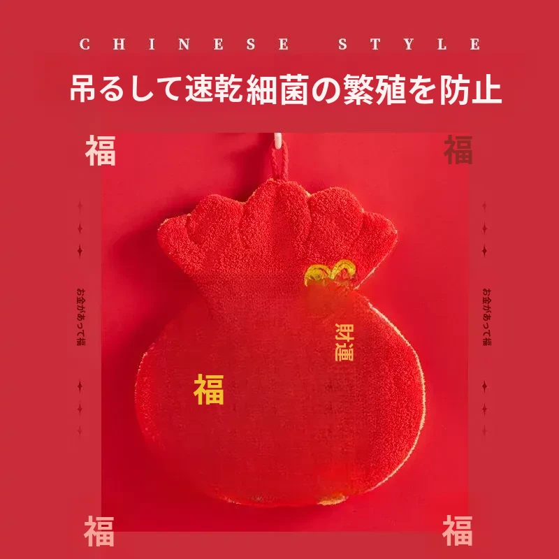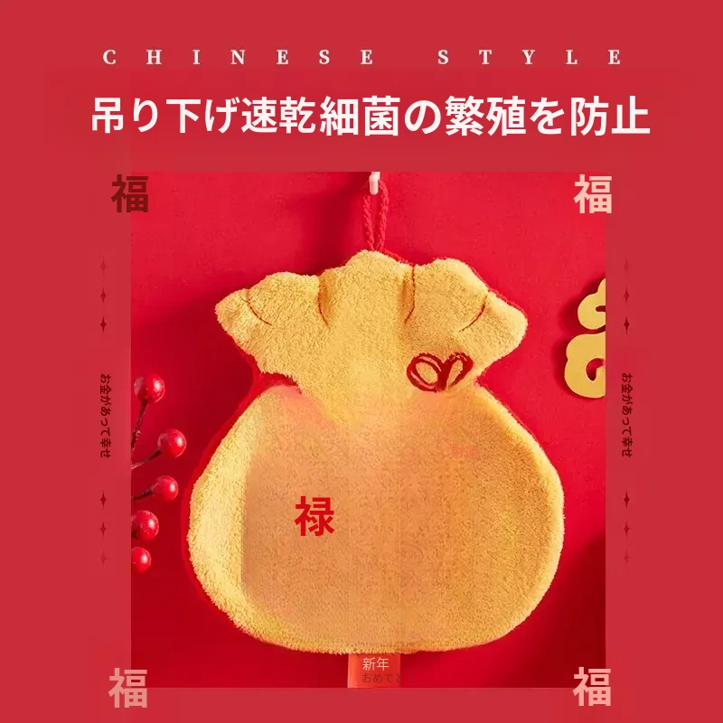 福禄吸水速乾タオル|元旦・春節にぴったり!壁掛け可能なキッチン・バスルーム用ハンドタオル|驚異の吸水力で素早く乾燥!おしゃれで実用的なアイテムを今すぐ手に入れよう!
