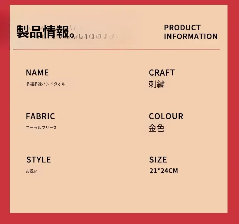 多福多禄ハンドタオル 21*24cm