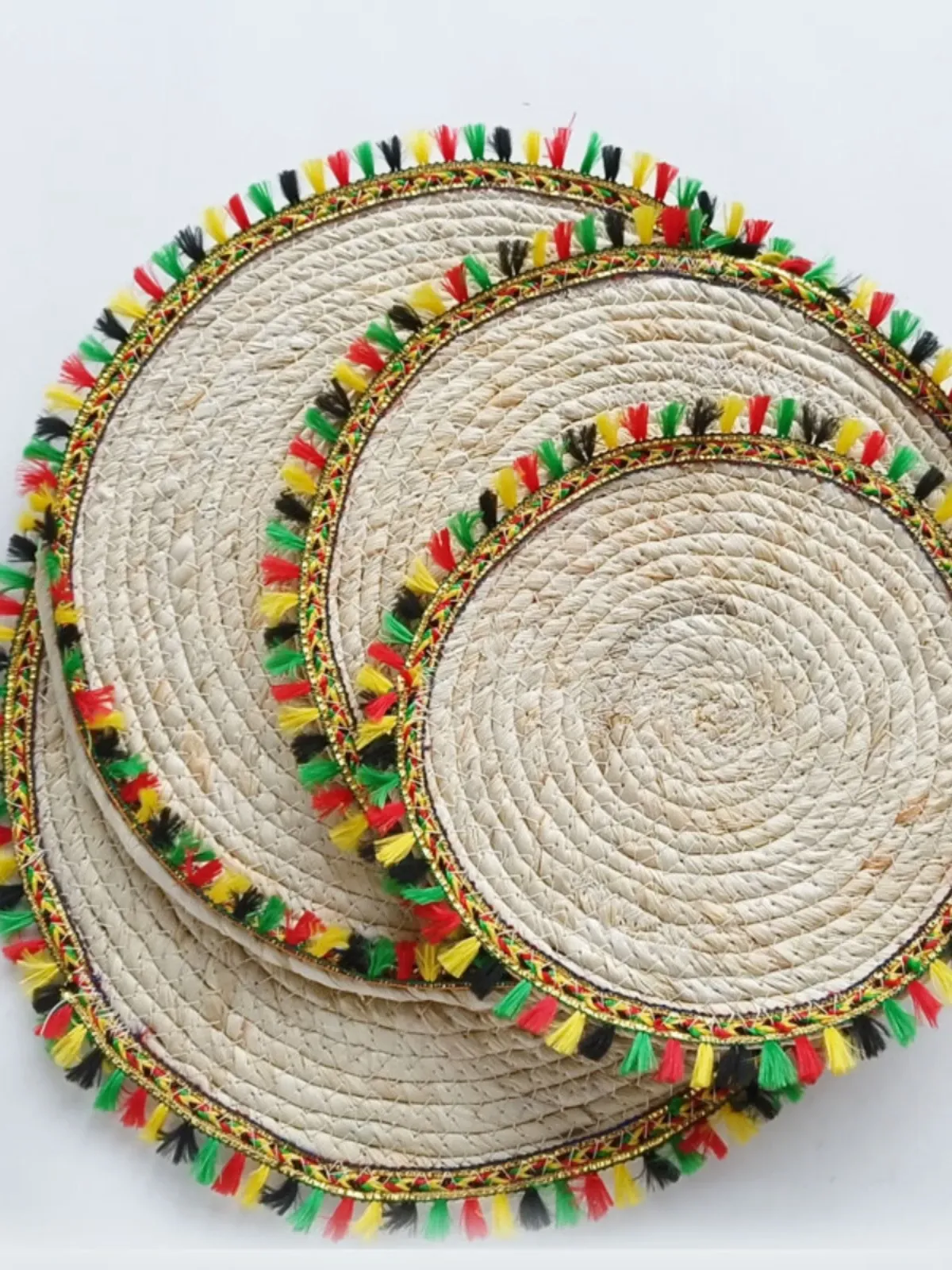 カラフルなフリンジのテーブルマット