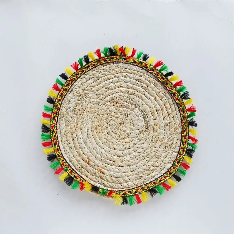 手作の丸型コースター - 家庭用熱防止マット、茶道・食卓に最適な籐編み鍋敷き・皿敷き・ランチョンマット、厚手の編み込みデザインでおしゃれさと機能性を両立!