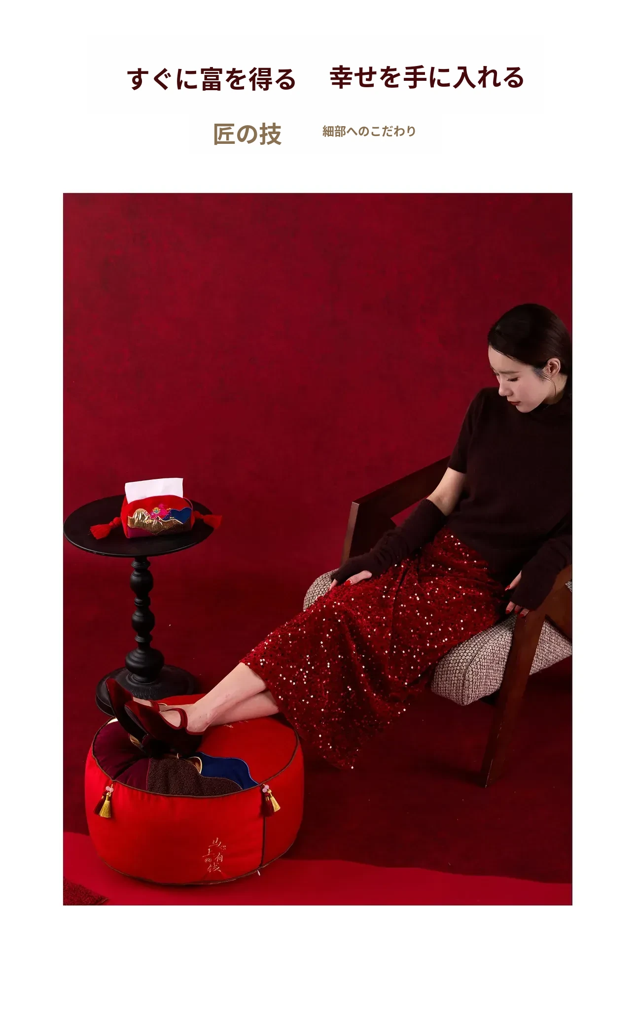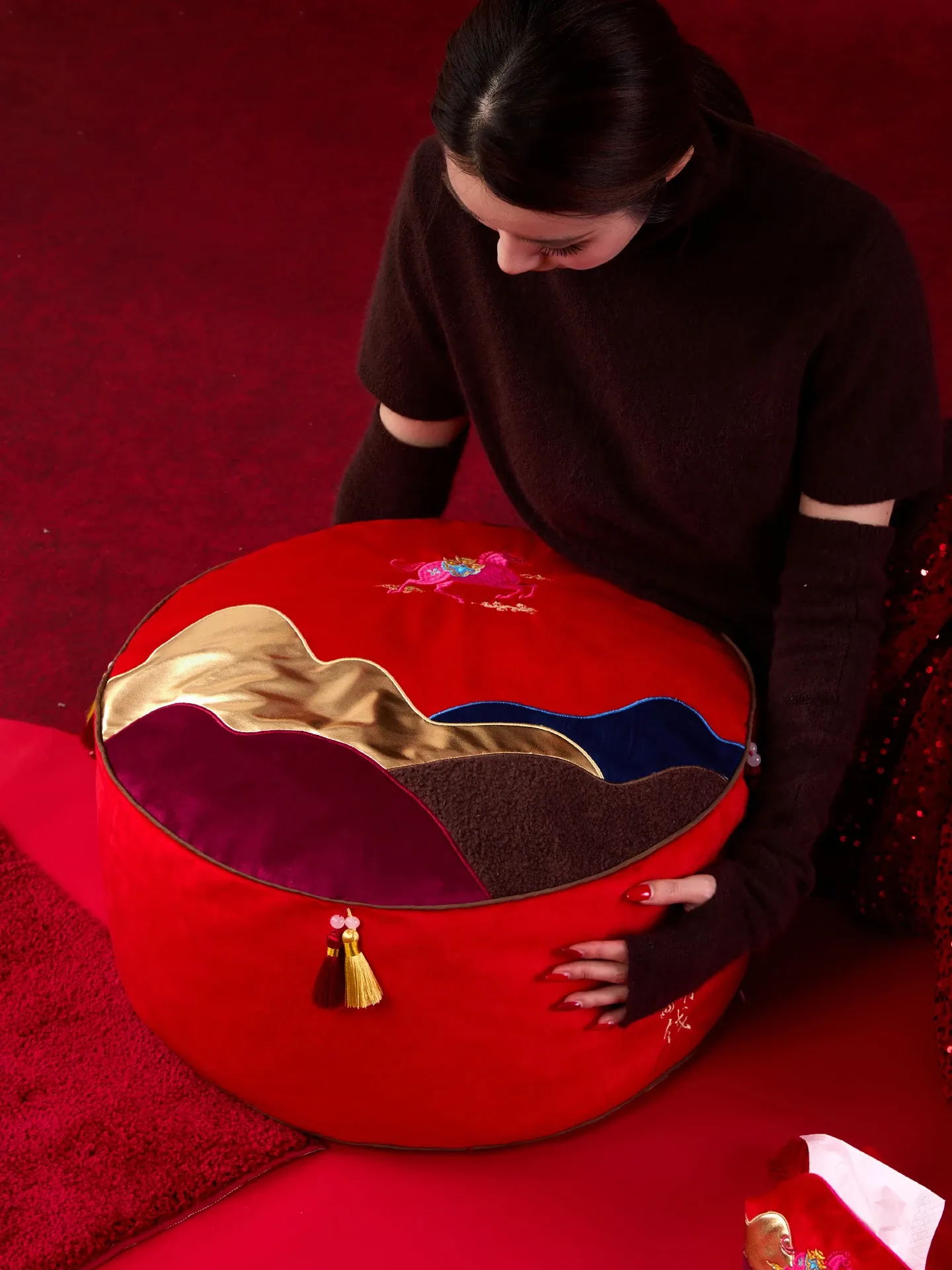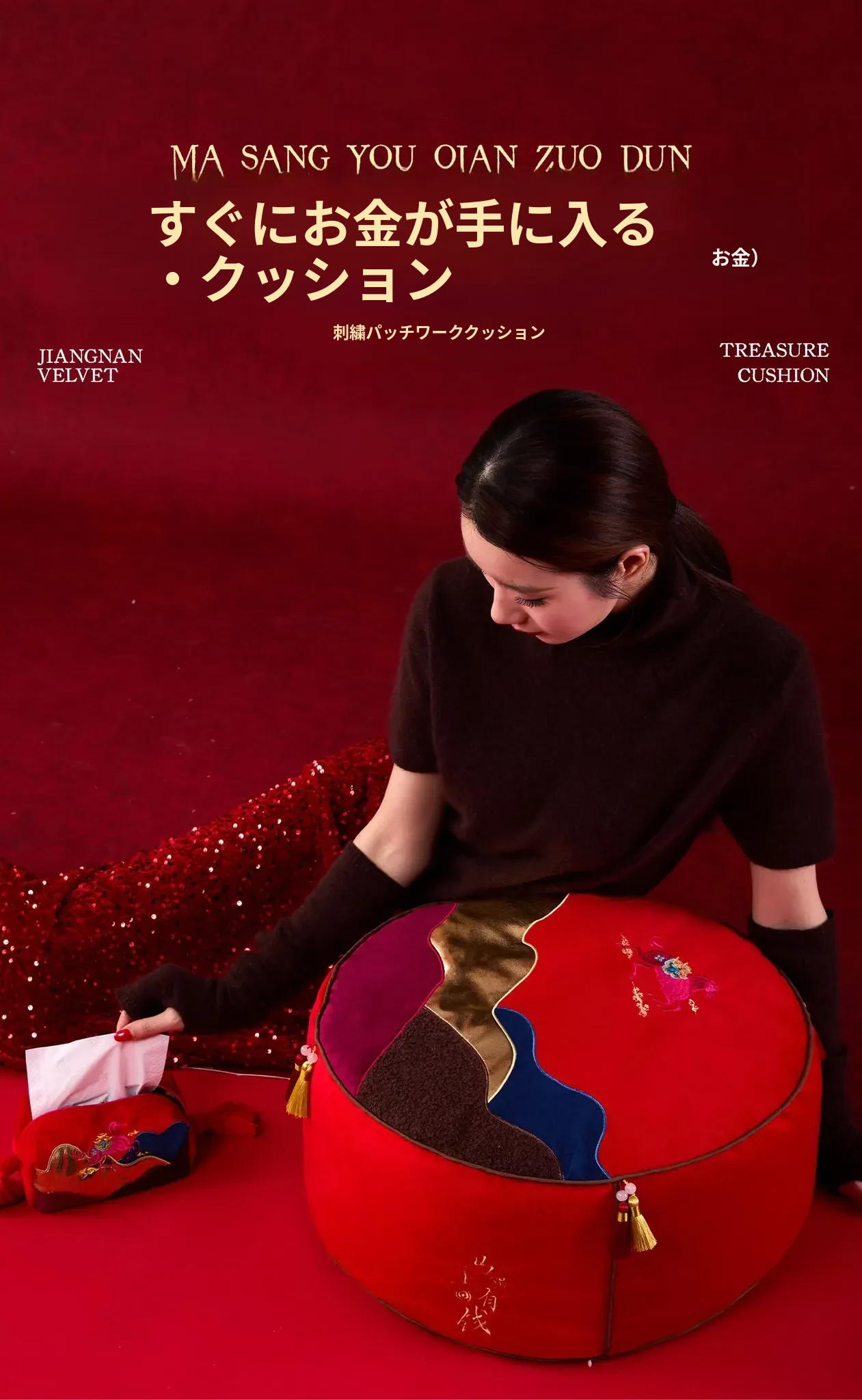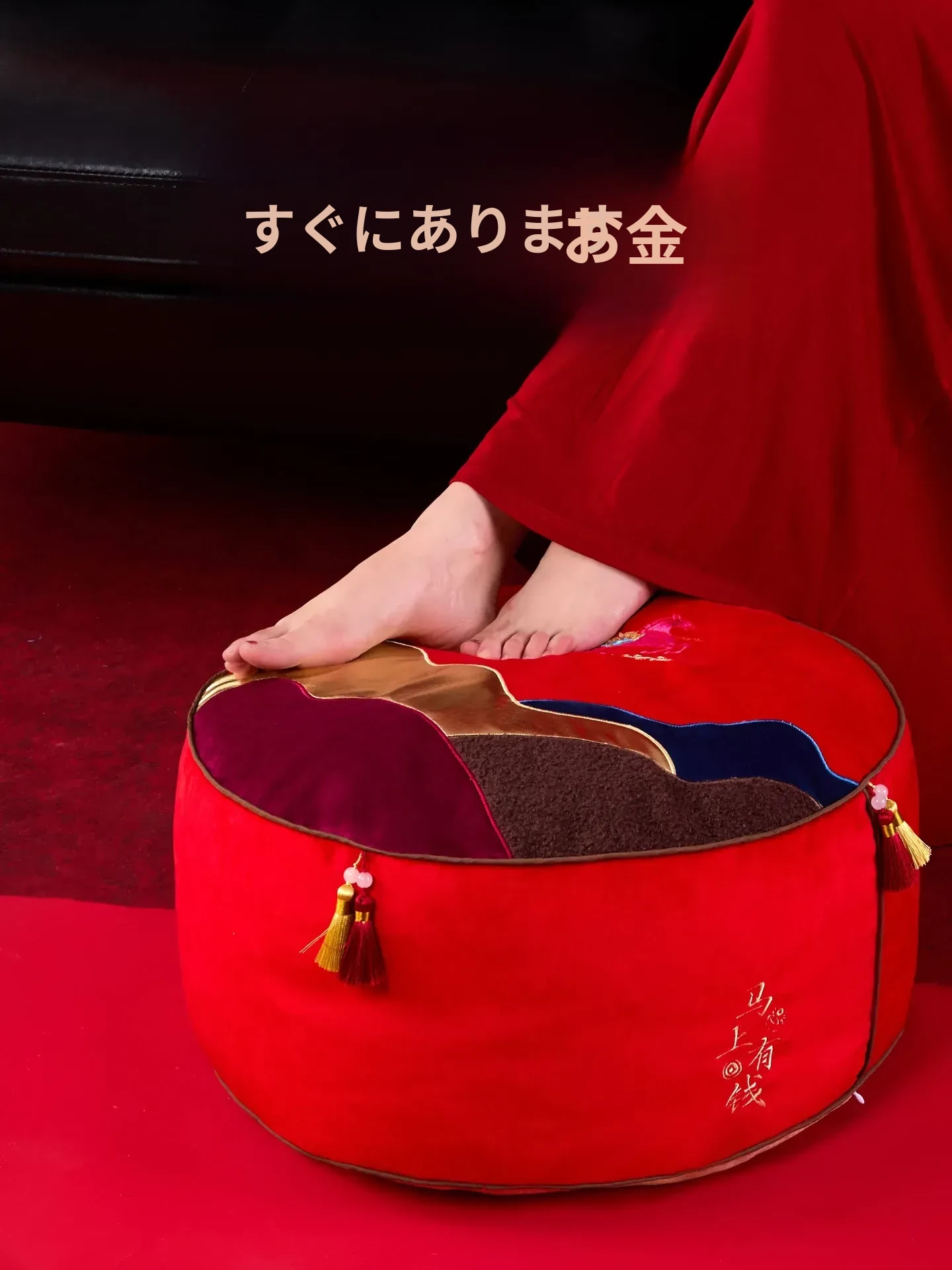 即日手に入る!新中式デザインの楽々座布団、リビングに最適な足置きマット。タタミスタイルの赤色ファブリックは、お祝い気分を盛り上げる!ティッシュケース付きで便利さも抜群!