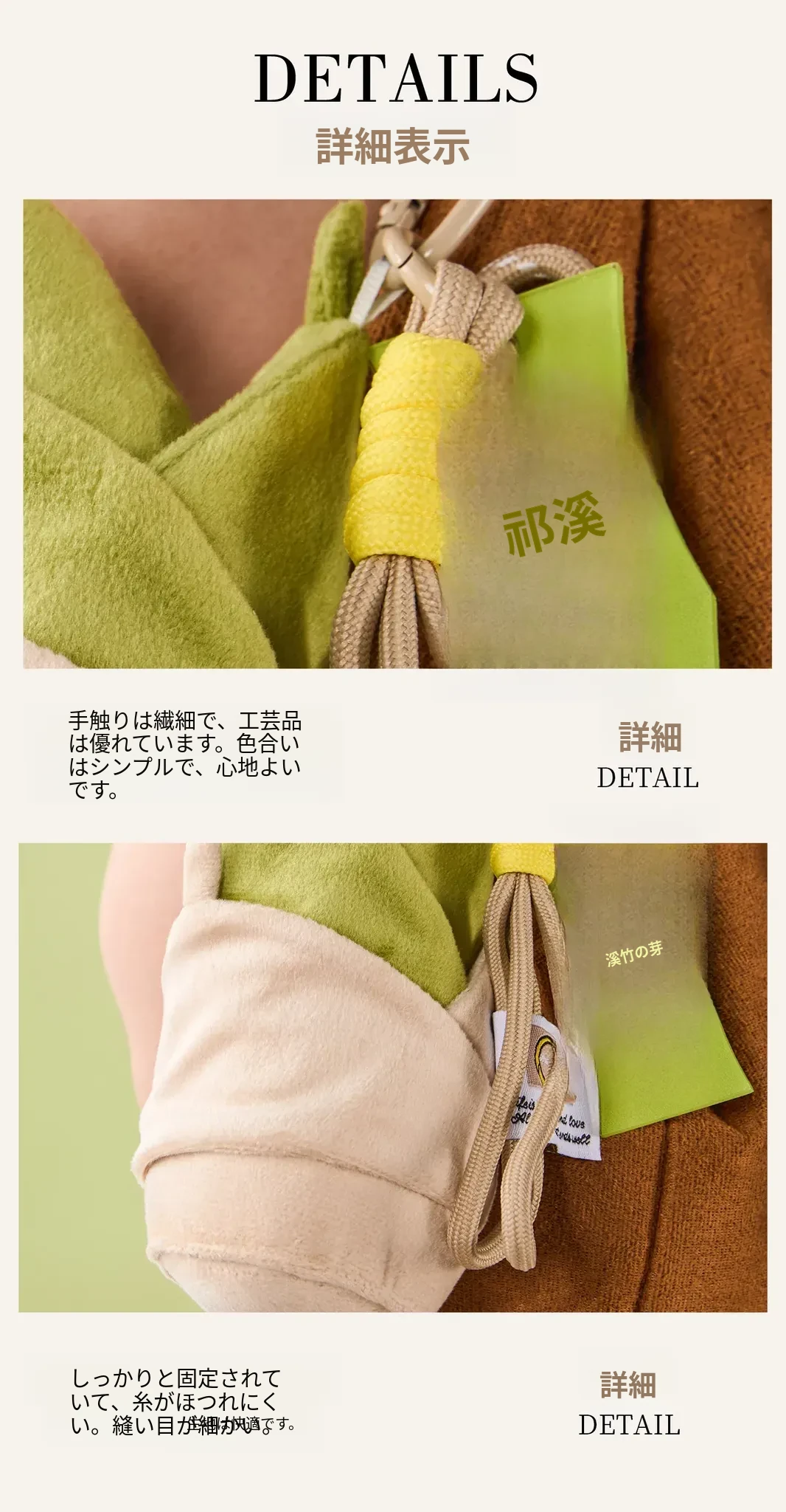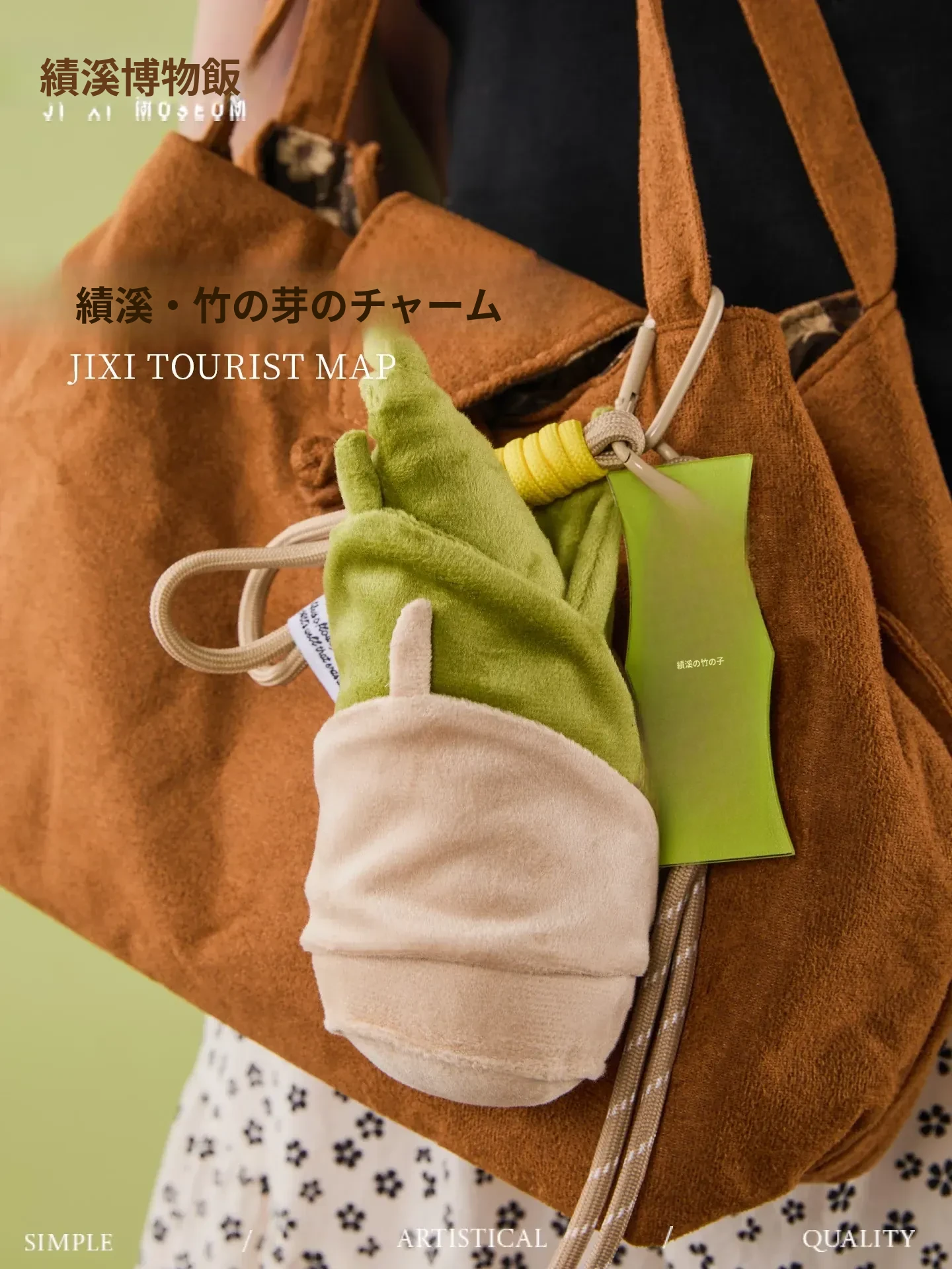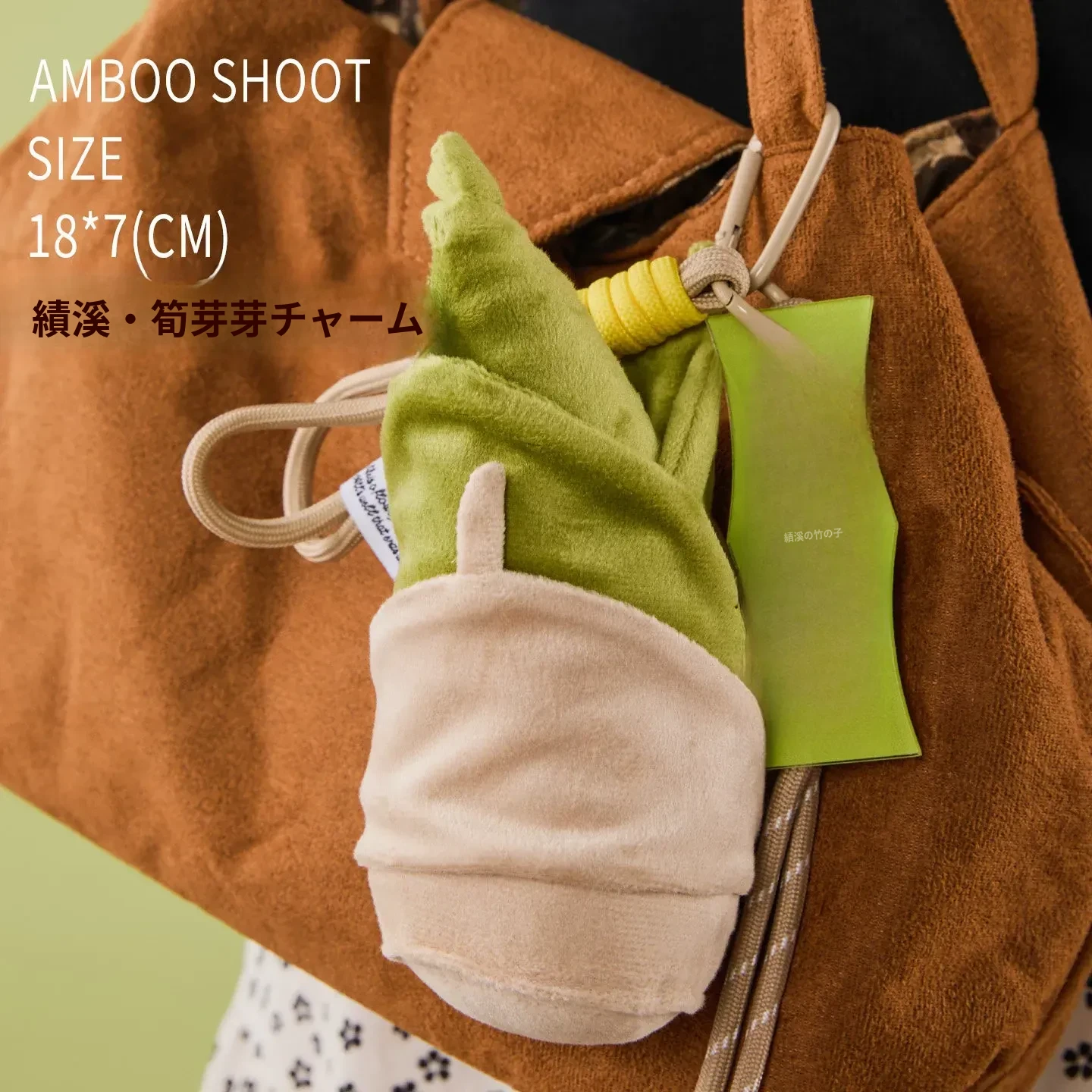 績溪博物館の竹の子モチーフぬいぐるみキーホルダー!可愛いキャラクター付きのバッグチャームやお土産に最適なアクセサリーギフト。大切な人へのプレゼントにぴったりです!