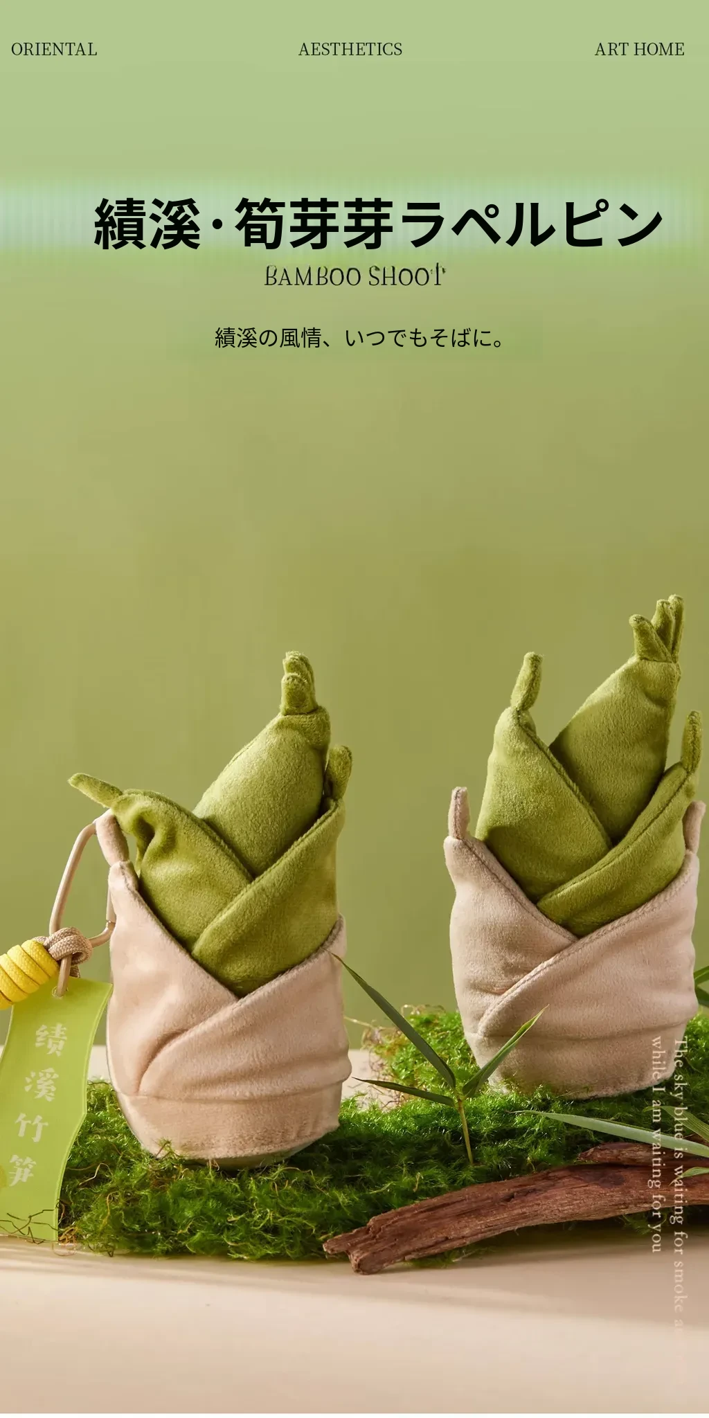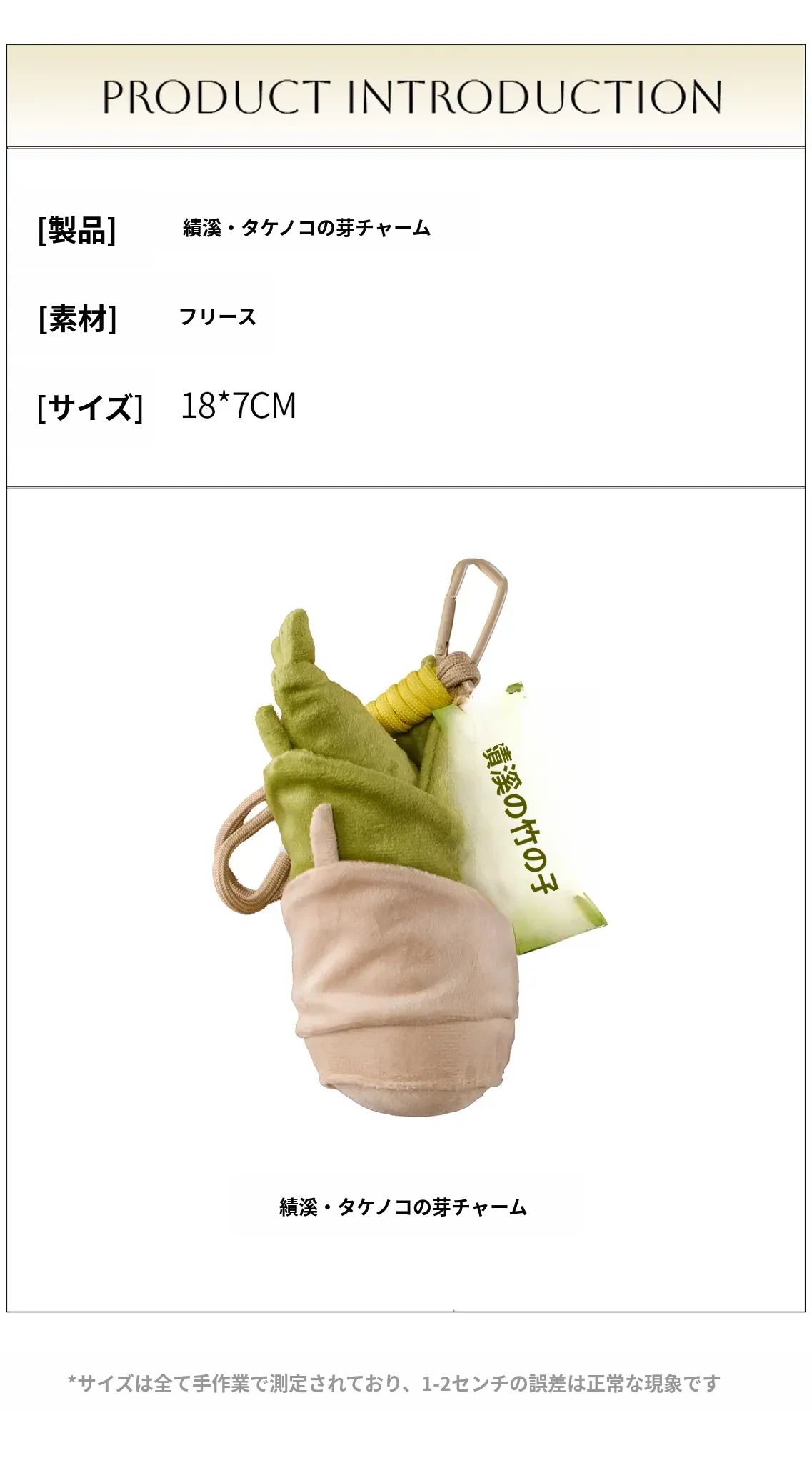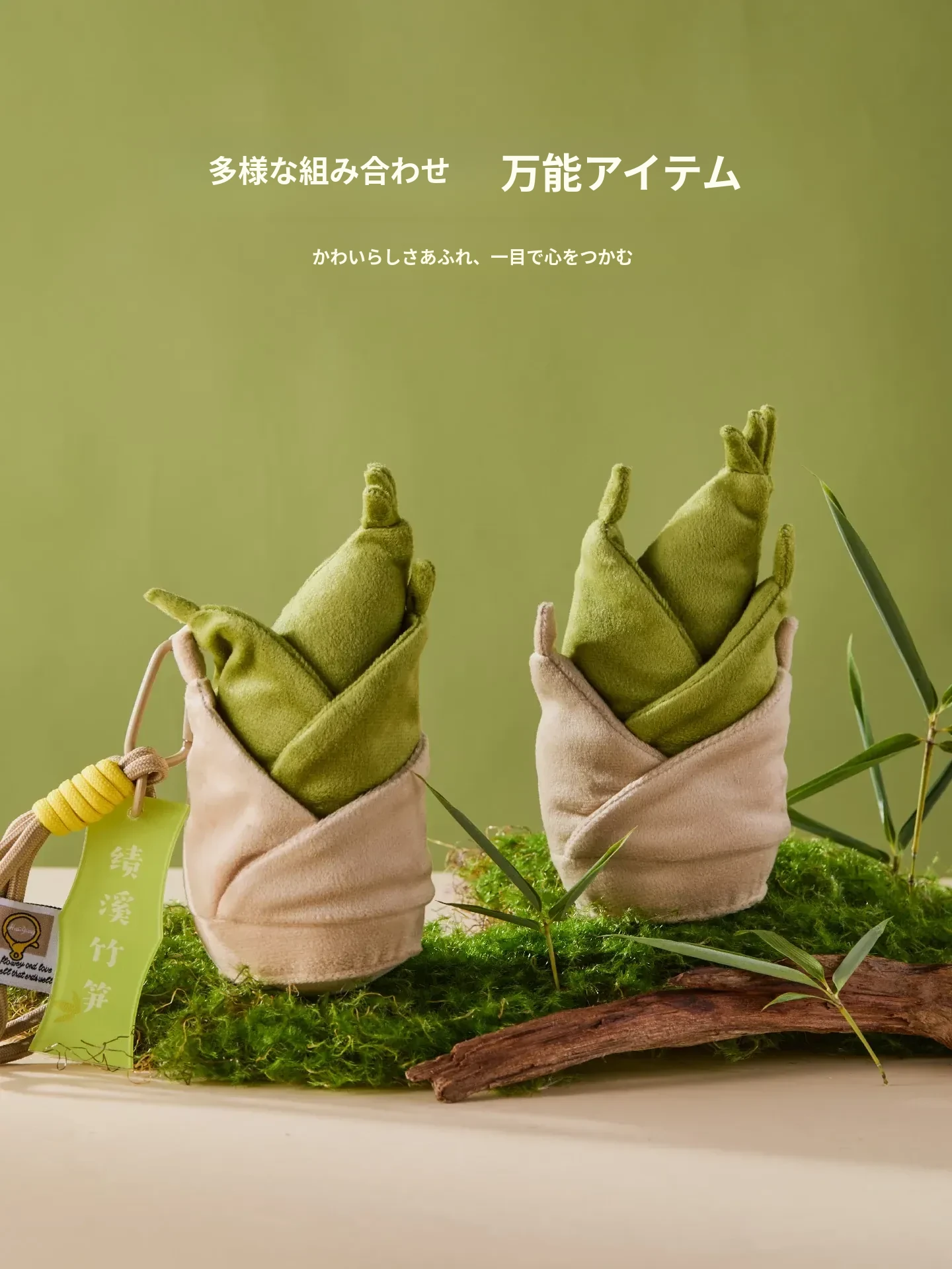 績溪博物館の竹の子モチーフぬいぐるみキーホルダー!可愛いキャラクター付きのバッグチャームやお土産に最適なアクセサリーギフト。大切な人へのプレゼントにぴったりです!