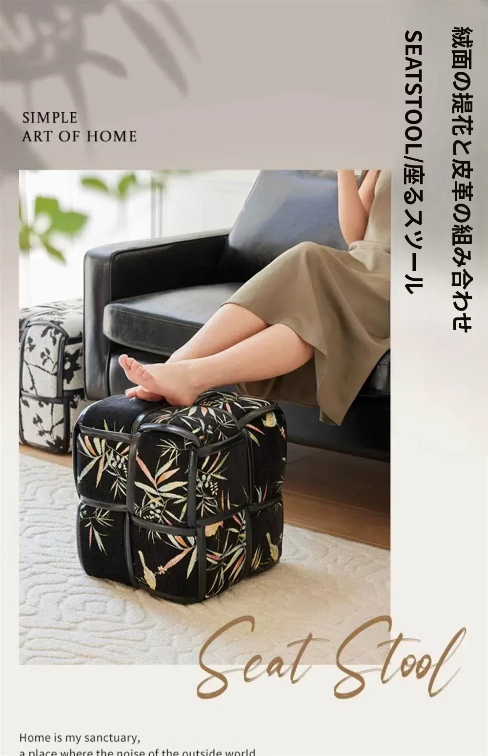 春盏多機能四角スツール【スエードエッジ 軽奢華で高級】