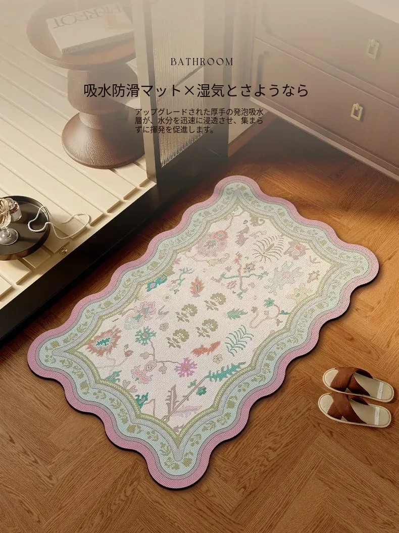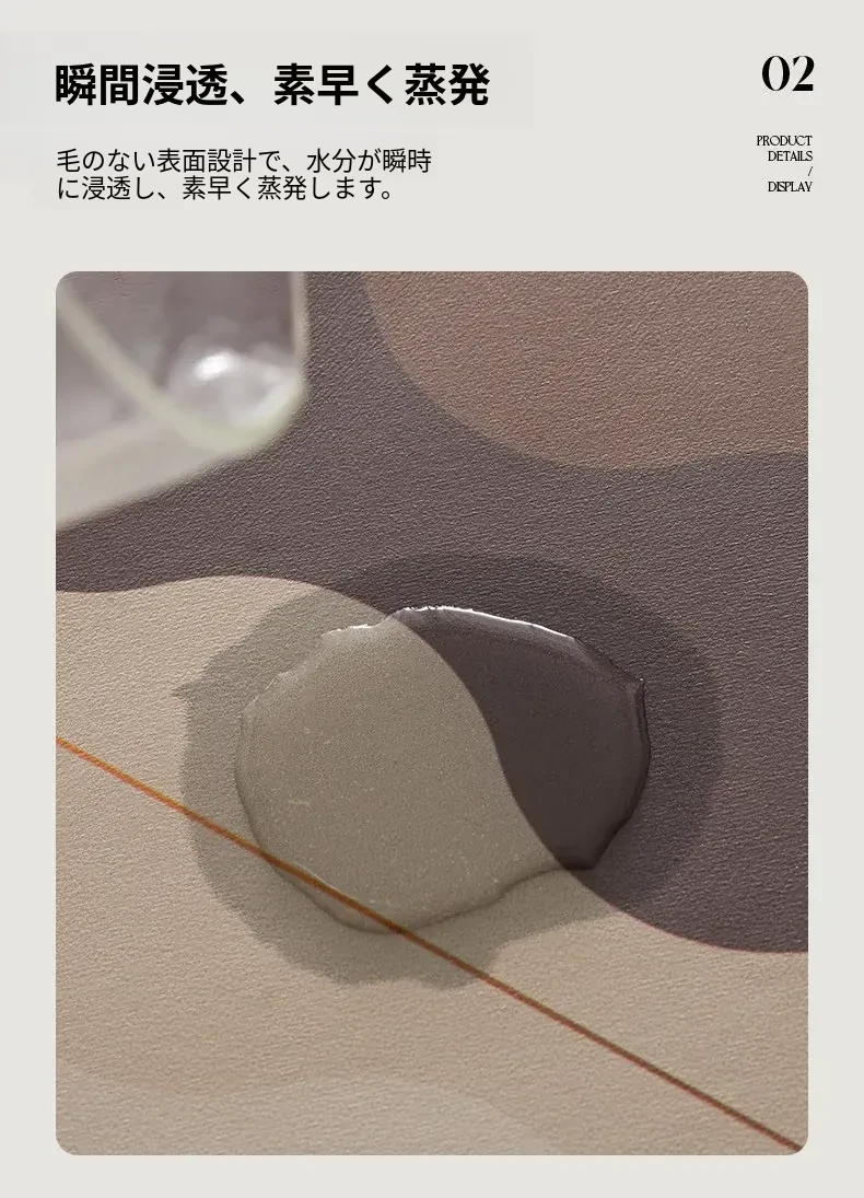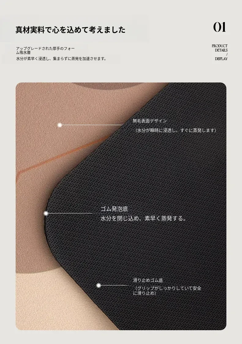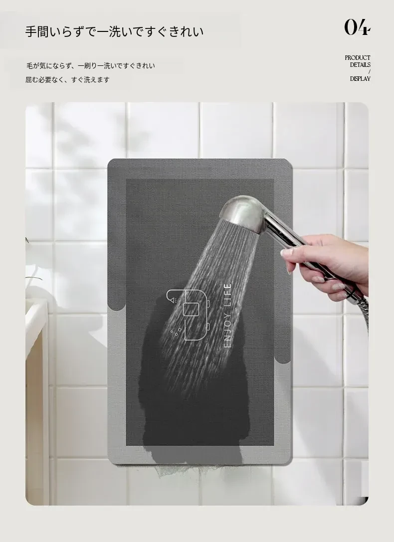 高級感あふれる吸水バスルームマット!トイレの入り口にぴったりな珪藻土製の速乾防滑マット。快適で安心、毎日のバスタイムを特別なものに!