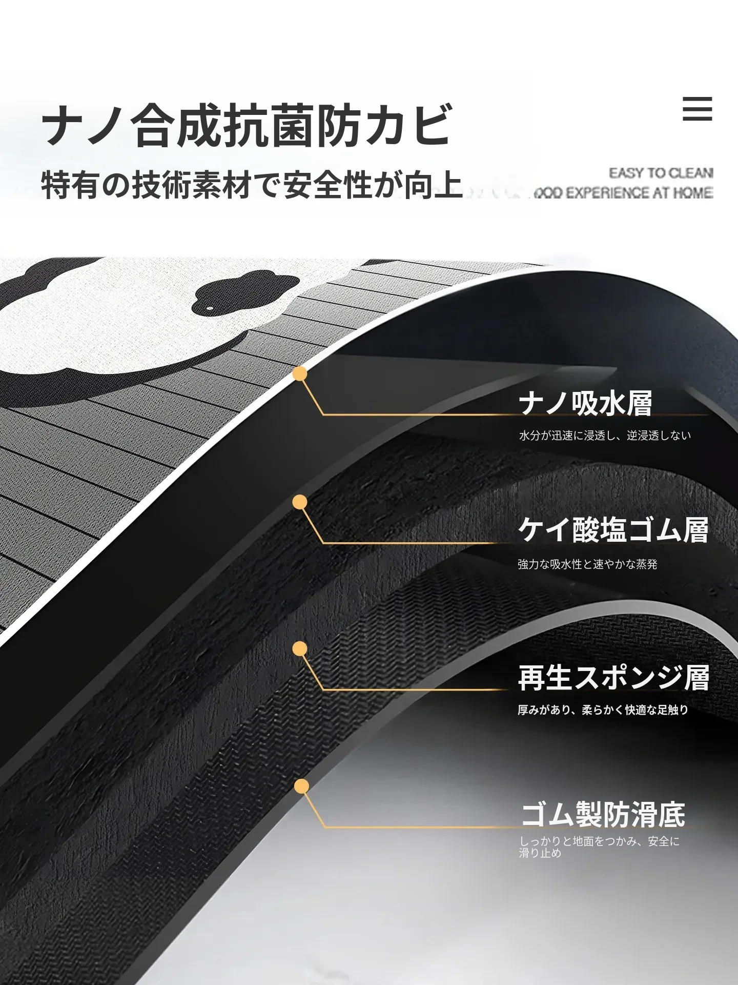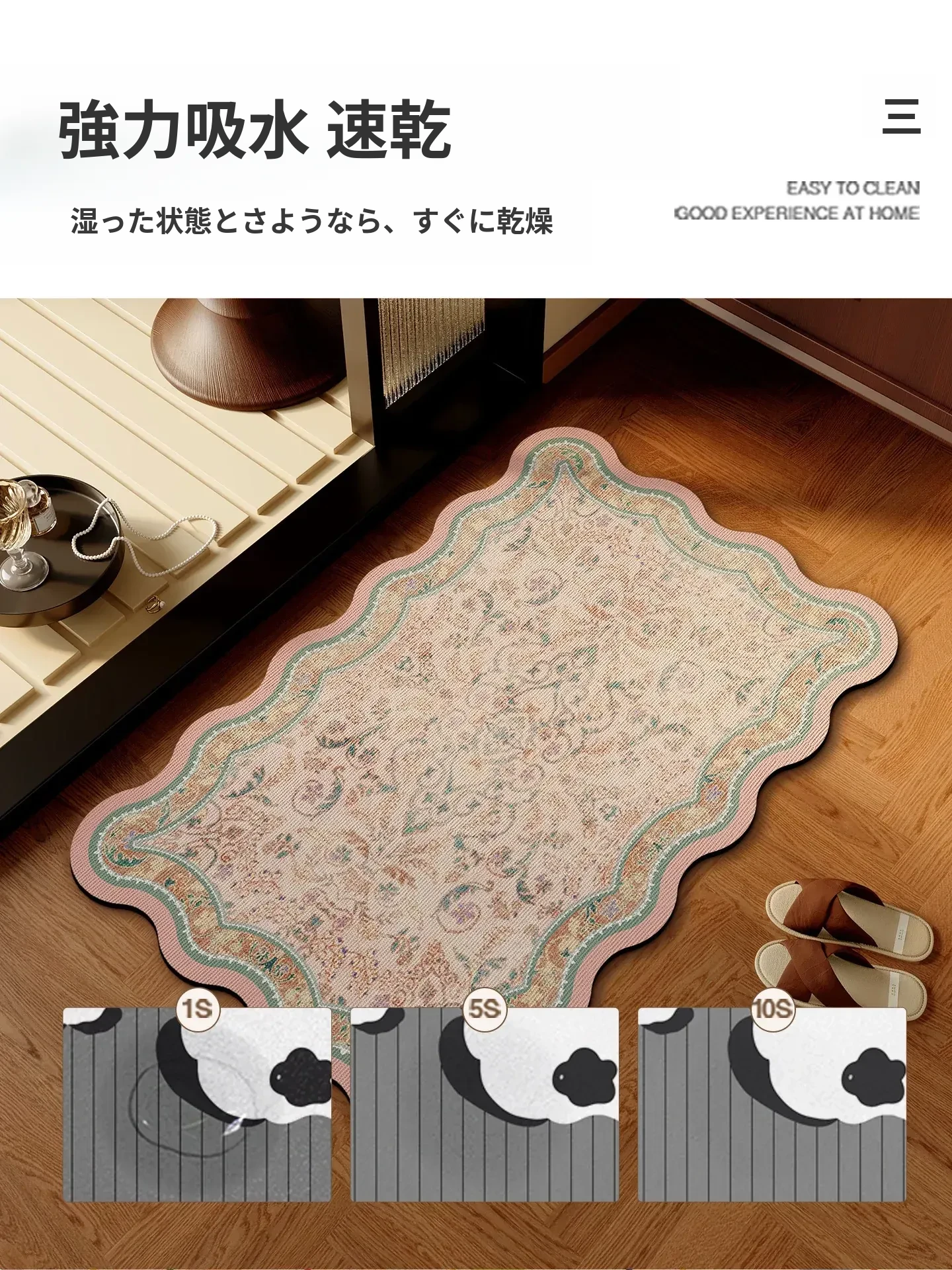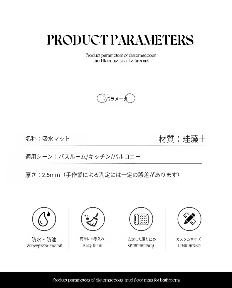 高級感あふれる吸水バスルームマット!トイレの入り口にぴったりな珪藻土製の速乾防滑マット。快適で安心、毎日のバスタイムを特別なものに!