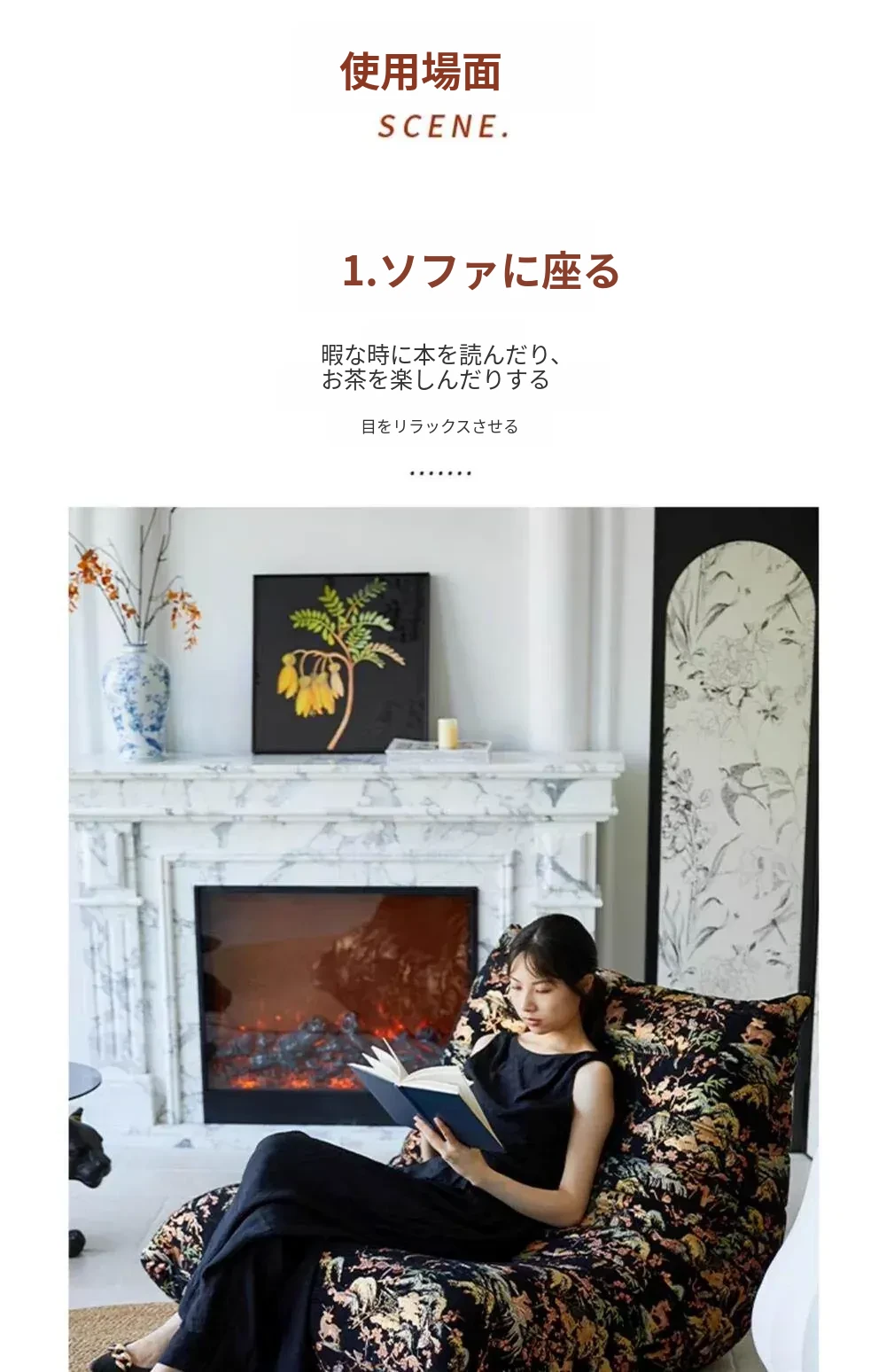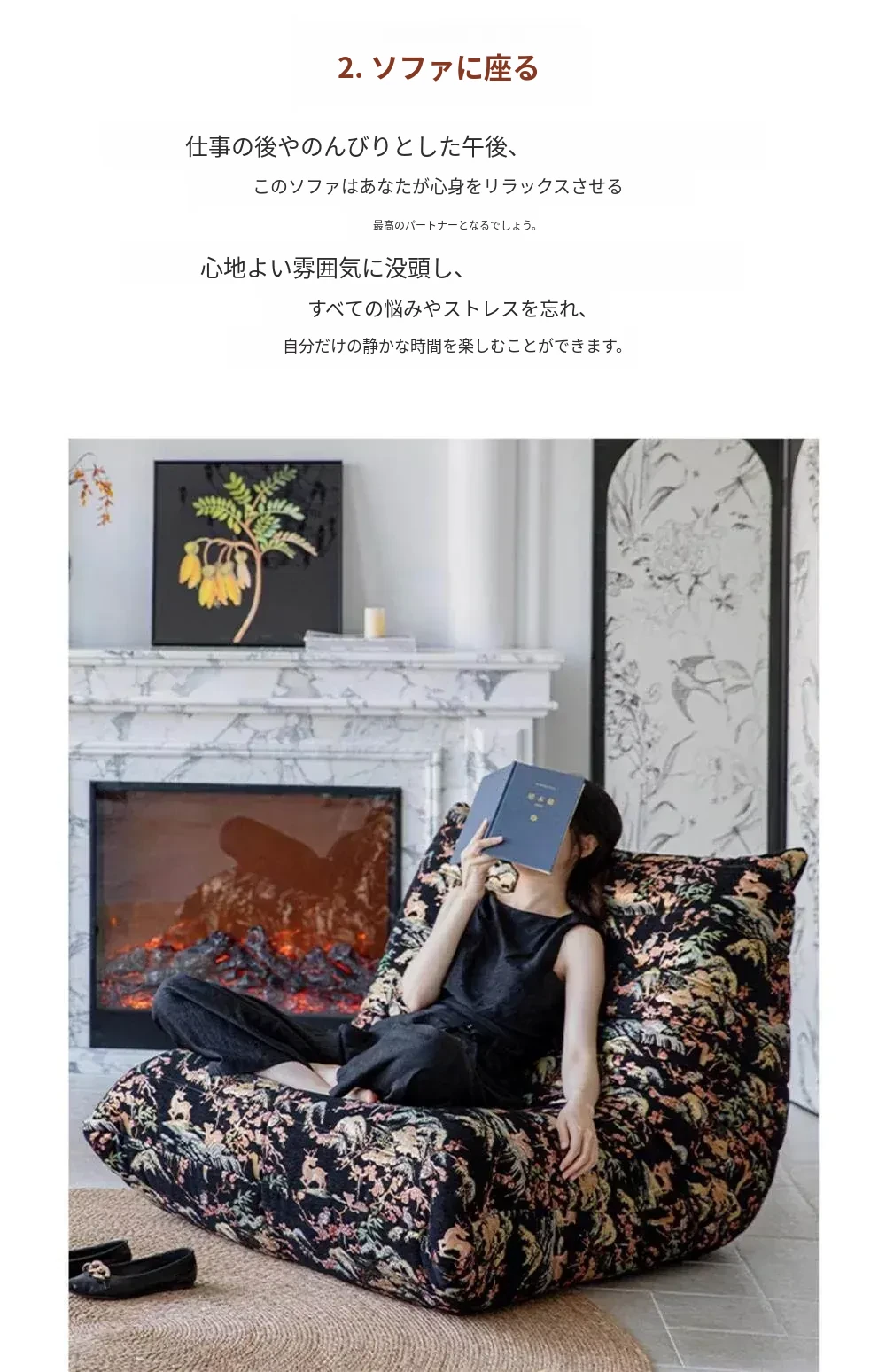 フルカバー風景ブラックソファ【快適で柔らかい】