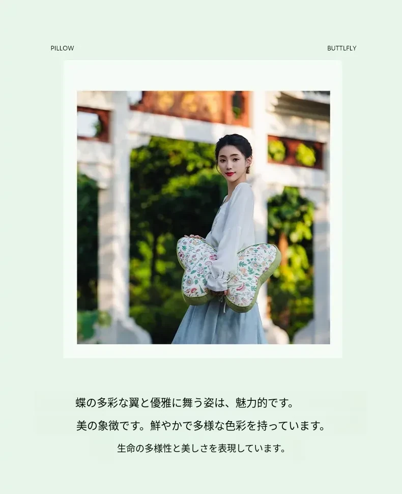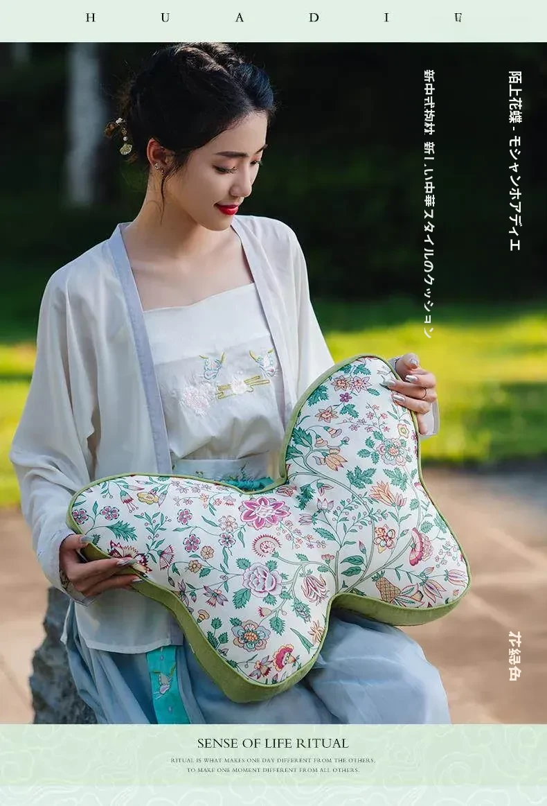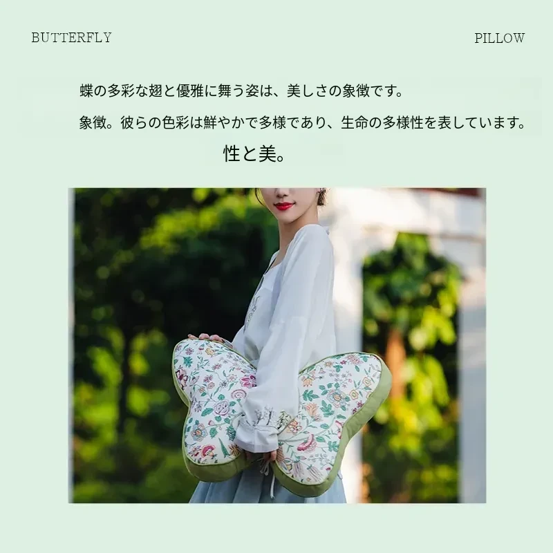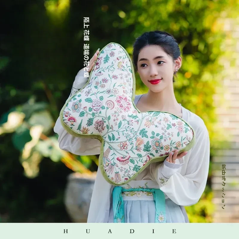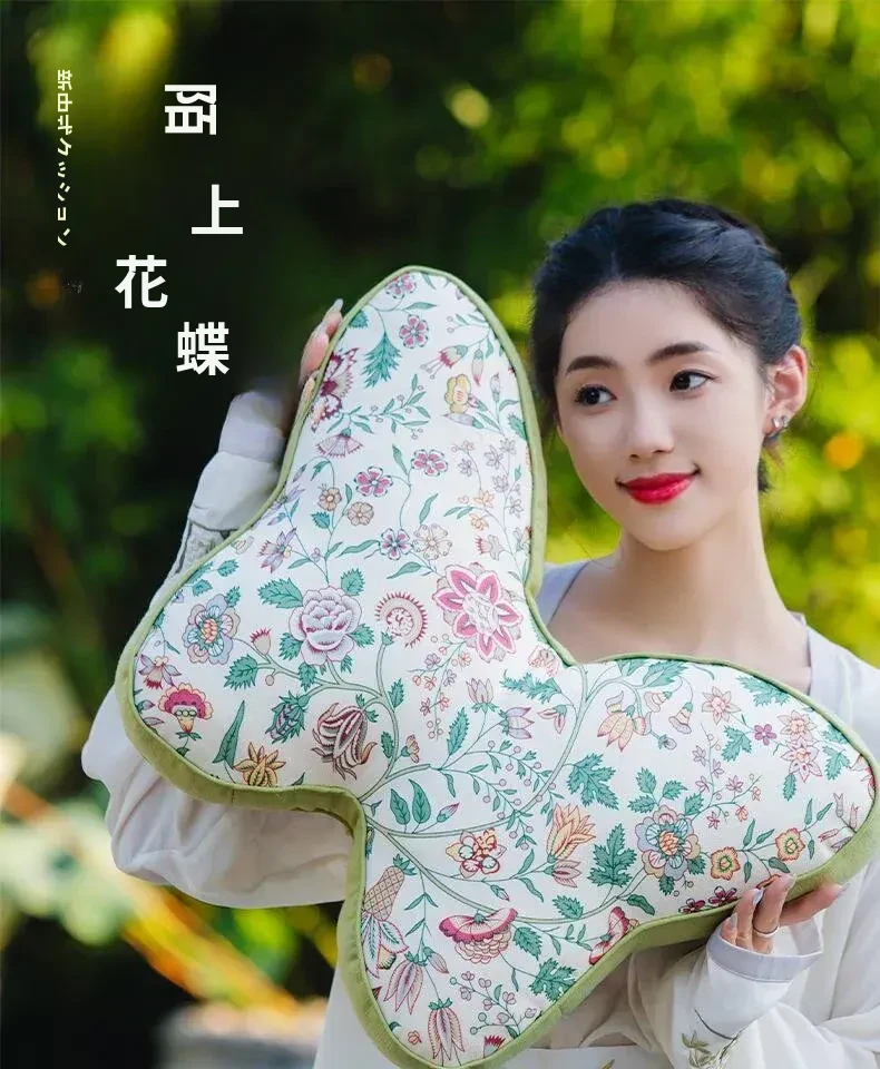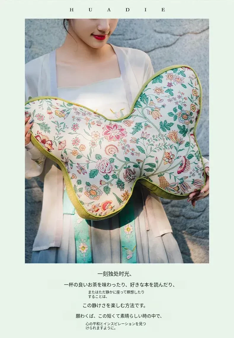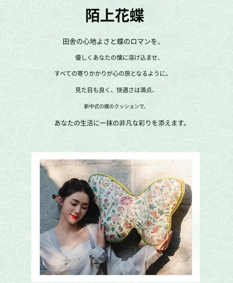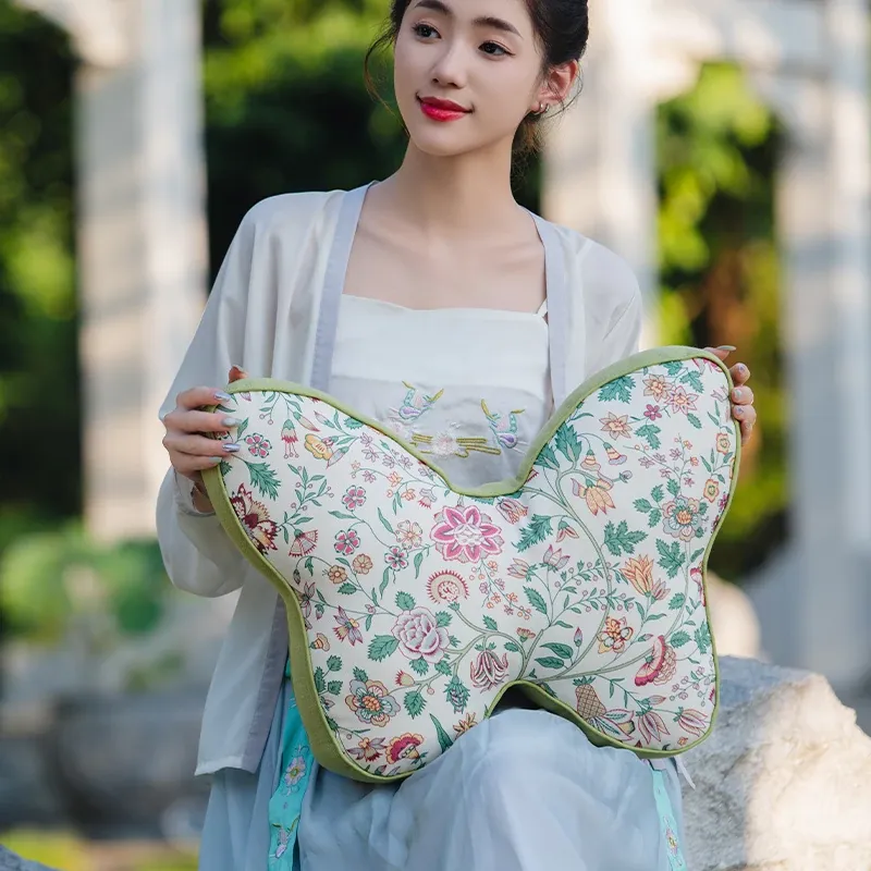 新中式刺繍入りクッションカバー - 蝶モチーフでおしゃれな布製クッション、モデルルームにぴったりなソフト装飾、ベッドサイドを華やかに彩る腰枕カバー!