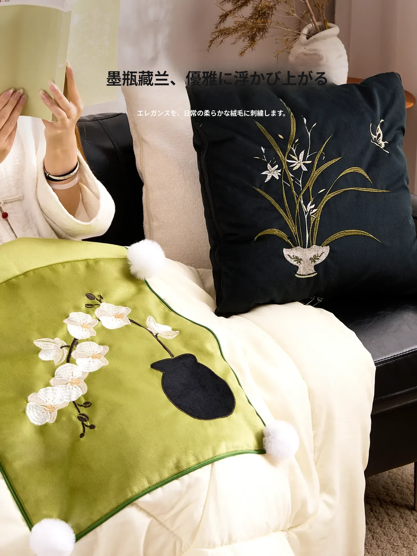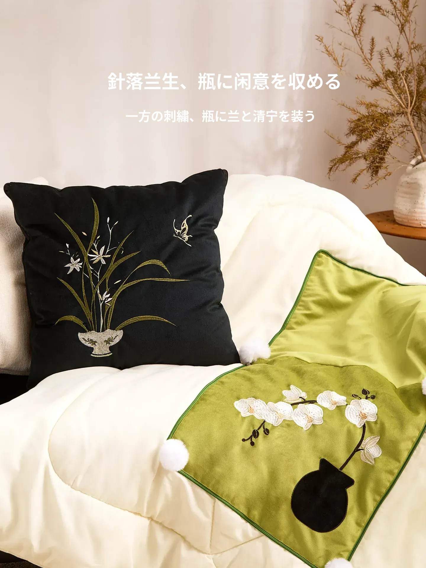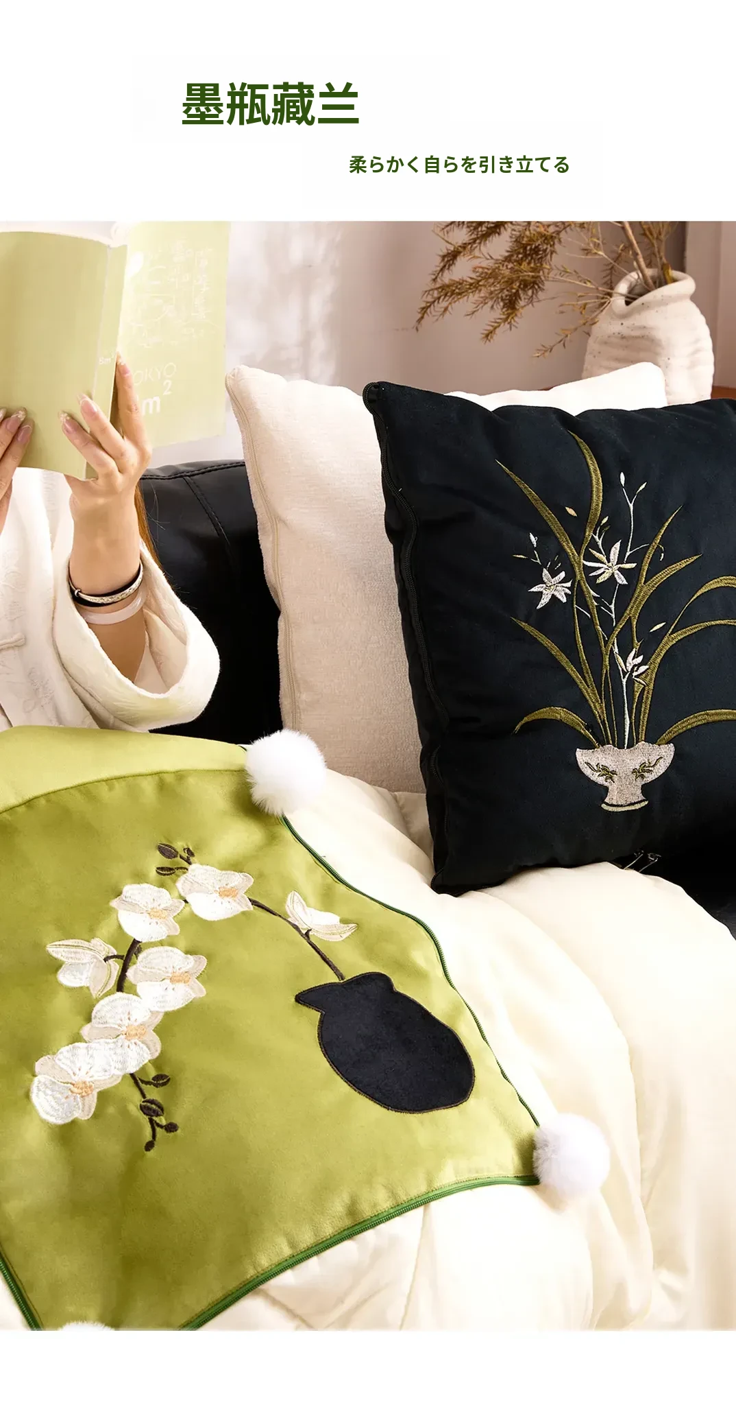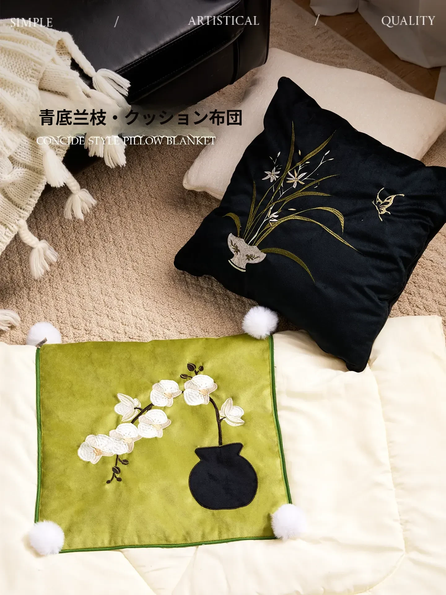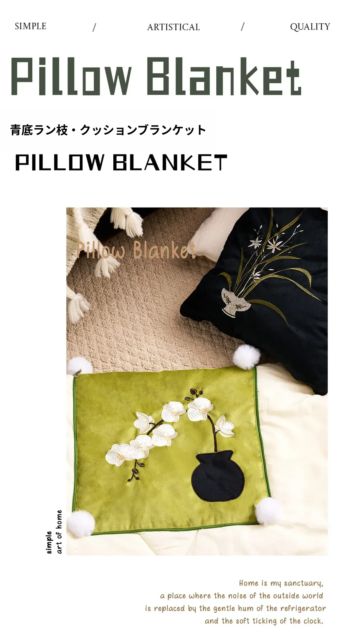 新中式刺繍デザインの2way抱き枕・クッション・毛布セット!オフィスやソファにぴったりの中国風インテリア。お昼寝やエアコン対策にも最適です。リラックスした空間を演出しましょう!