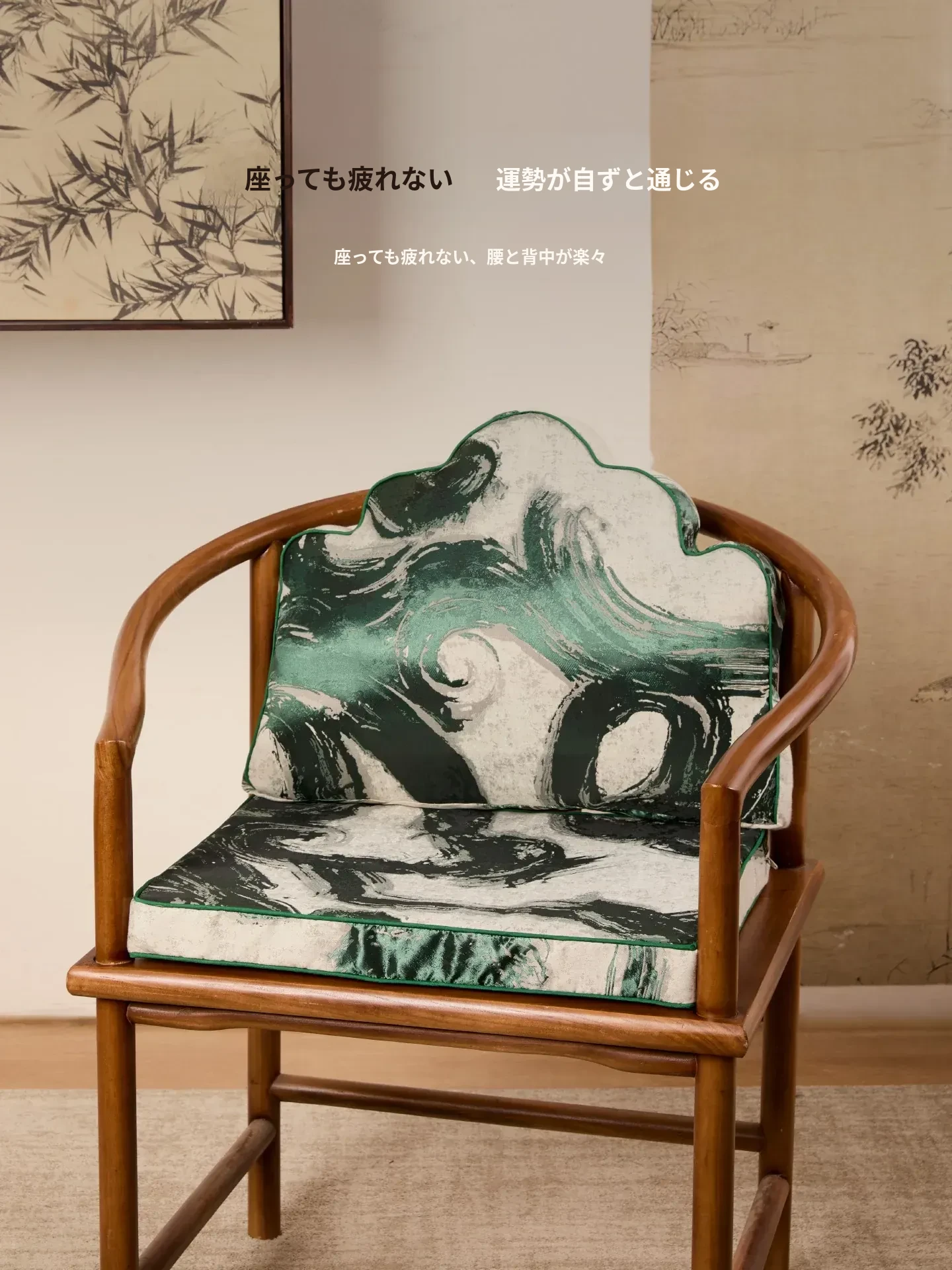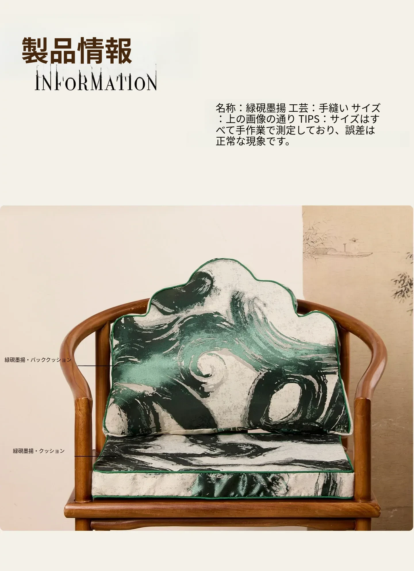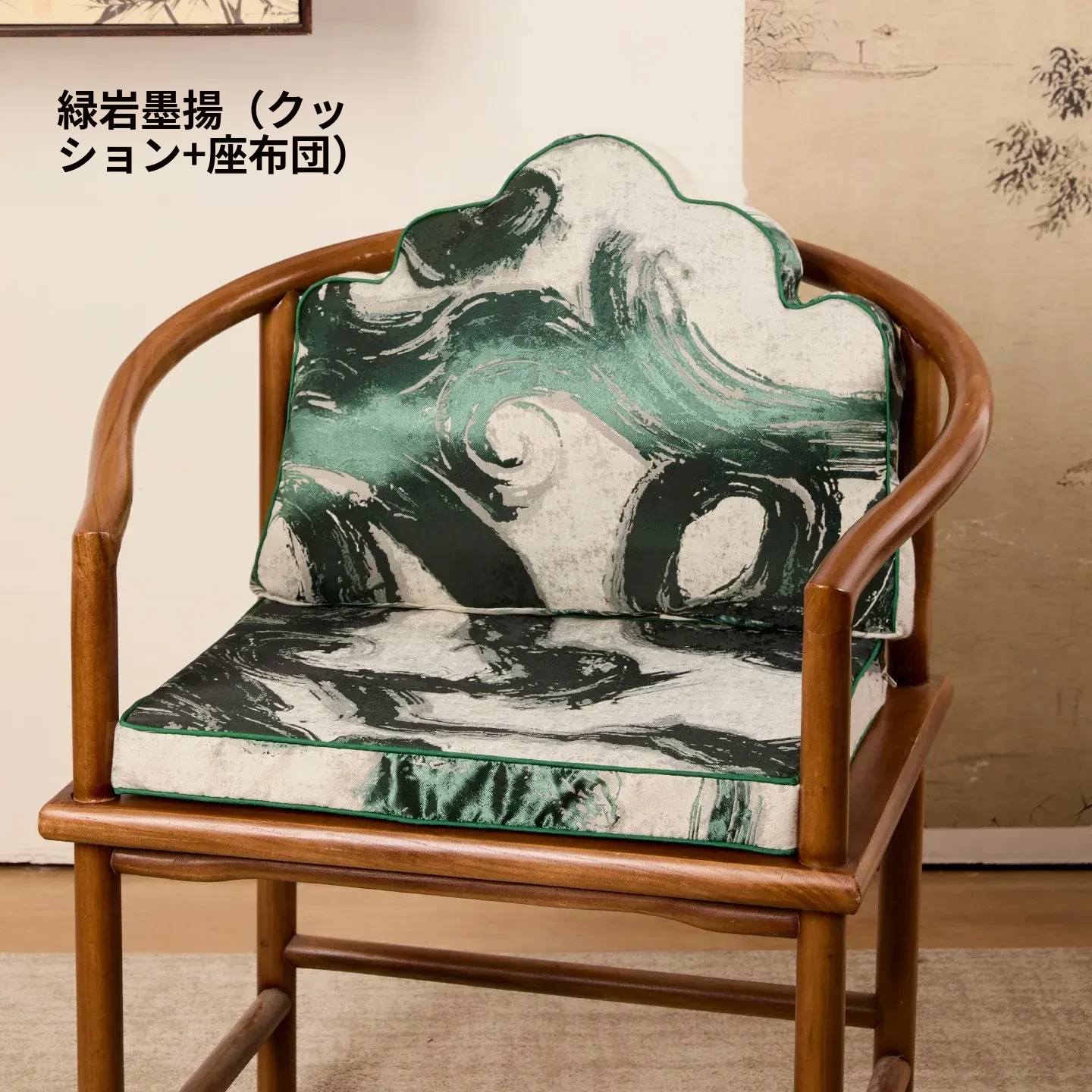 緑硯墨揚のクッション+緑硯墨揚の座布団(40*53cm+40*50cm)