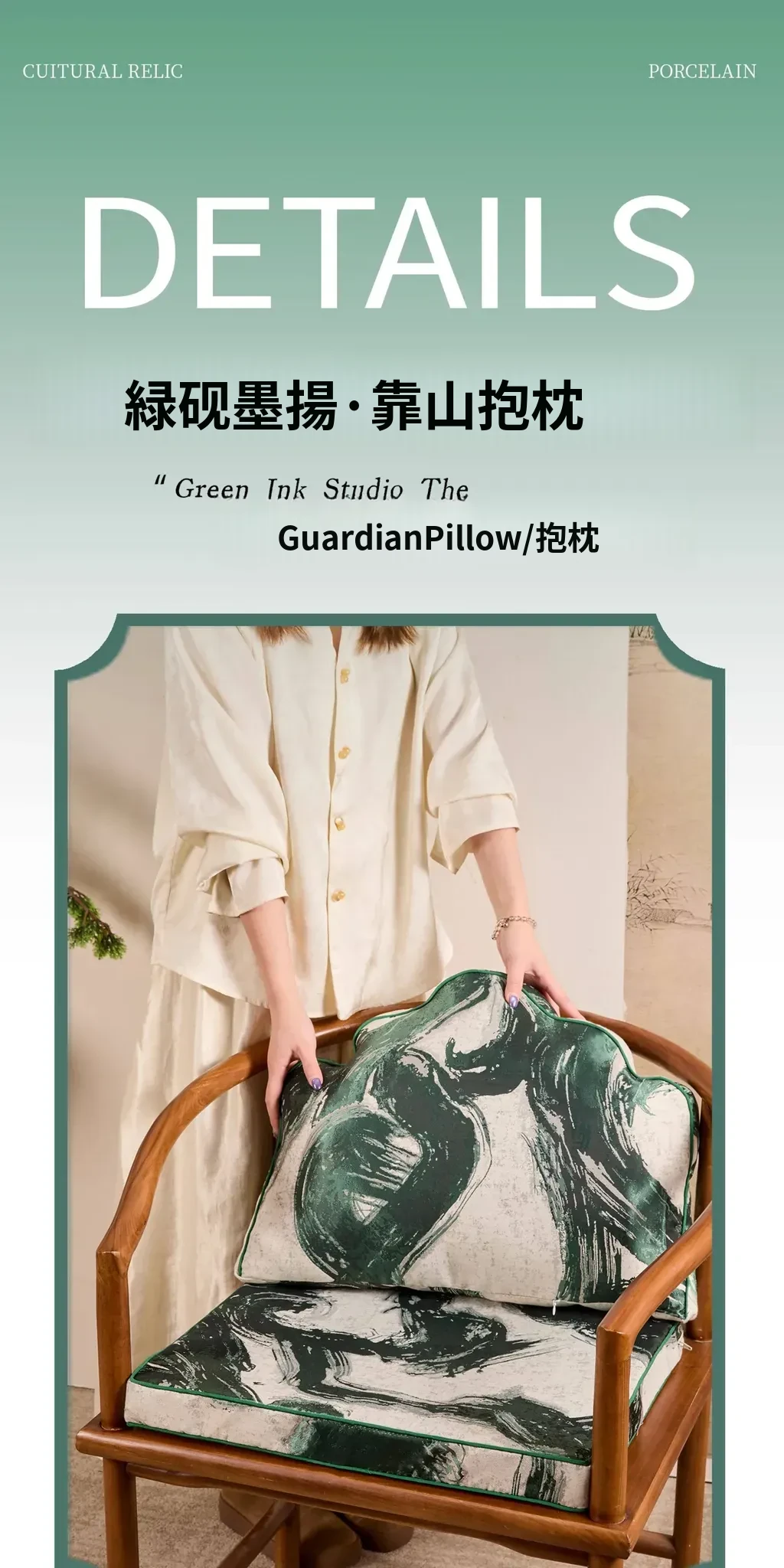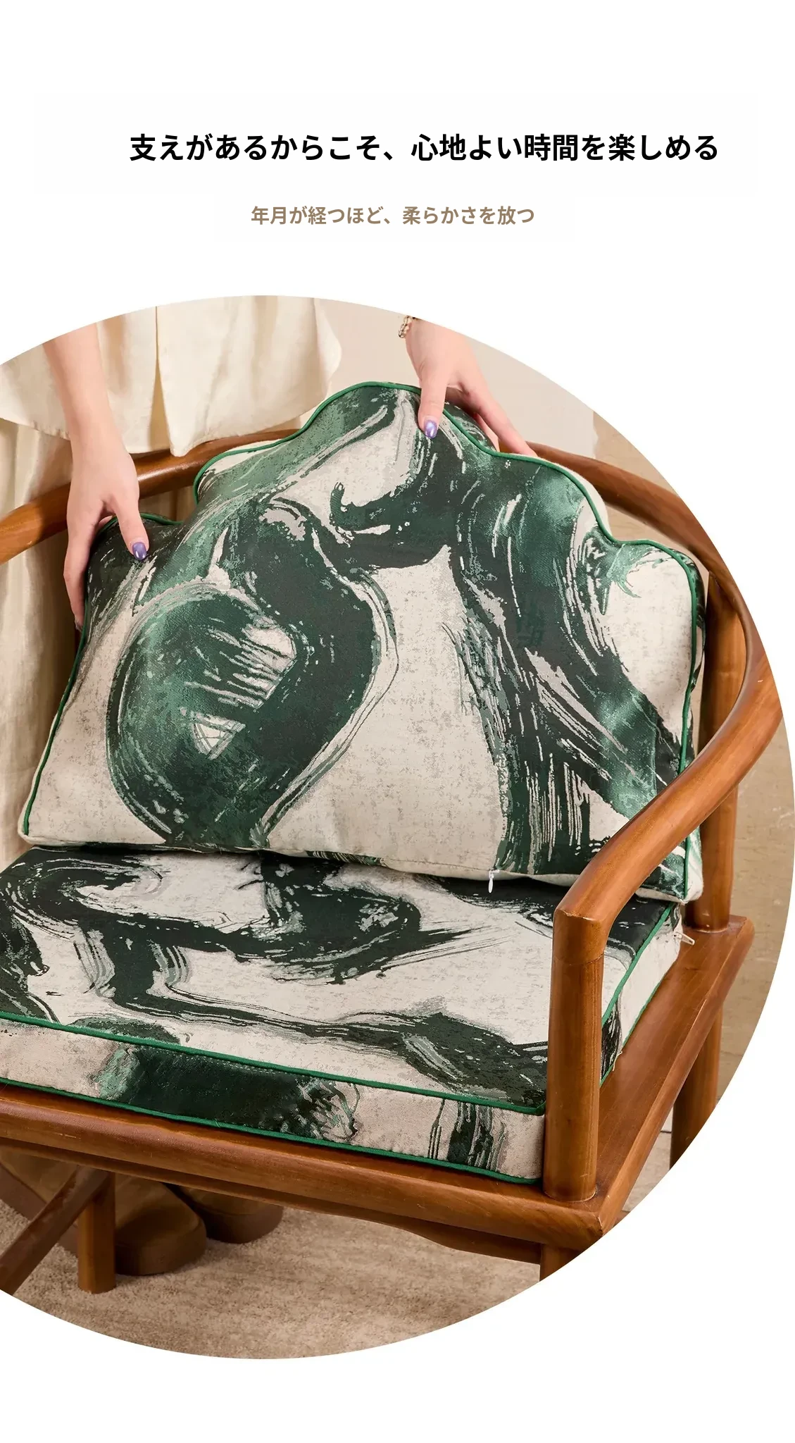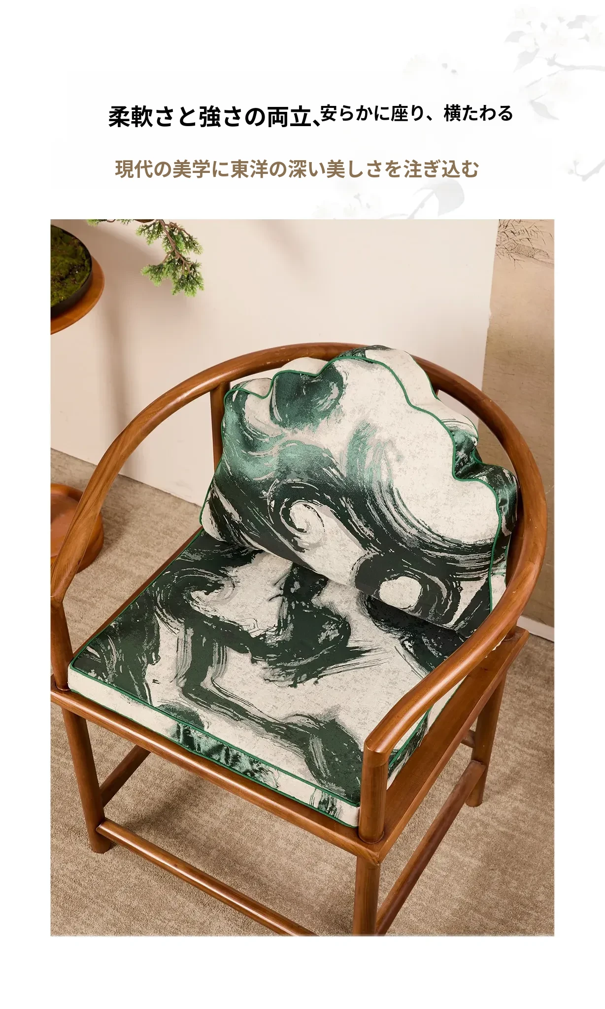緑硯墨揚のクッション+緑硯墨揚の座布団(40*53cm+40*50cm)