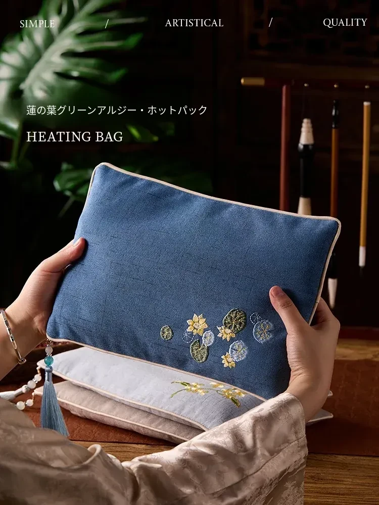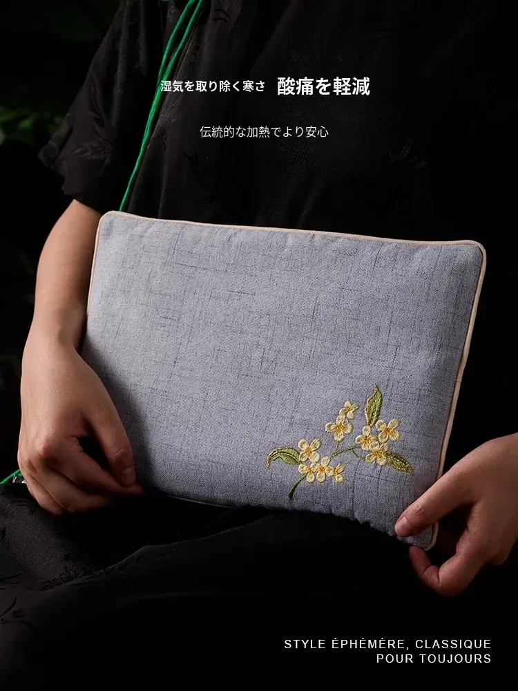 新中式赤小豆温熱療法袋 家庭用艾灸&温かい腰腹部、肩首をリラックス 美容院でも使用できる刺繍入り温熱パック