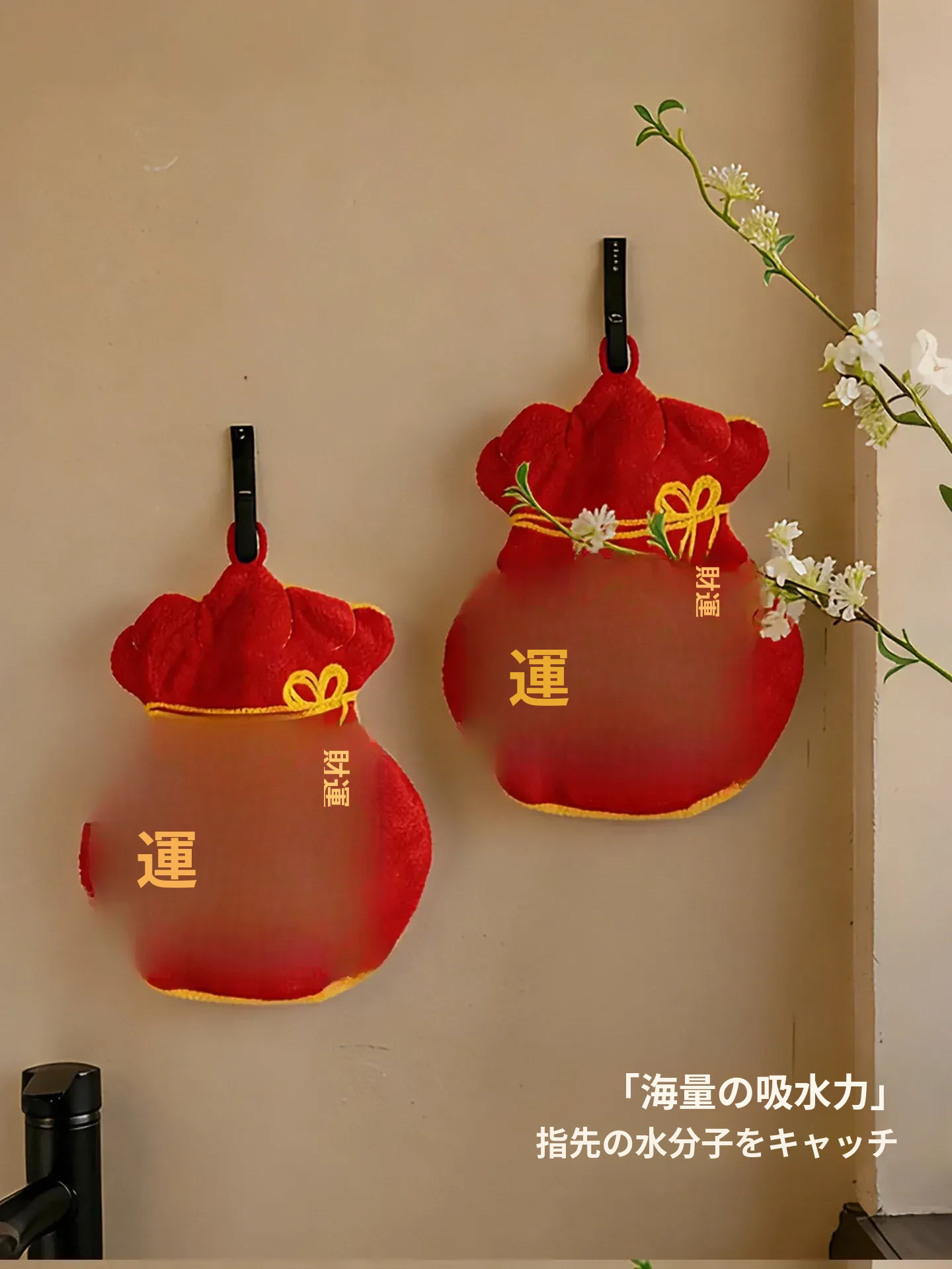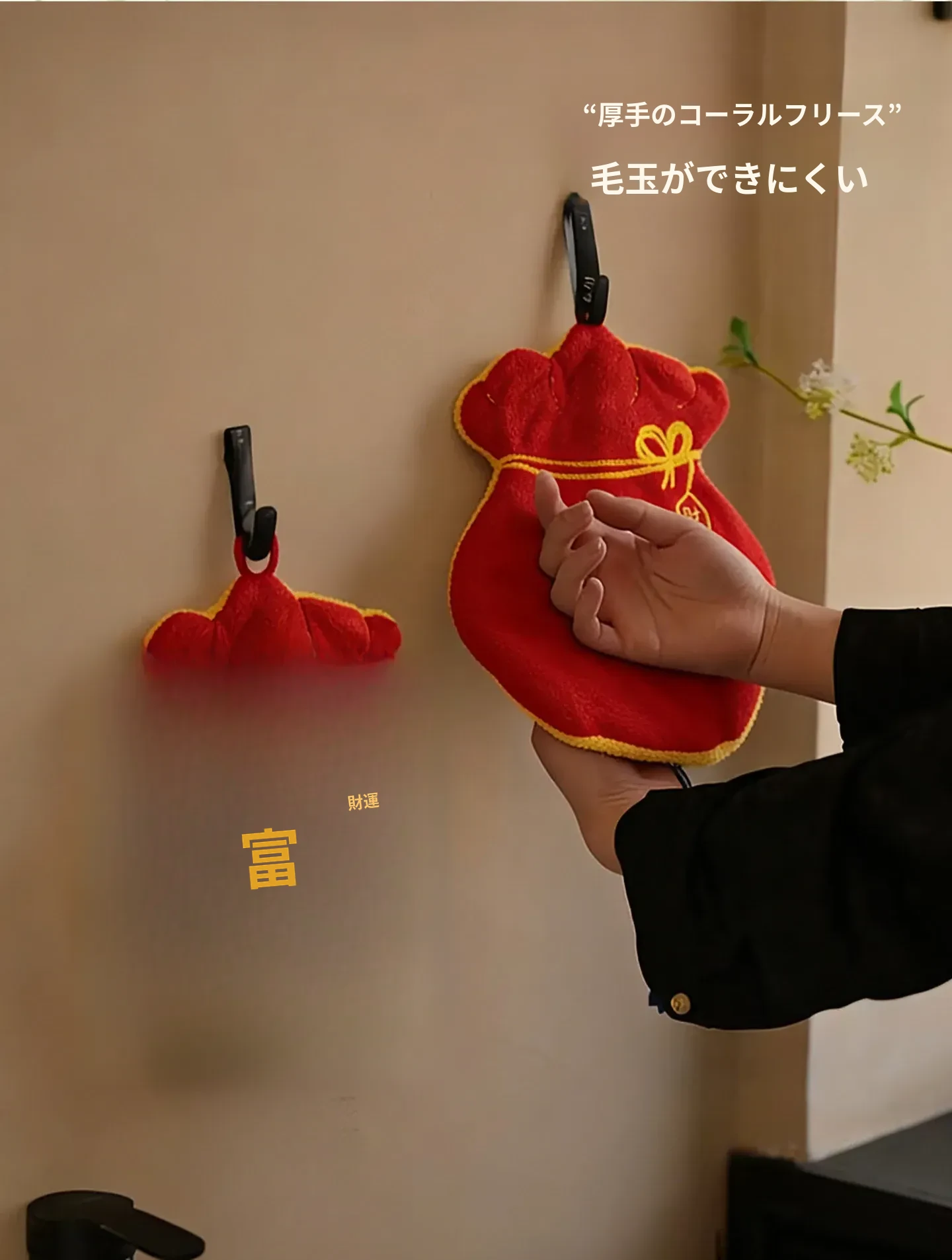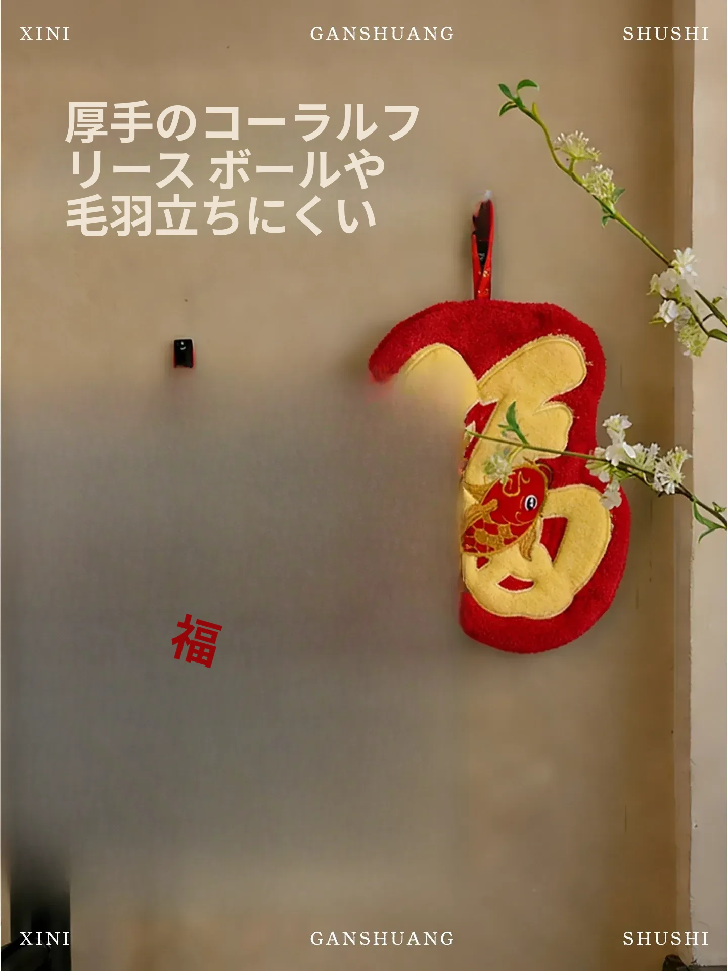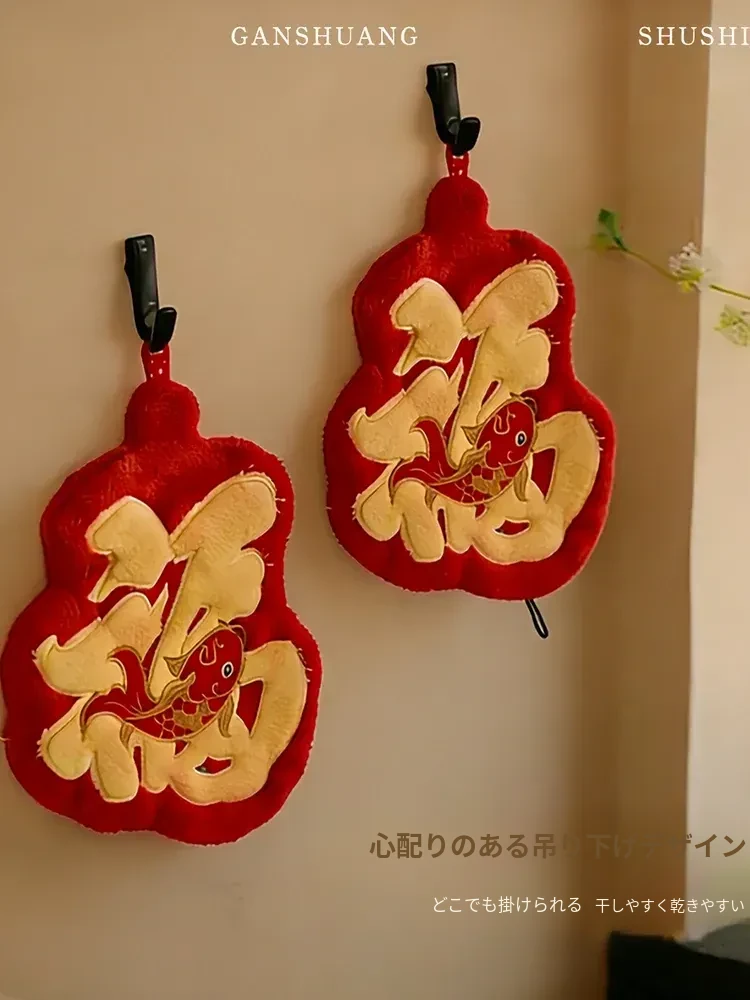 新年の福字付き吸水性抜群の赤いハンドタオル | おしゃれなデザインでキッチンやトイレにぴったり | お祝い気分を盛り上げる必須アイテム!
