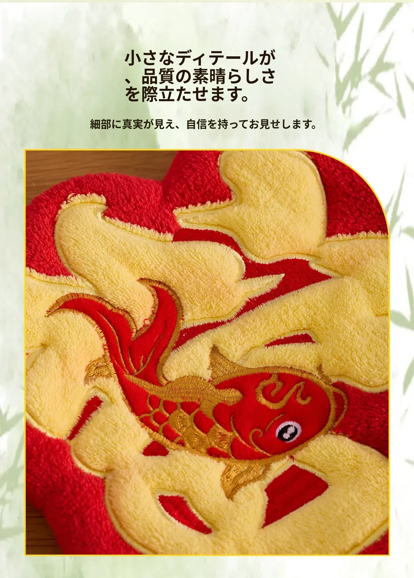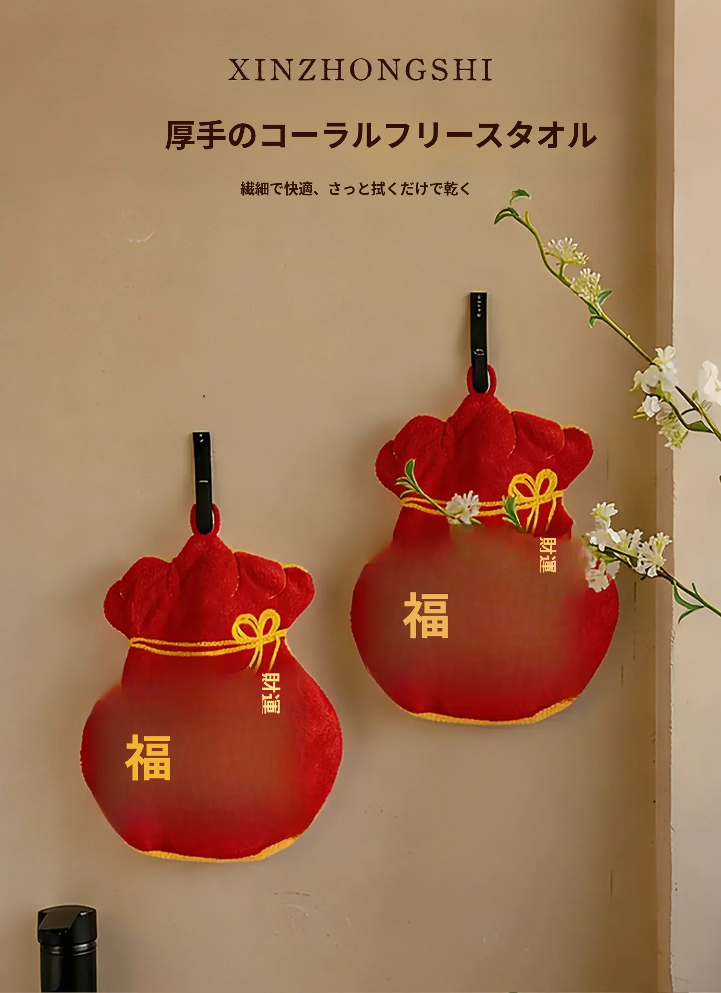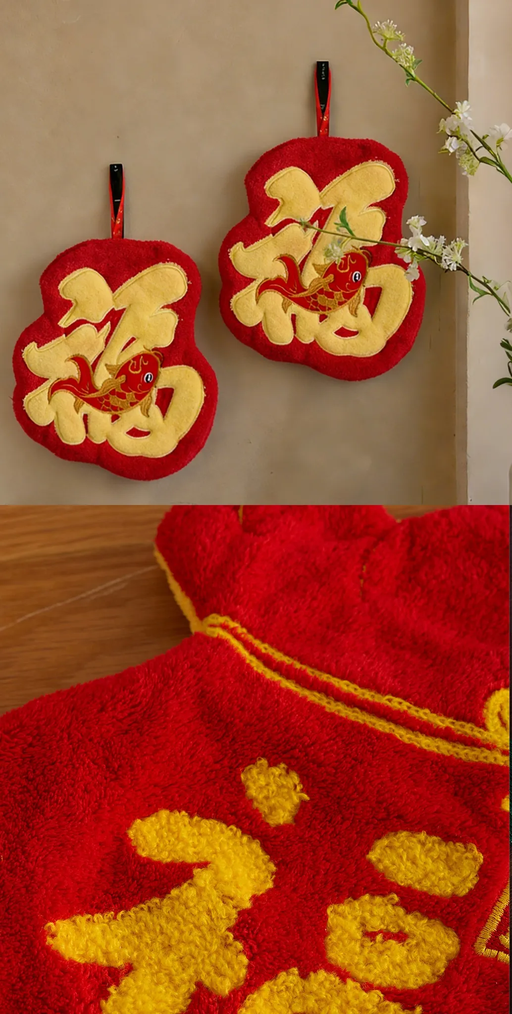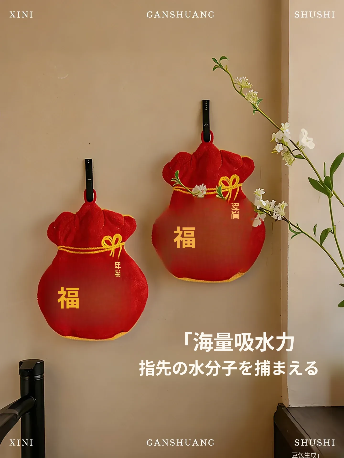 新年の福字付き吸水性抜群の赤いハンドタオル | おしゃれなデザインでキッチンやトイレにぴったり | お祝い気分を盛り上げる必須アイテム!