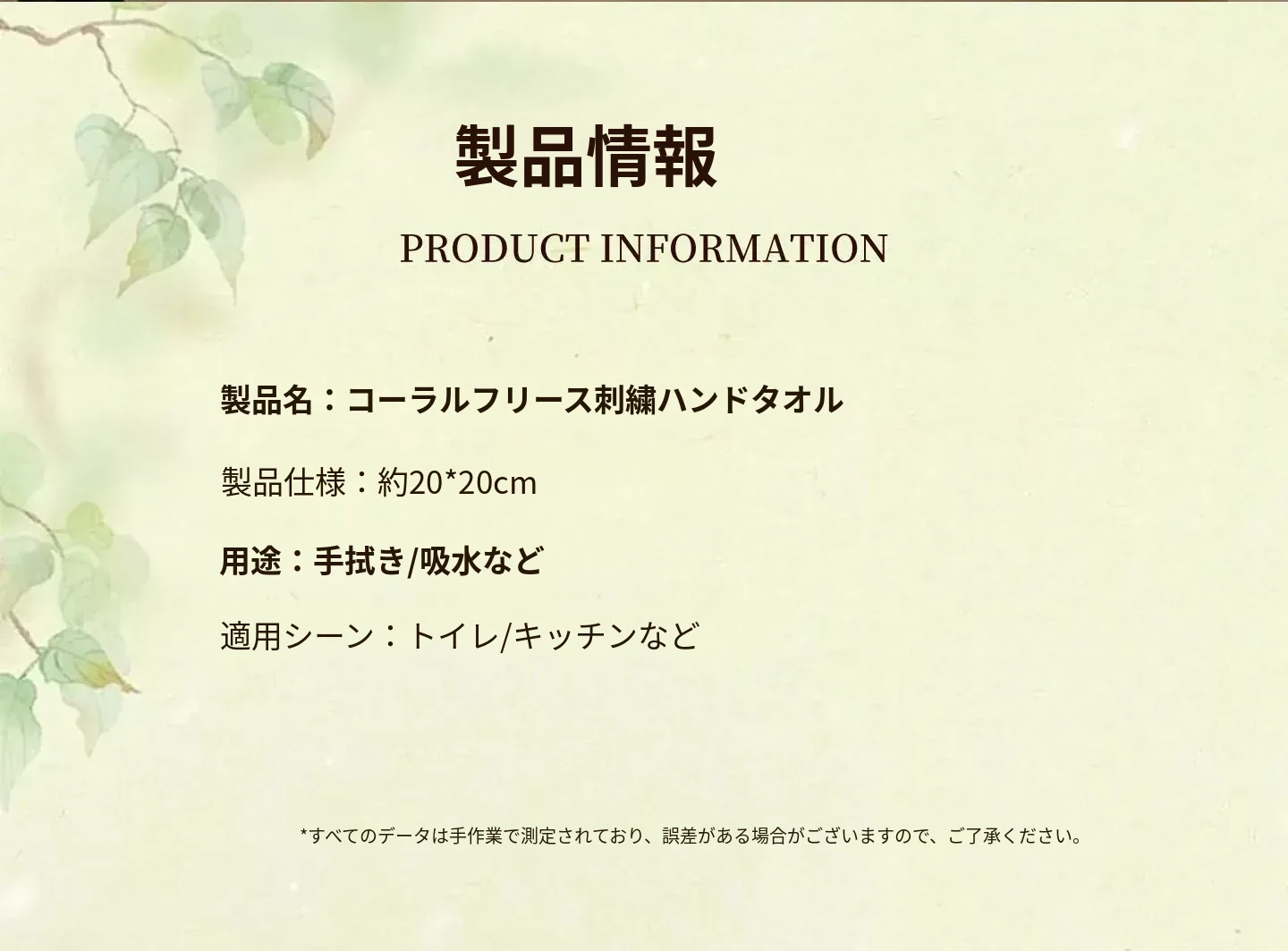 福来の珊瑚フリース刺繍ハンドタオル20*20cm