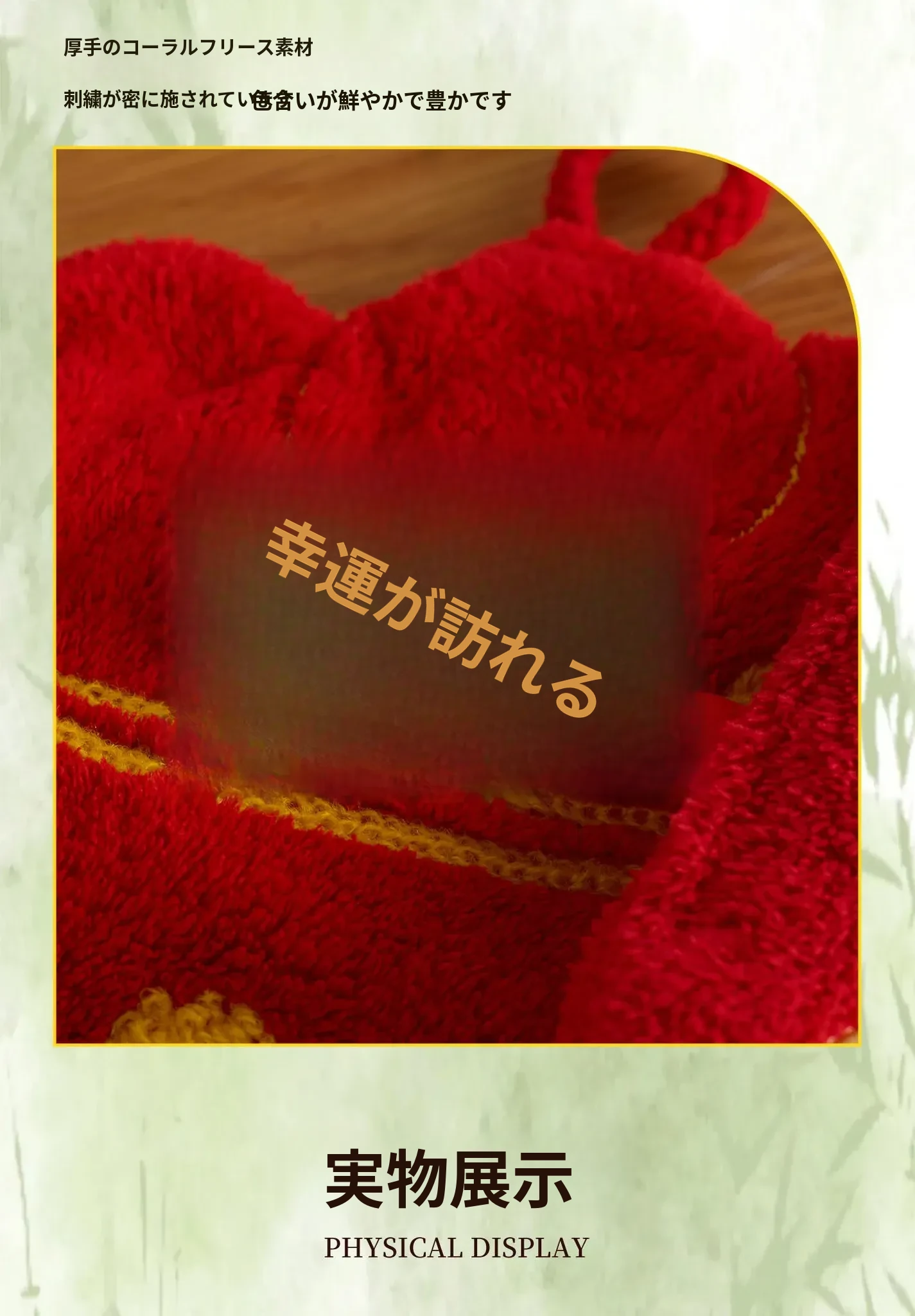 招財福袋珊瑚フリース刺繍ハンドタオル20*20cm