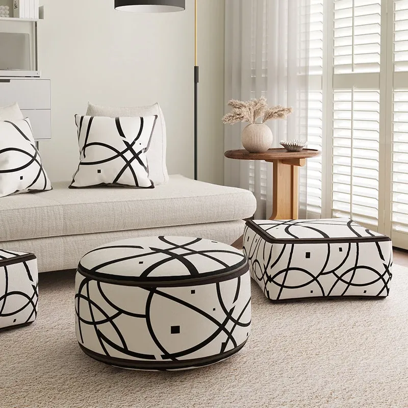 アメリカンスタイルの多機能ラグジュアリークッション!リビングや窓辺でのリラックスタイムに最適なサロン用スツール。おしゃれで快適、読書やくつろぎにぴったりのフロアソファ用フットレスト。