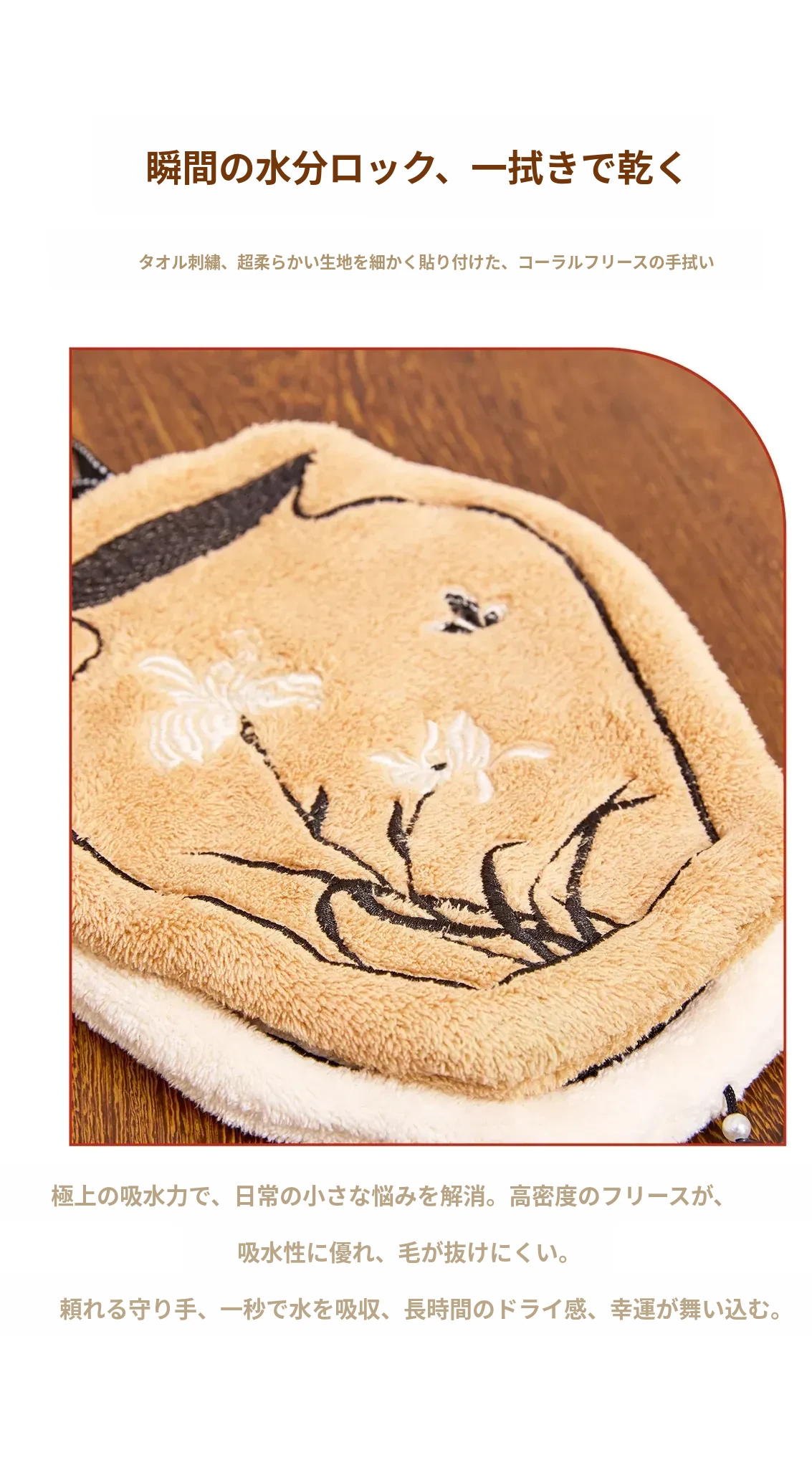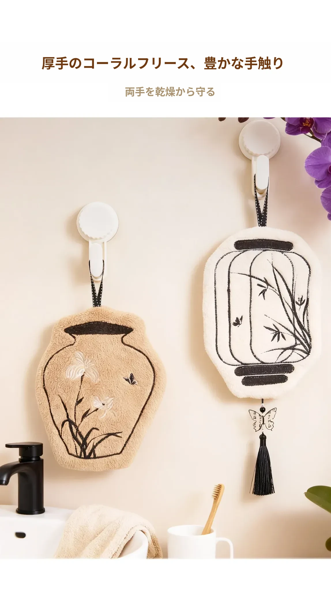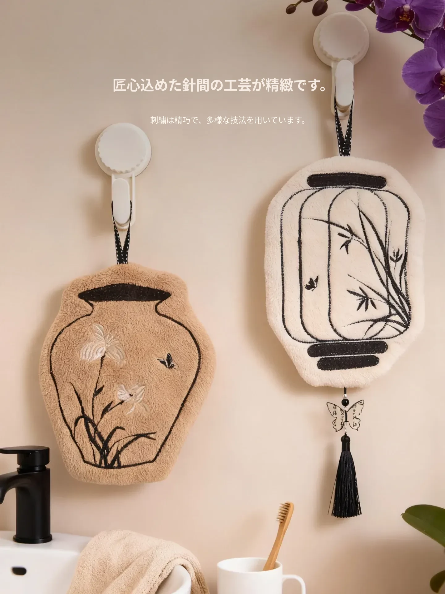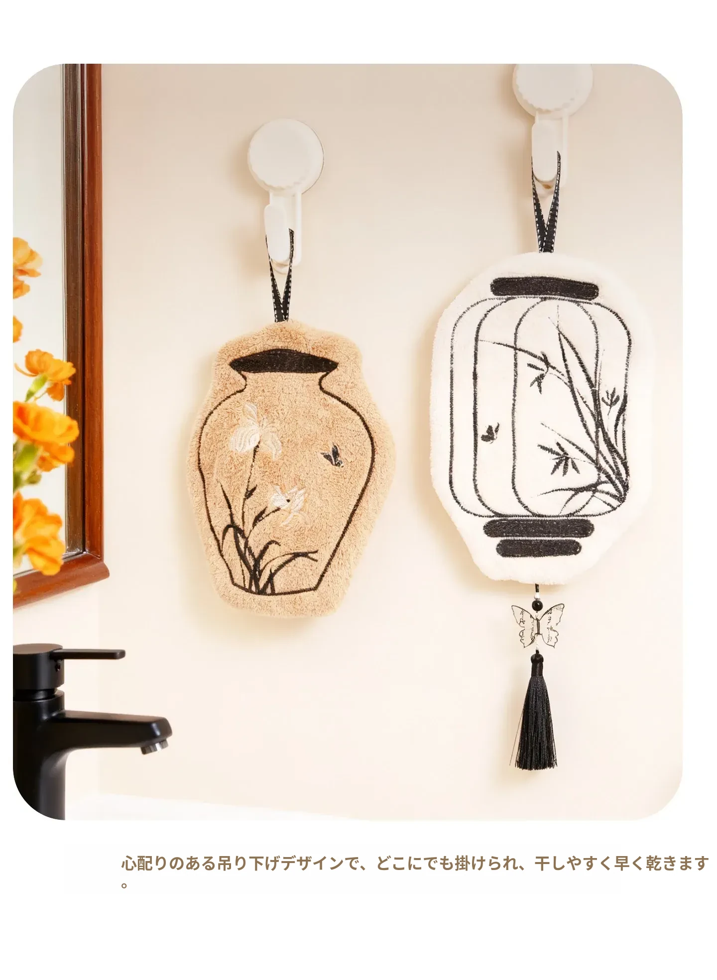高品質・デザイン性抜群の吊り下げ式タオル!キッチンや洗面所にピッタリな吸水性・厚手・防臭・速乾のハンドタオル。おしゃれな見た目で、使うたびに気分もアップ!