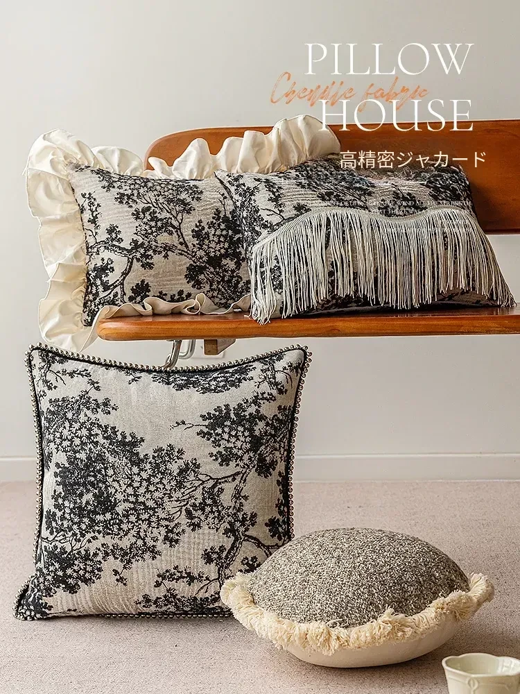 アメリカンラグジュアリー風リビングソファクッション|ヴィンテージ感漂う45x45cm刺繍抱き枕カバー|腰当てに最適!おしゃれで快適な空間を演出します。