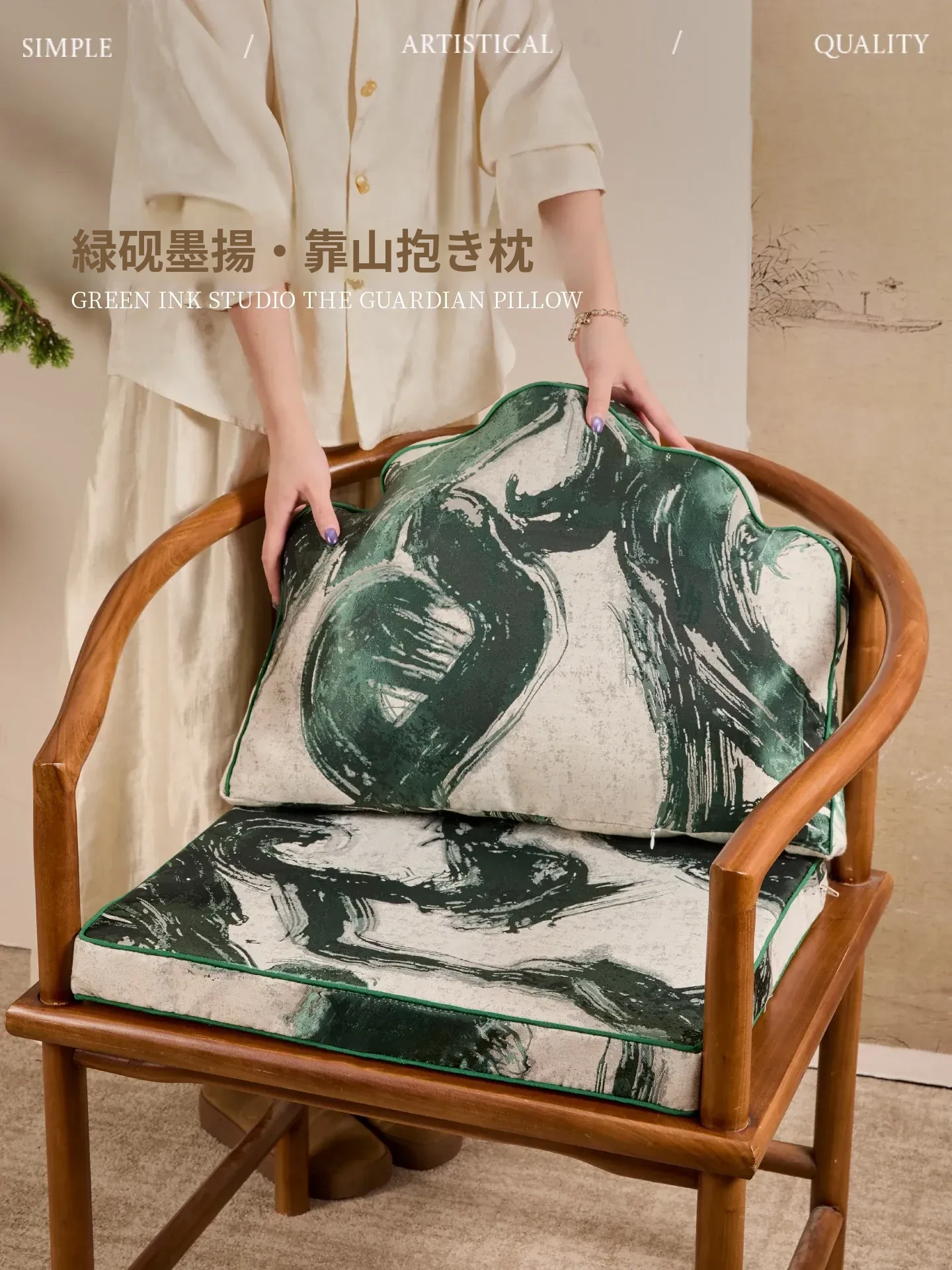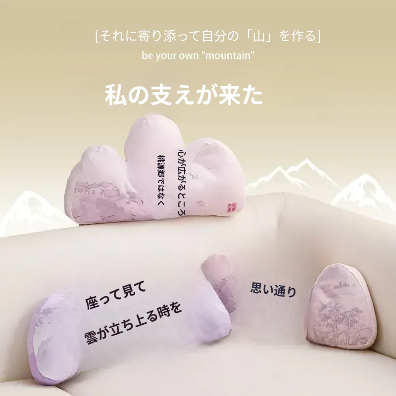 新中式山形クッション - ソファとベッドの完璧なサポート!腰をしっかり支えるデザインで、リラックスした時間を提供します。ロハン椅子や作業スペースにも最適なスタイルと快適さを兼ね備えています。