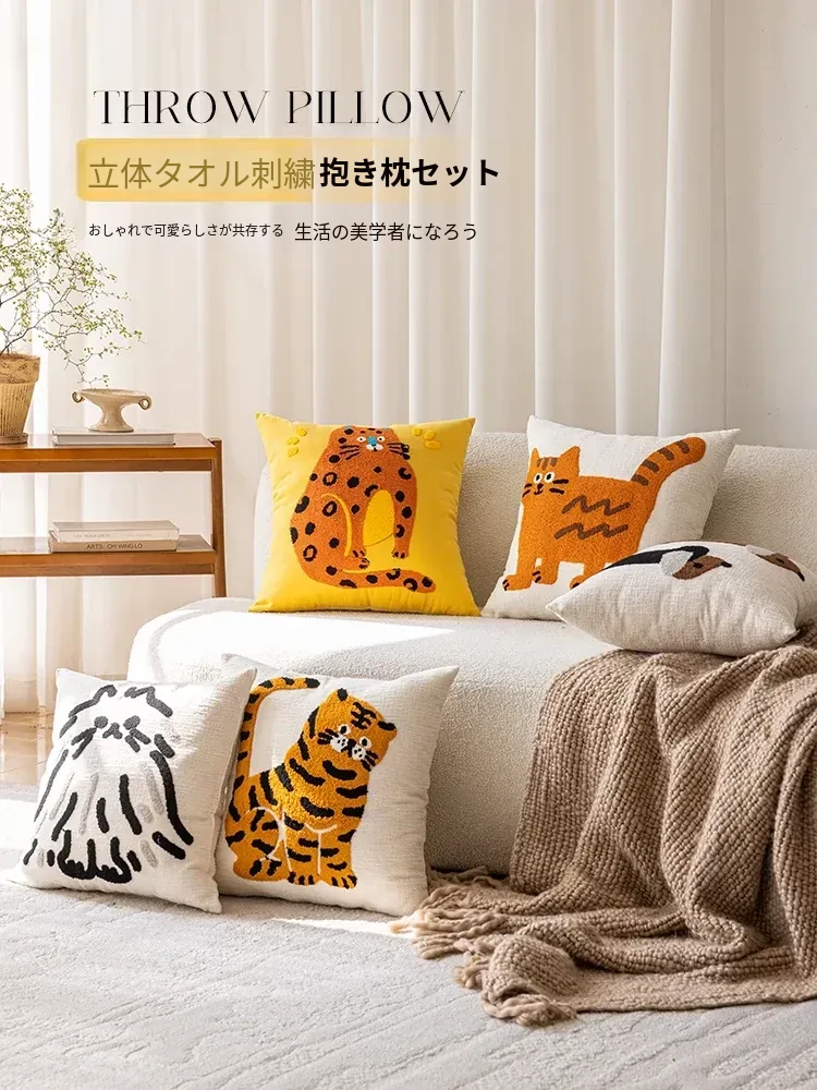 アメリカンカートゥーン刺繍高級クッションカバー|レトロスタイルのソファ用クッション|リビングやベッドサイドにぴったりな装飾用クッション!お洒落な空間を演出し、心地よいひとときをお楽しみください。
