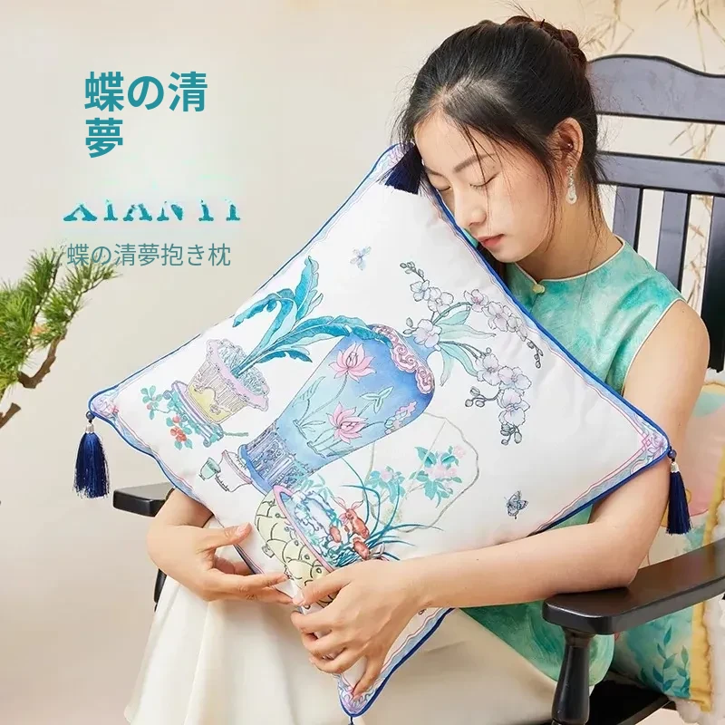 新中式蝶舞夢のダブルサイドクッション - 高級感溢れるリビングや寝室にぴったり!ソファやベッドサイドで心地よいひとときを演出する国風デザインのクッション。