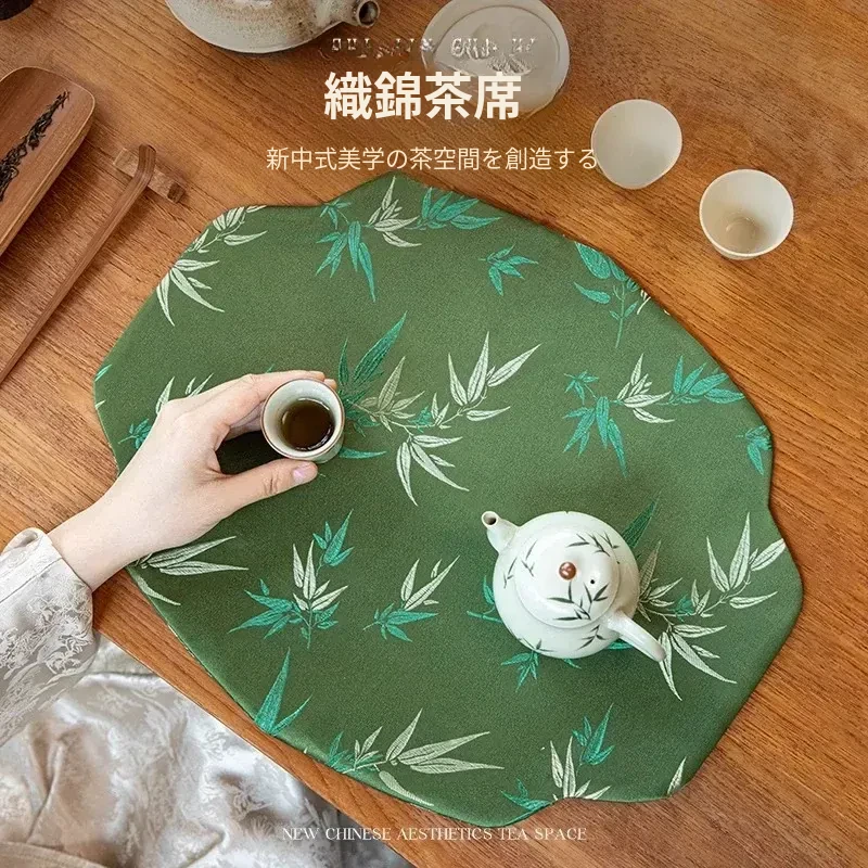 新中式デザインの防水茶席マット - 織り込み模様の禅スタイル、1人用のティーカップマットとしても最適!家庭用にぴったりな布製茶卓マットで、優雅なティータイムを演出します。