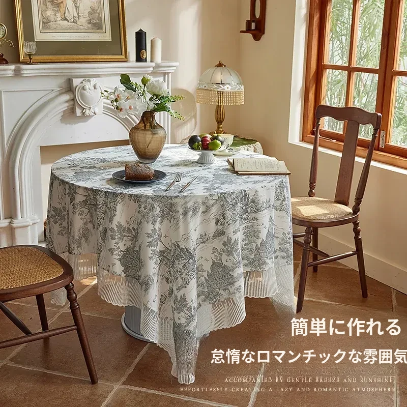フランス風レトロ丸型テーブルクロス|エレガントなホワイト|手作りのファブリックで高級感溢れるダイニングテーブルやティーテーブルに最適!