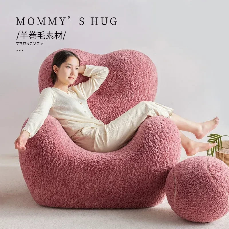クリエイティブなインスタ映え!ママの抱擁デザインのデザイナーラザリソファ。クリーミーな風合いで、リビングのリラックス空間を演出する一人掛け椅子。心地よいくつろぎをあなたの生活に!